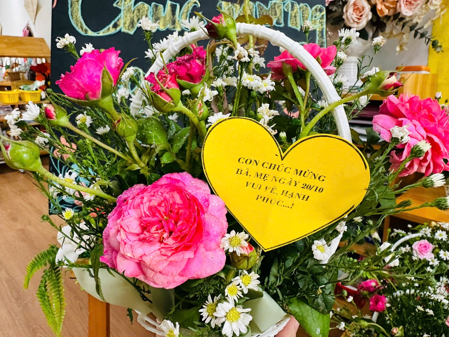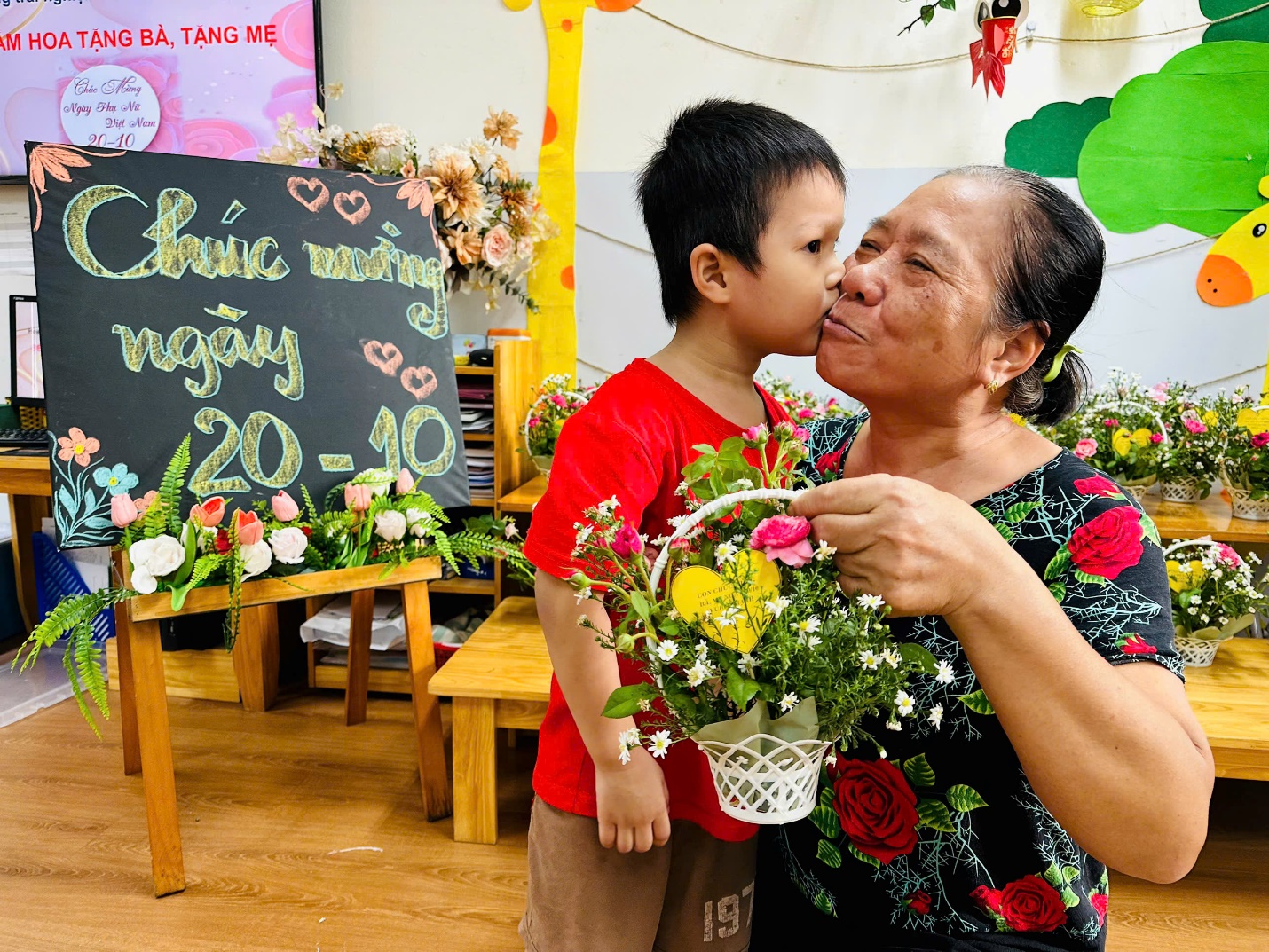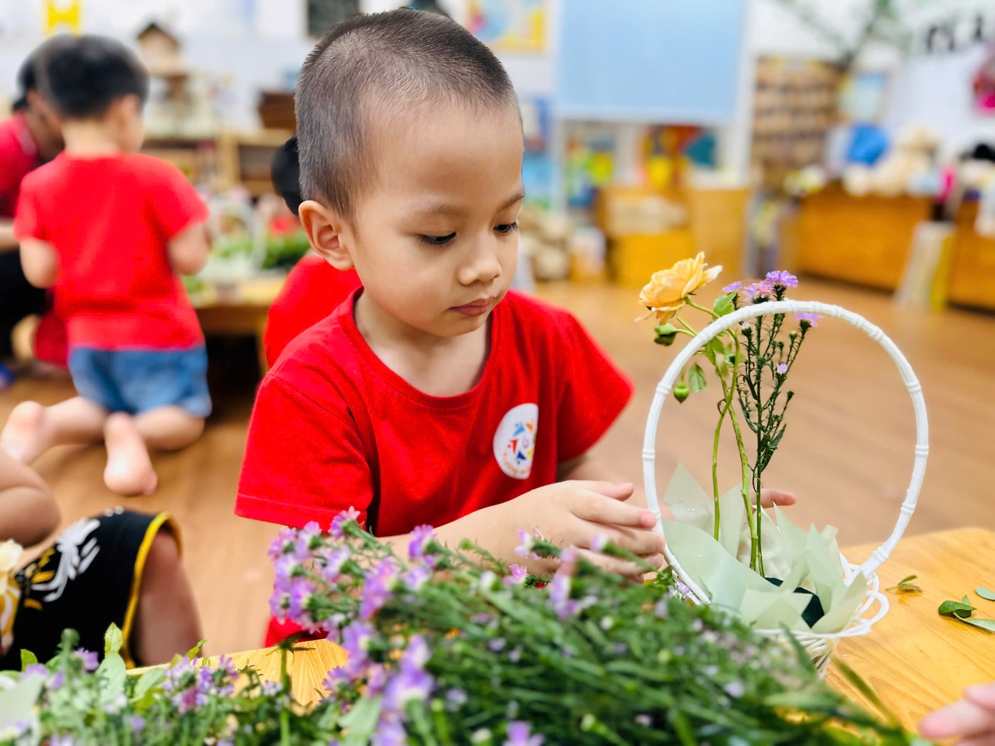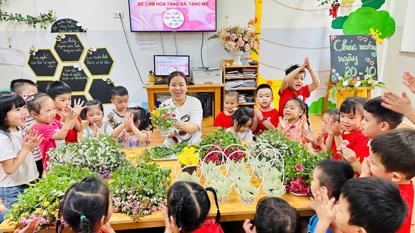 Đôi bàn tay tuy nhỏ bé, vụng về nhưng các con đã rất cố gắng để hoàn thành lẵng hoa của mình. Và nụ cười rạng rỡ của bà, của mẹ khi nhận được tấm lòng của các con chính là niềm hạnh phúc của các con, là niềm vui của các cô.