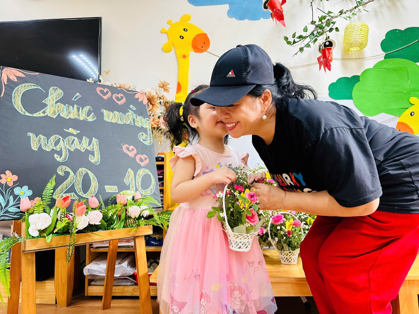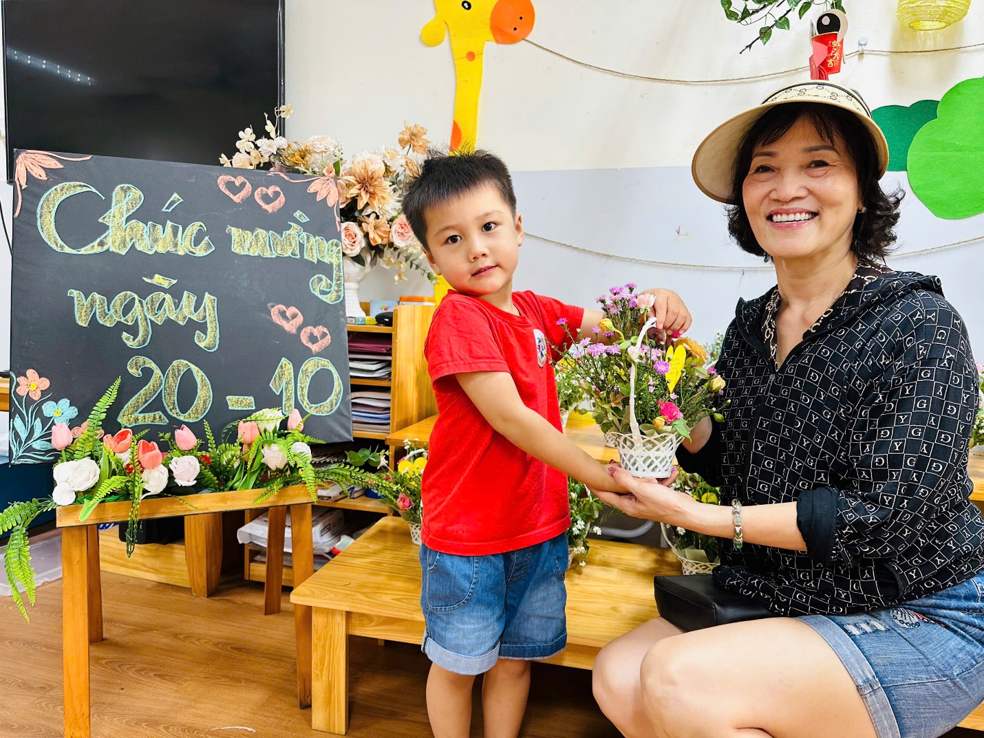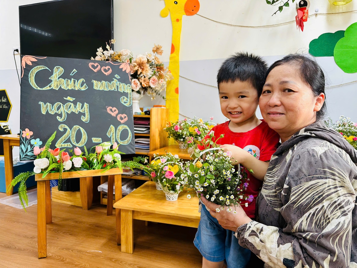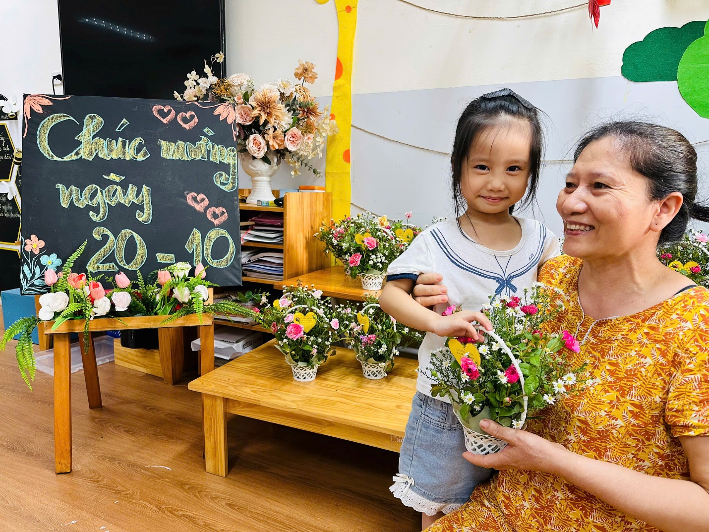 Ngày Phụ nữ Việt Nam 20-10 đang đến rất gần. Với mục đích giúp các con tìm hiểu về ý nghĩa của ngày lễ 20-10 và mong các con hiểu được tình yêu thương bao la của bà, của mẹ dành cho các con. Các cô giáo lớp MGN B1 đã tổ chức cho các bạn nhỏ một trải nghiệm thú vị đó là cắm hoa tặng bà, tặng mẹ - đây là món quà gói trọn tình yêu và lòng biết ơn đến bà, đến mẹ - những người phụ nữ tuyệt vời nhất trong cuộc đời con.