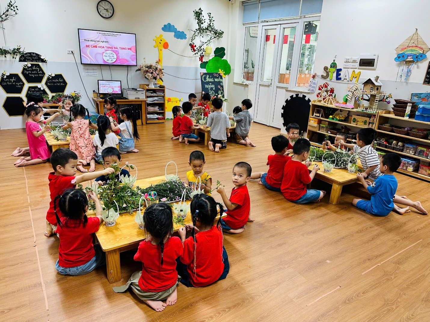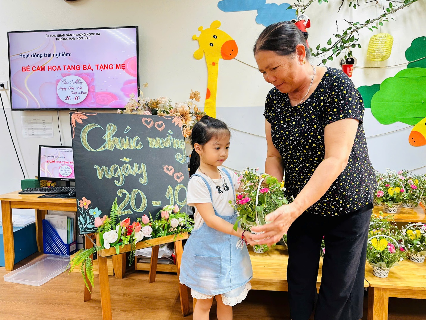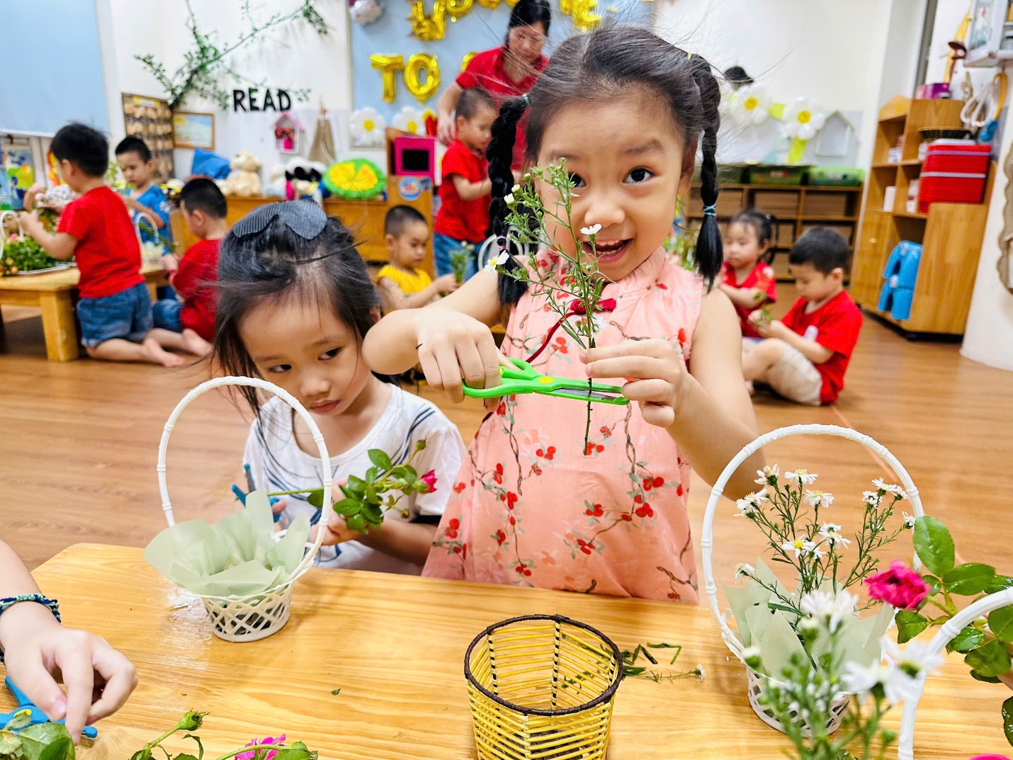 Hoạt động trải nghiệm lớp MGN B1: “Bé cắm hoa tặng bà, tặng mẹ”