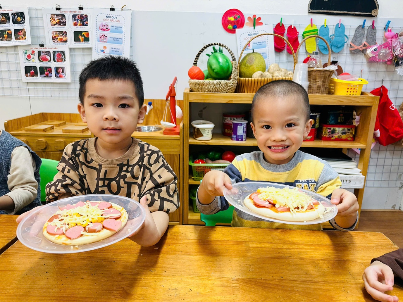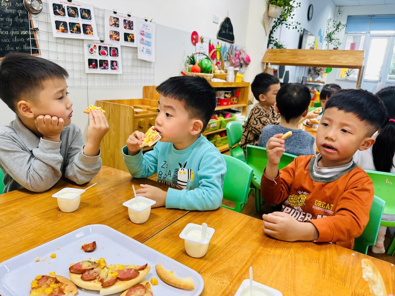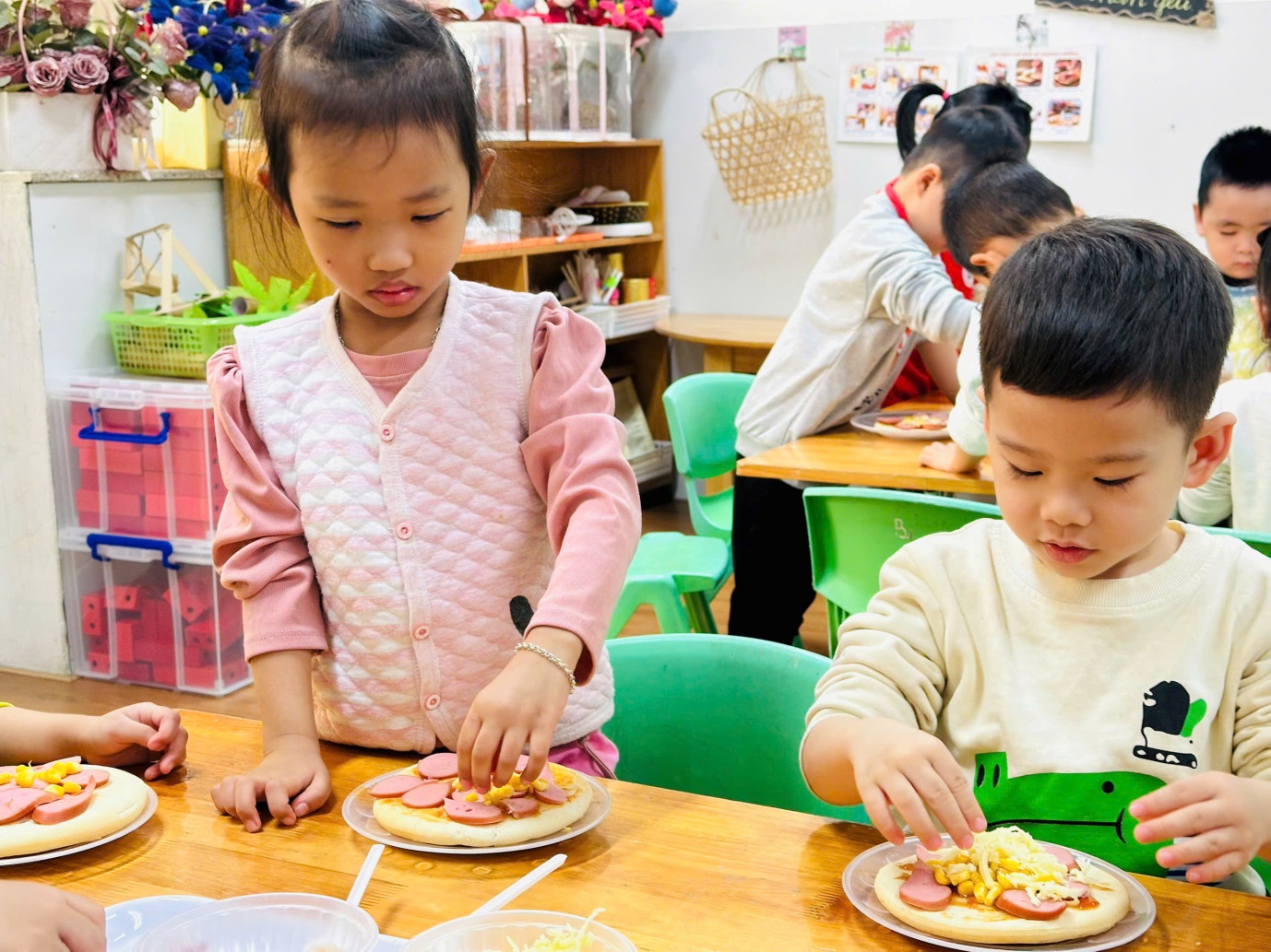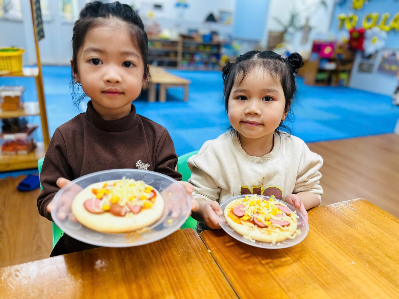 Các đầu bếp nhí cảm thấy vô cùng tự hào với thành quả của mình. Điều tuyệt vời nhất là các con được cùng nhau thưởng thức những chiếc bánh pizza do chính mình làm ra. Chắc hẳn đây sẽ là những trải nghiệm thú vị và ý nghĩa với các bạn nhỏ lớp MGN – B1.