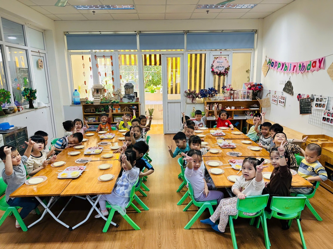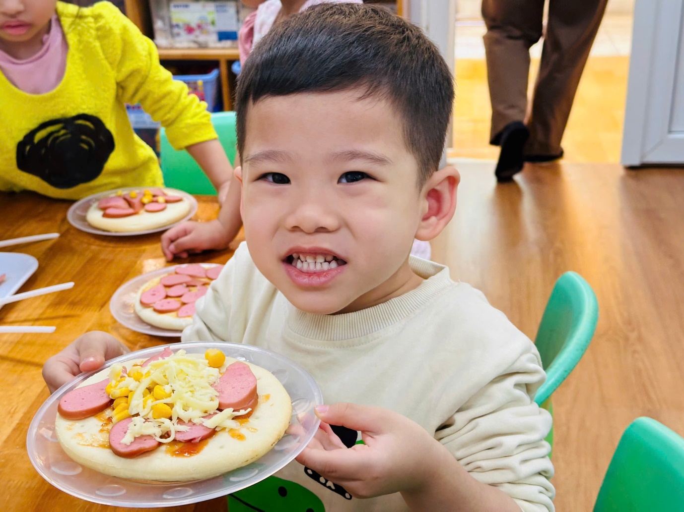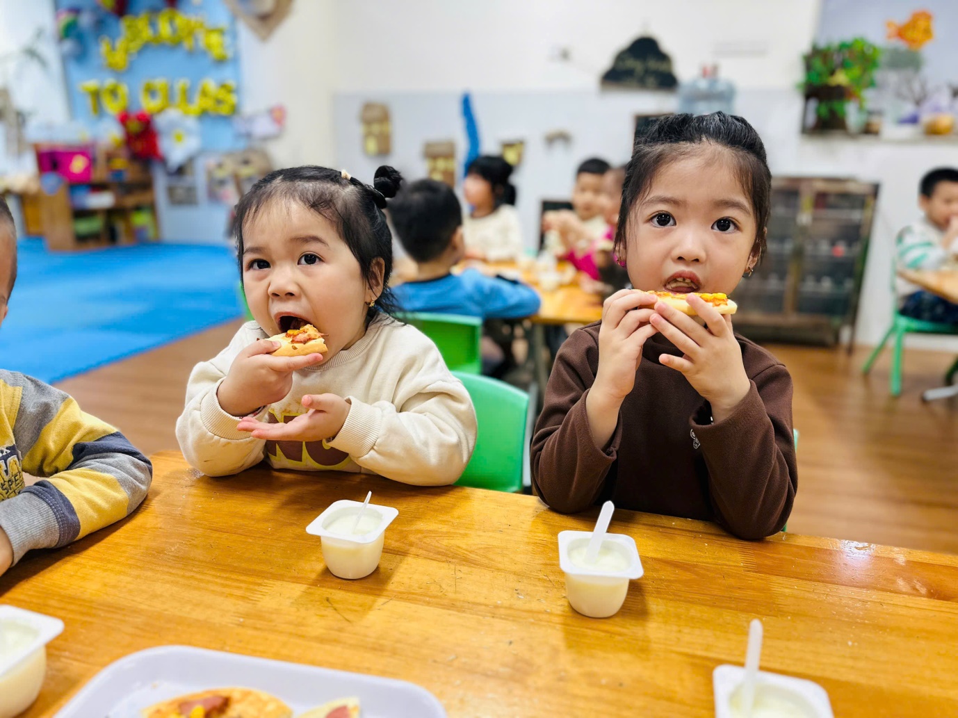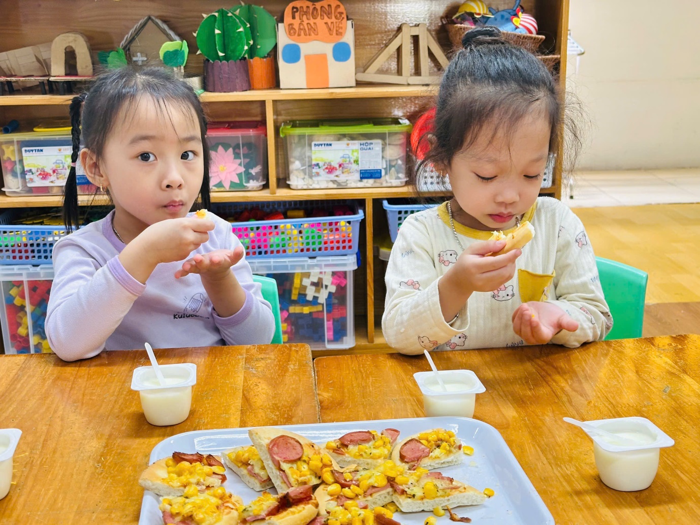Các đầu bếp nhí cảm thấy vô cùng tự hào với thành quả của mình. Điều tuyệt vời nhất là các con được cùng nhau thưởng thức những chiếc bánh pizza do chính mình làm ra. Chắc hẳn đây sẽ là những trải nghiệm thú vị và ý nghĩa với các bạn nhỏ lớp MGN – B1.