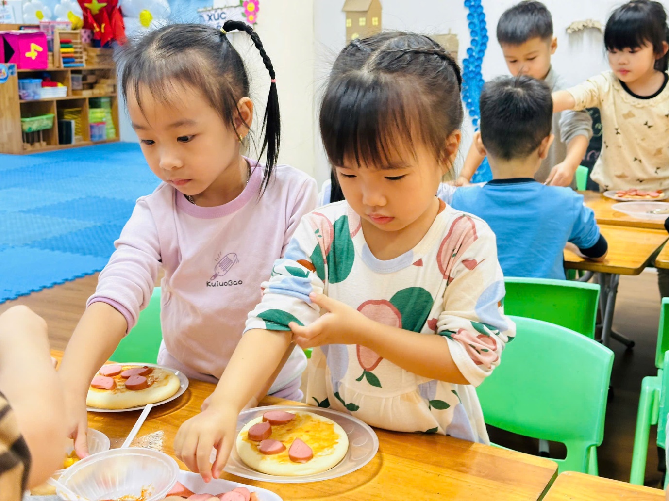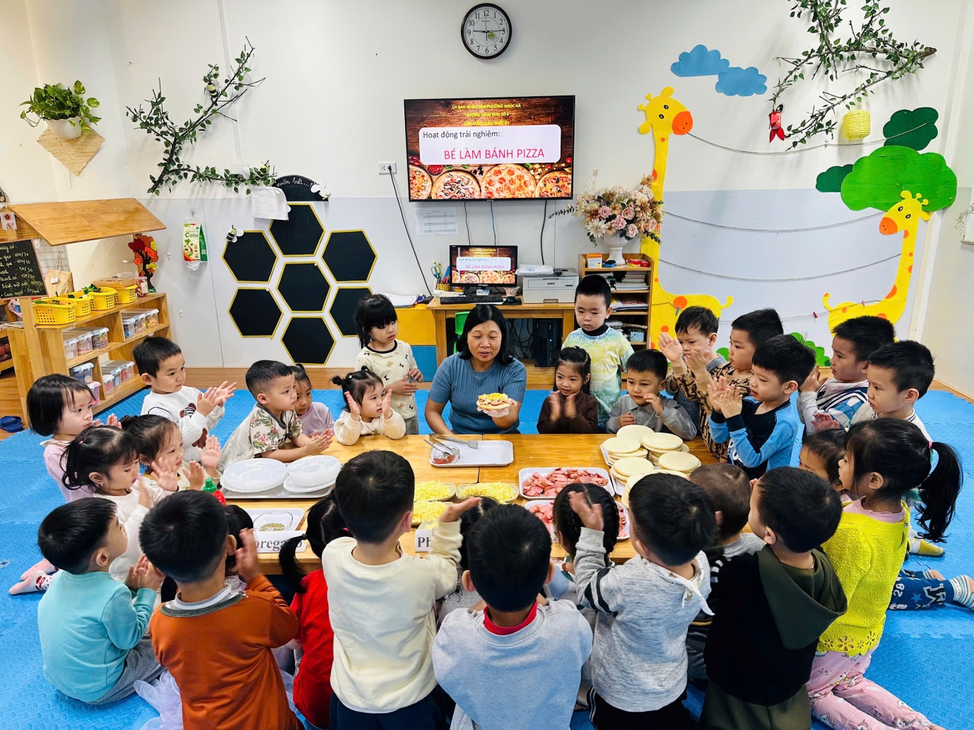 Hôm nay, các bé lớp MGN – B1 đã có buổi trải nghiệm vô cùng lý thú đó là thực hành làm bánh pizza - một loại bánh được rất nhiều các bạn nhỏ yêu thích.
