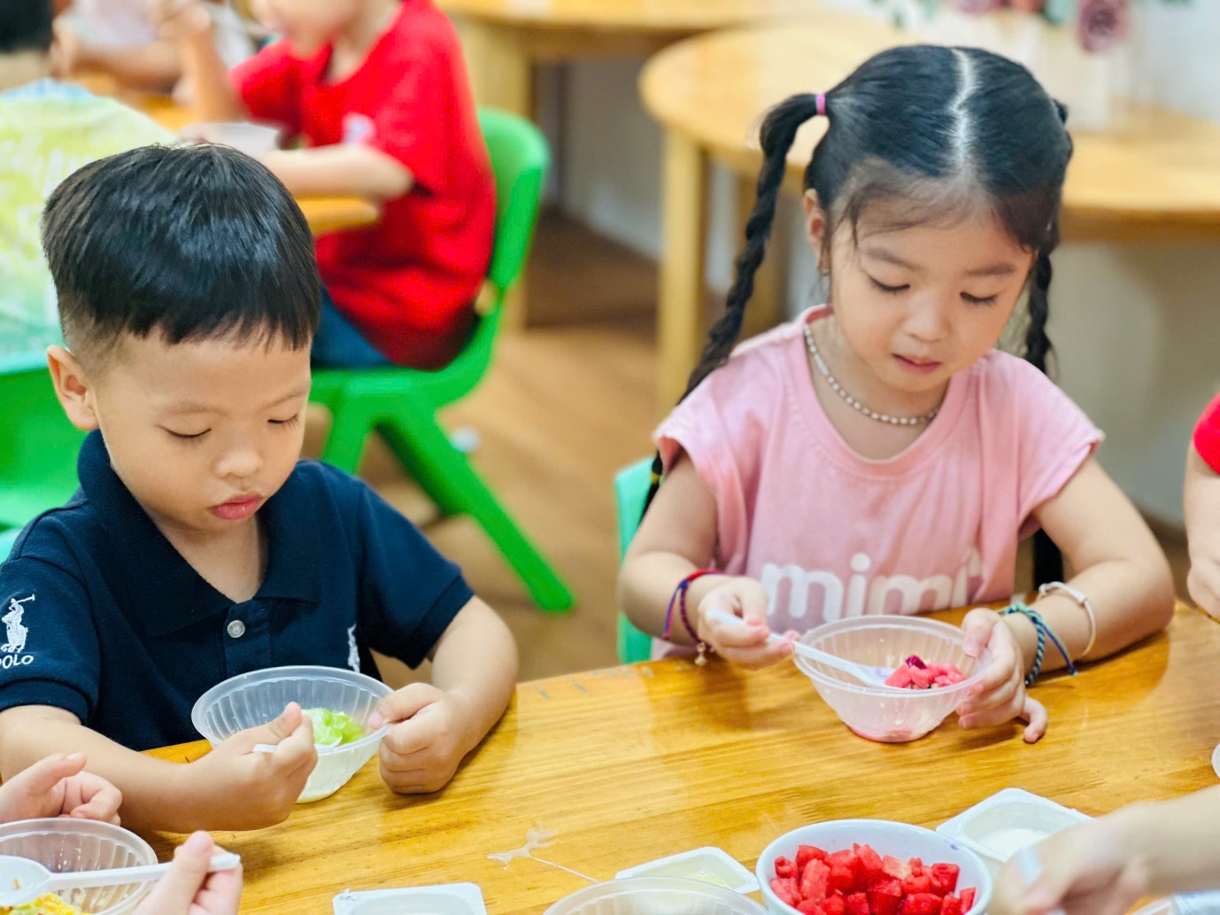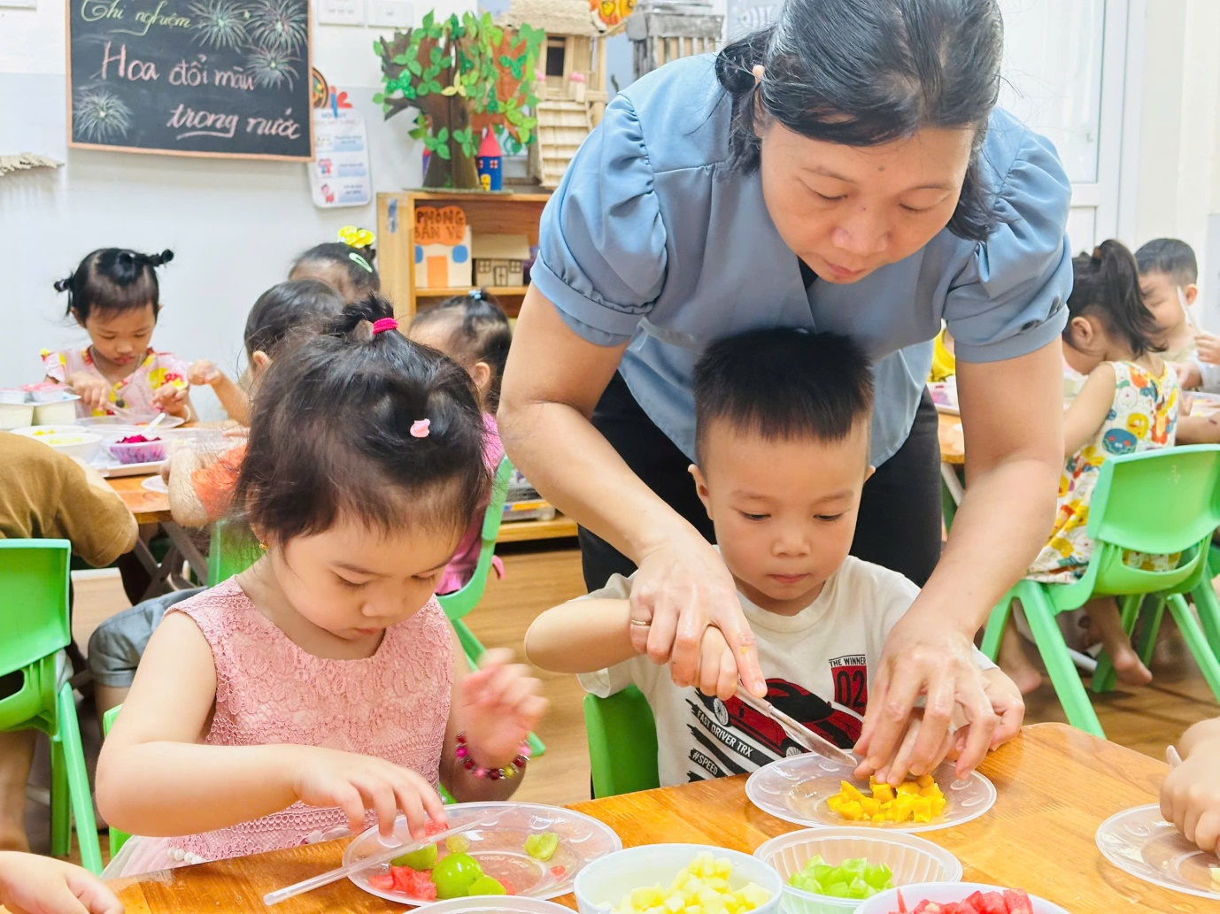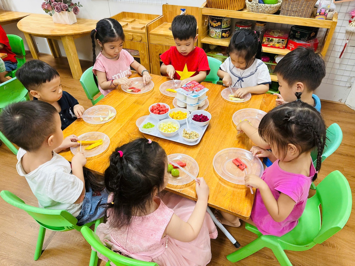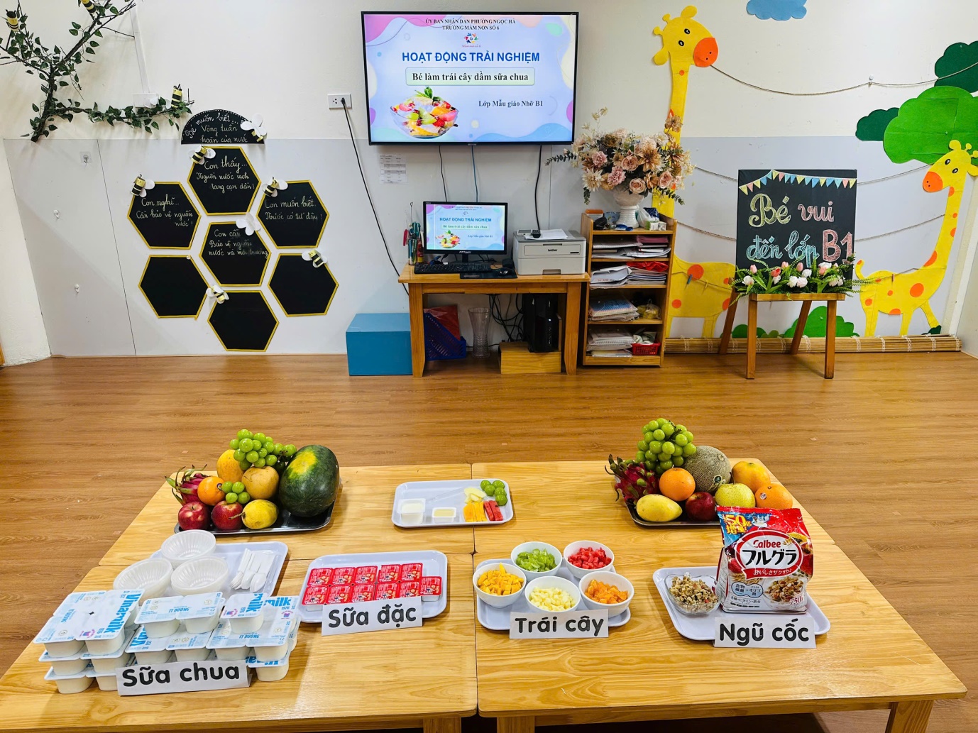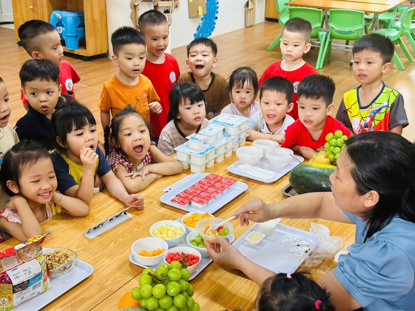 Hôm nay, các con học sinh lớp Mẫu giáo Nhỡ B1 đã được tham gia hoạt động trải nghiệm: “Bé làm trái cây dầm sữa chua”, các cô mong muốn tạo điều kiện cho các con rèn các kỹ năng đã học, phát triển tính nhanh nhẹn, khéo léo.