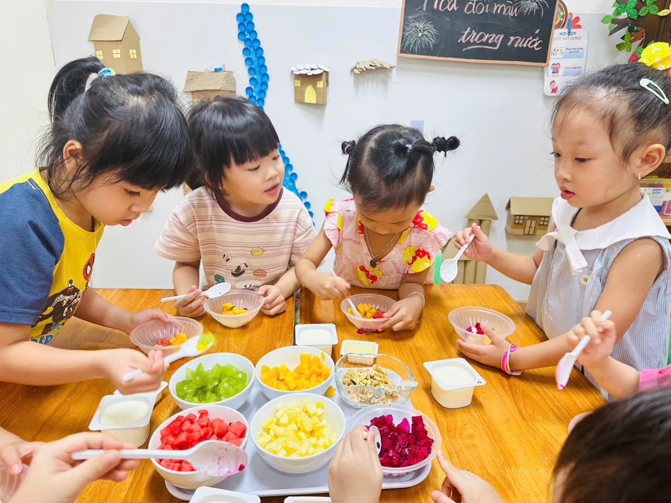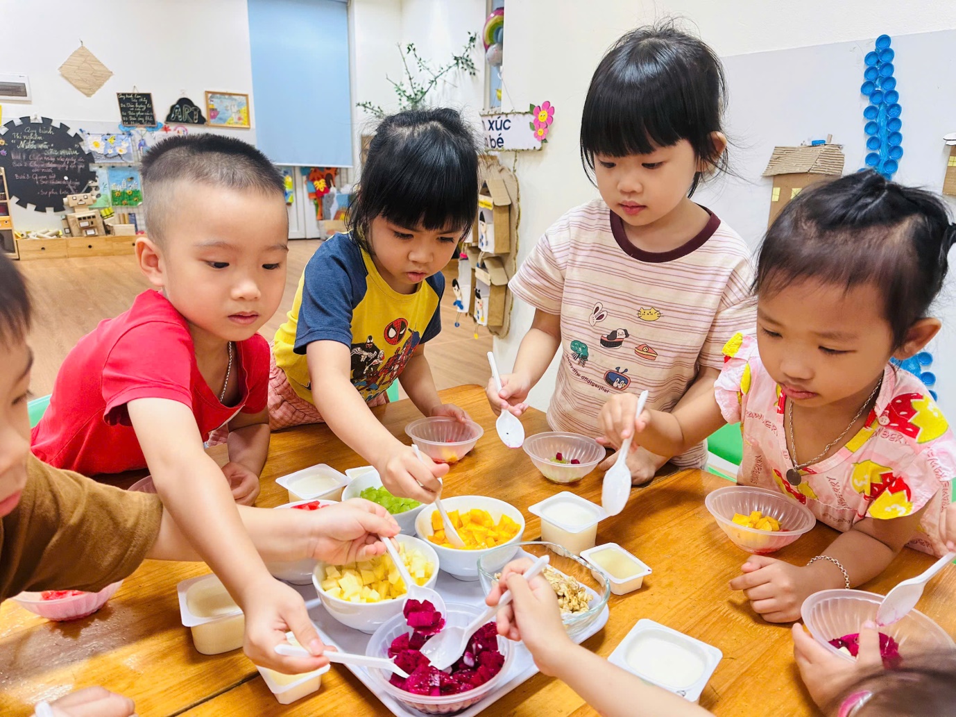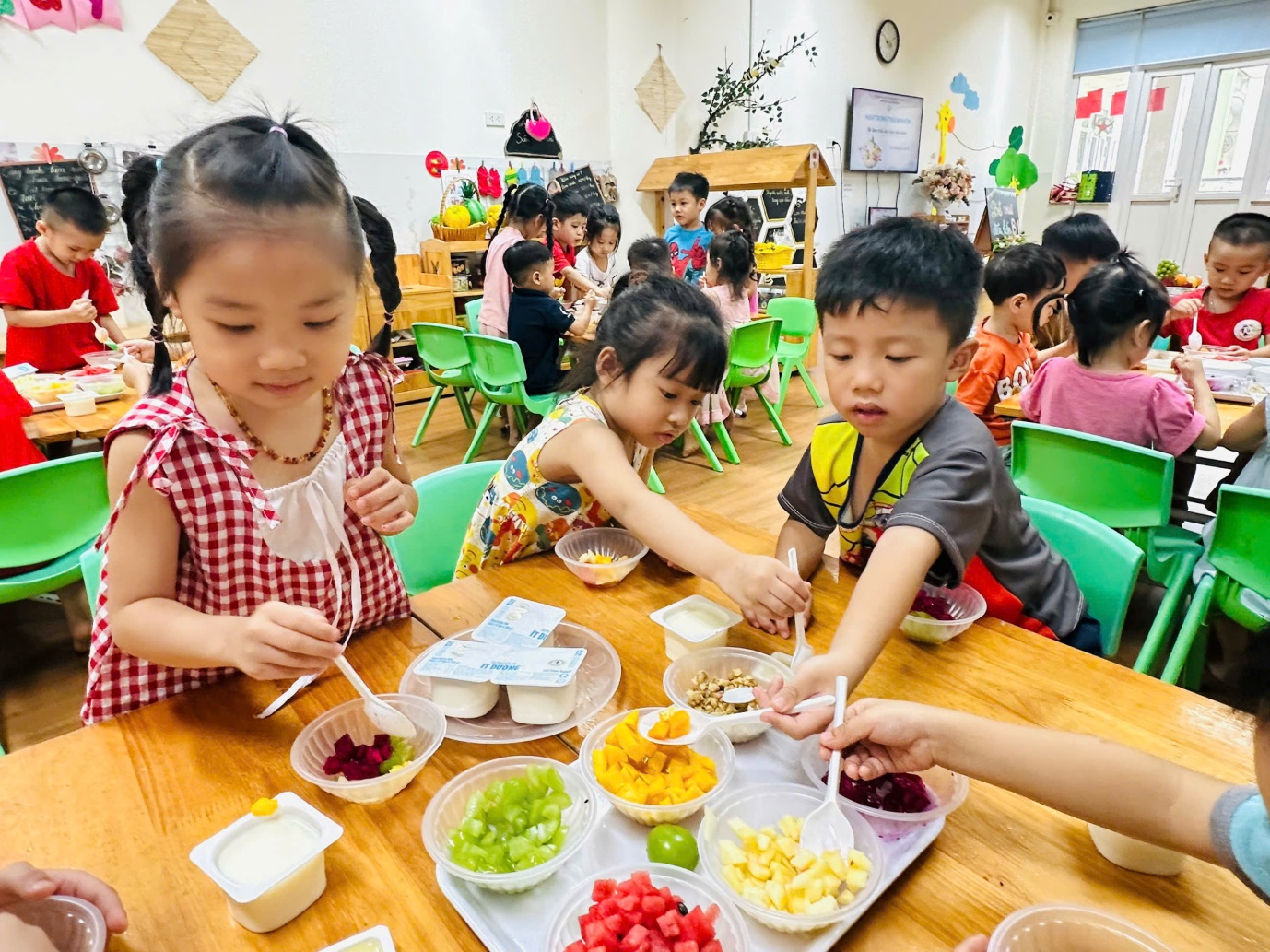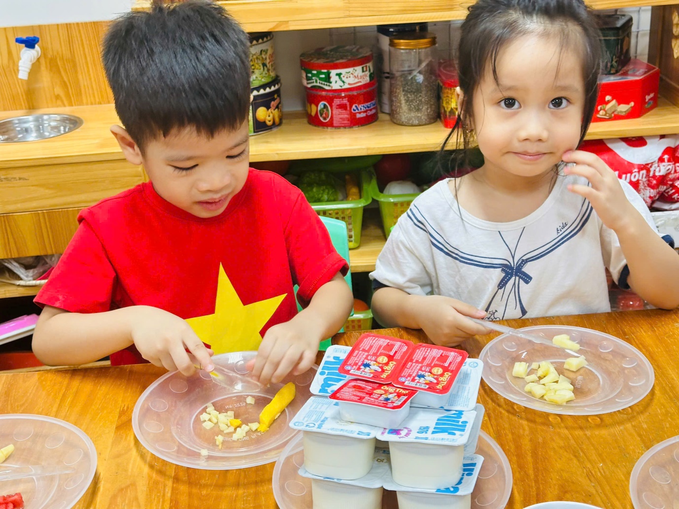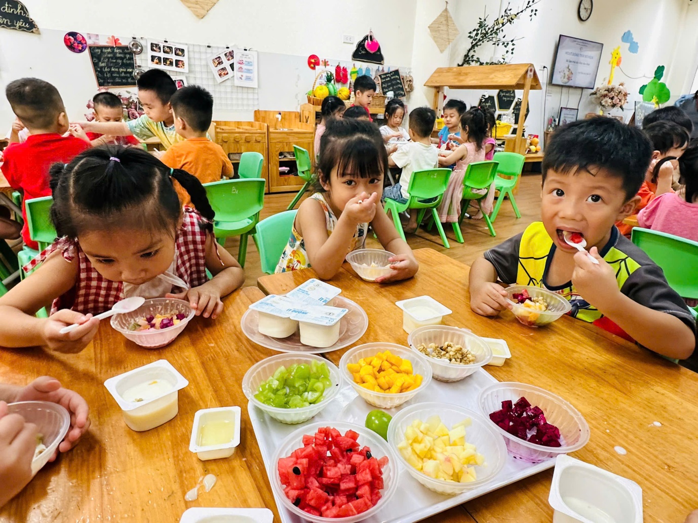 Hoạt động trải nghiệm lớp MGN B1: Bé làm trái cây dầm sữa chua