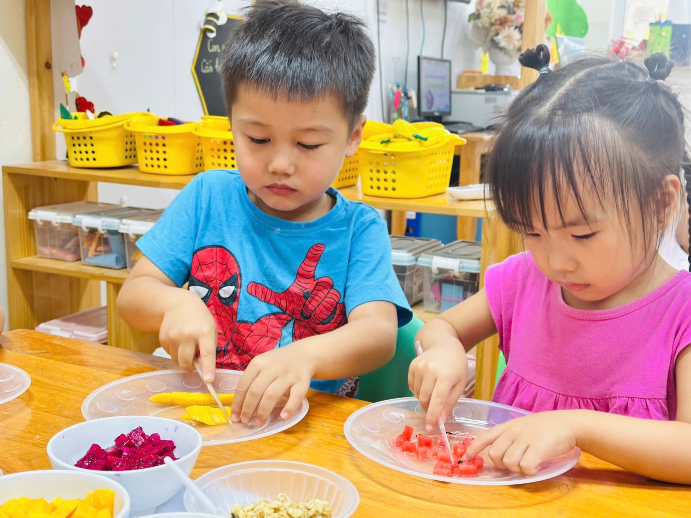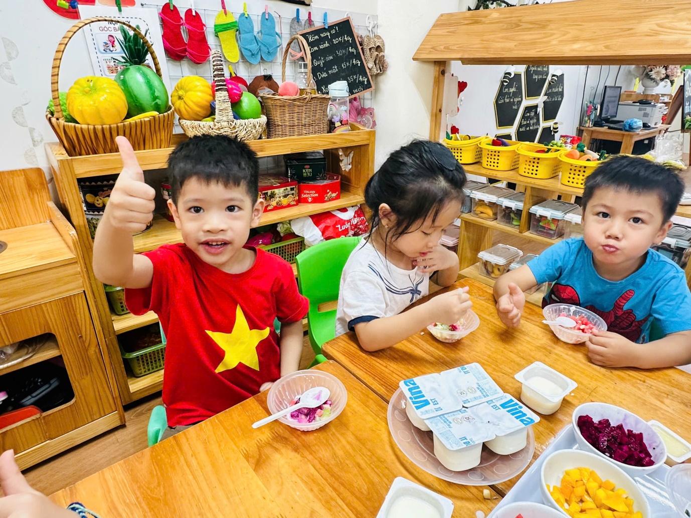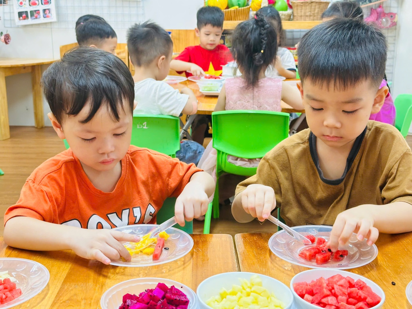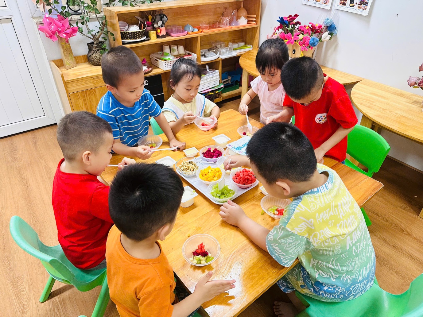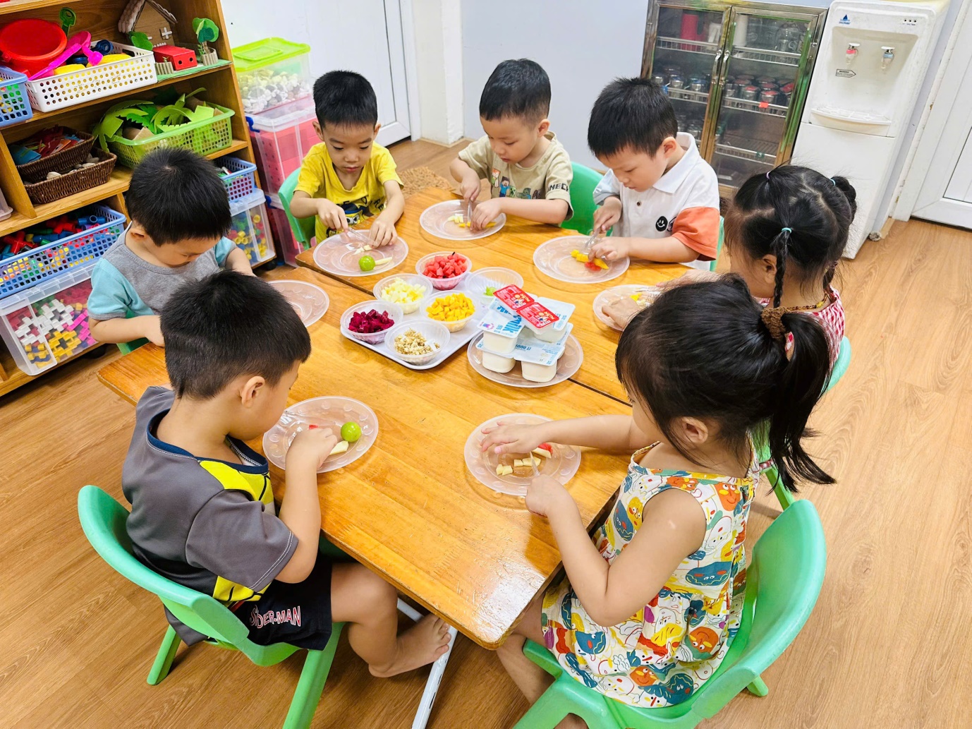 Hoạt động trải nghiệm lớp MGN B1: Bé làm trái cây dầm sữa chua