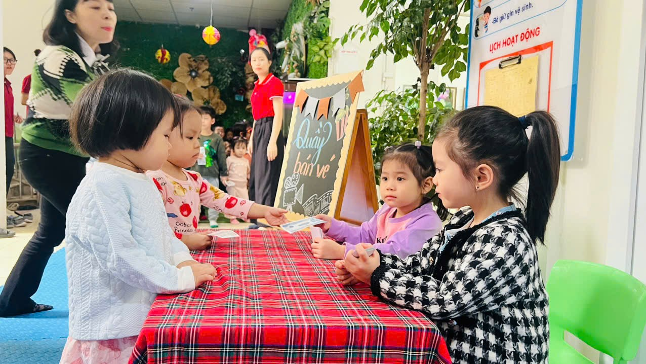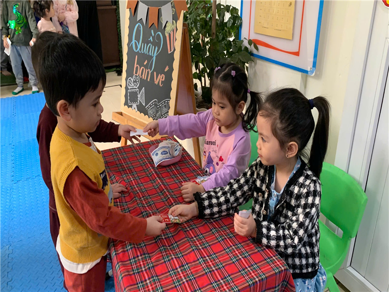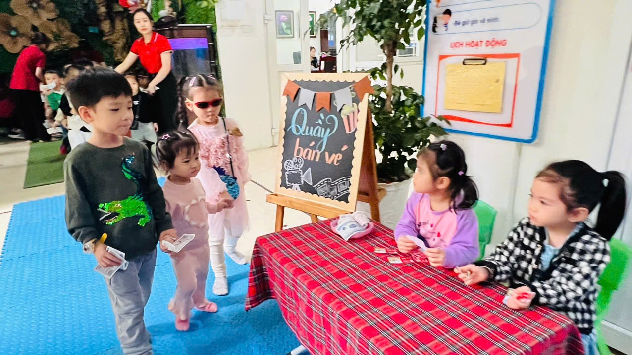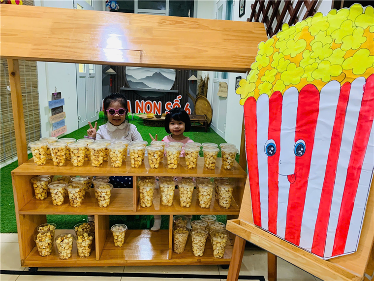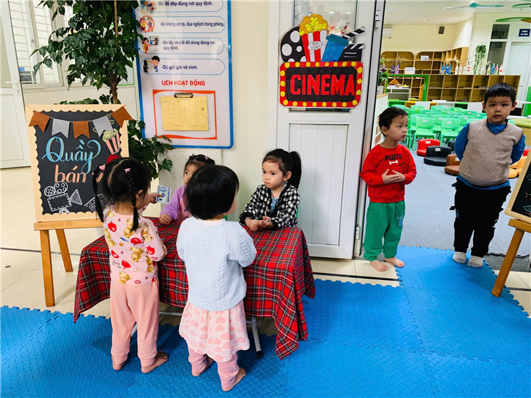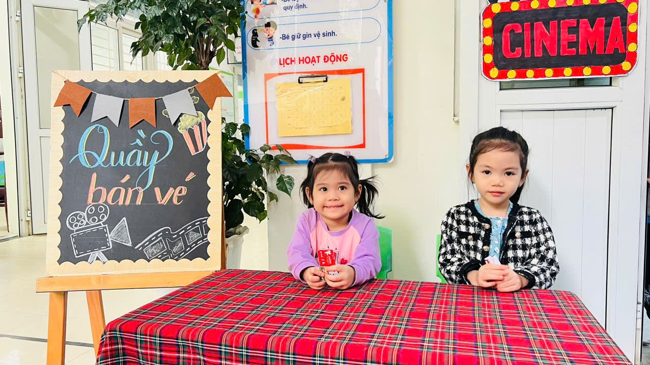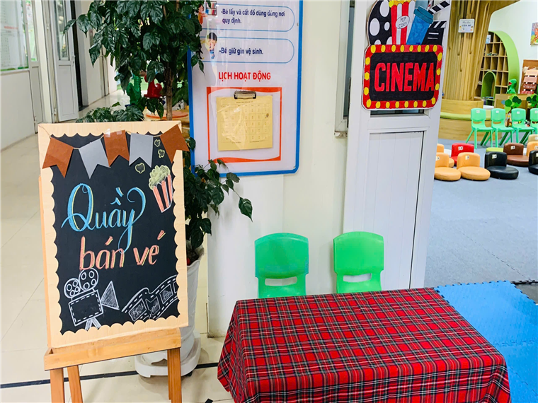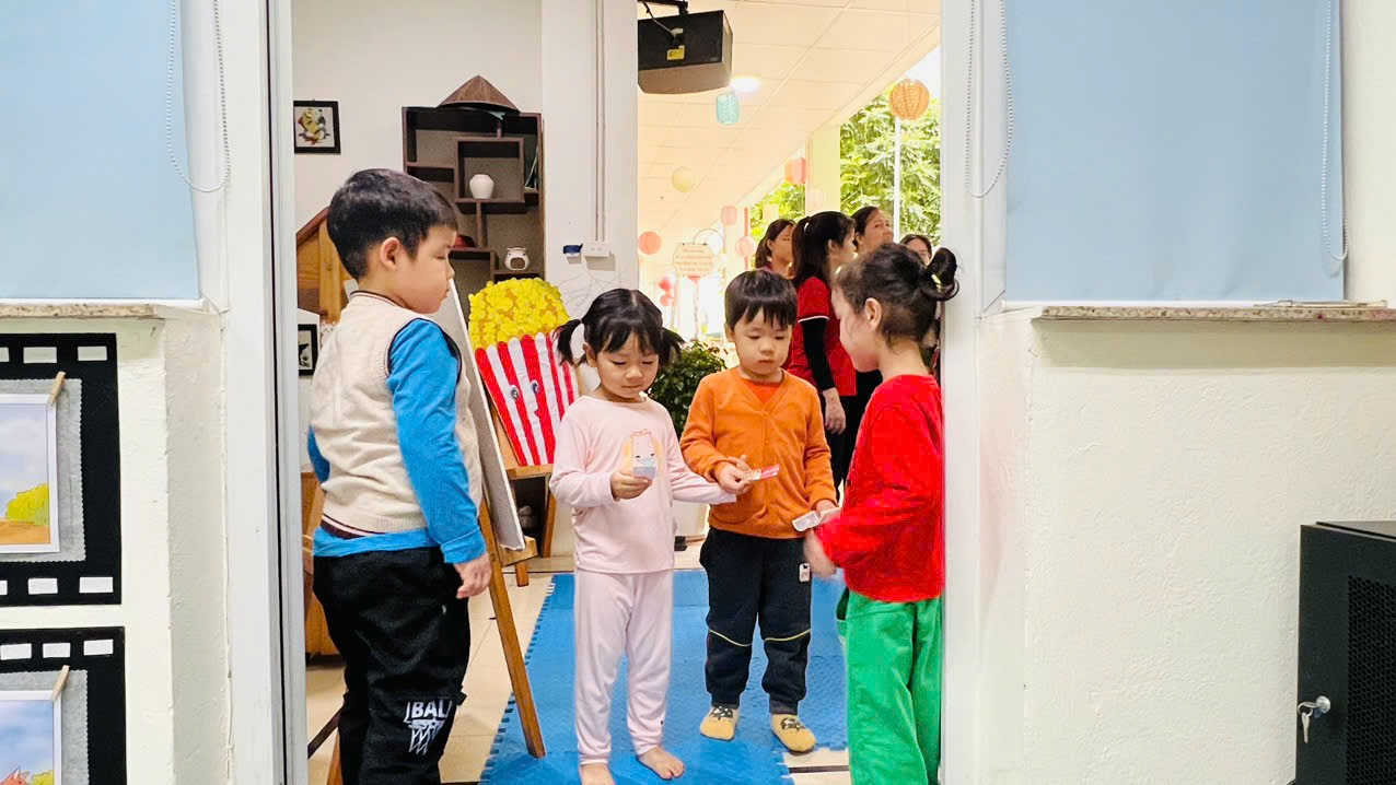 Để có một buổi xem phim thành công thì việc chuẩn bị kế hoạch thực hiện đã được giáo viên trong lớp bàn bạc, trao đổi. Bắt đầu từ việc lựa chọn phim phù hợp với lứa tuổi trẻ, mang tính giáo dục cao, hay việc chuẩn bị vé in sẵn, số ghế tương ứng với số vé, đến việc tạo ra không gian bên ngoài rạp bằng những poster hấp dẫn. Thư viện trường cũng chính là nơi diễn ra buổi xẹm phim đã được trang trí cho phù hợp với hoạt động. Ngay từ hôm trước tất cả ghế đã được các cô giáo xếp gọn gàng và dán số ghế theo đúng số vé mà trẻ được trải nghiệm qua hoạt động mua vé. Sau đây là một số hình ảnh của buổi trải nghiệm thú vị này: