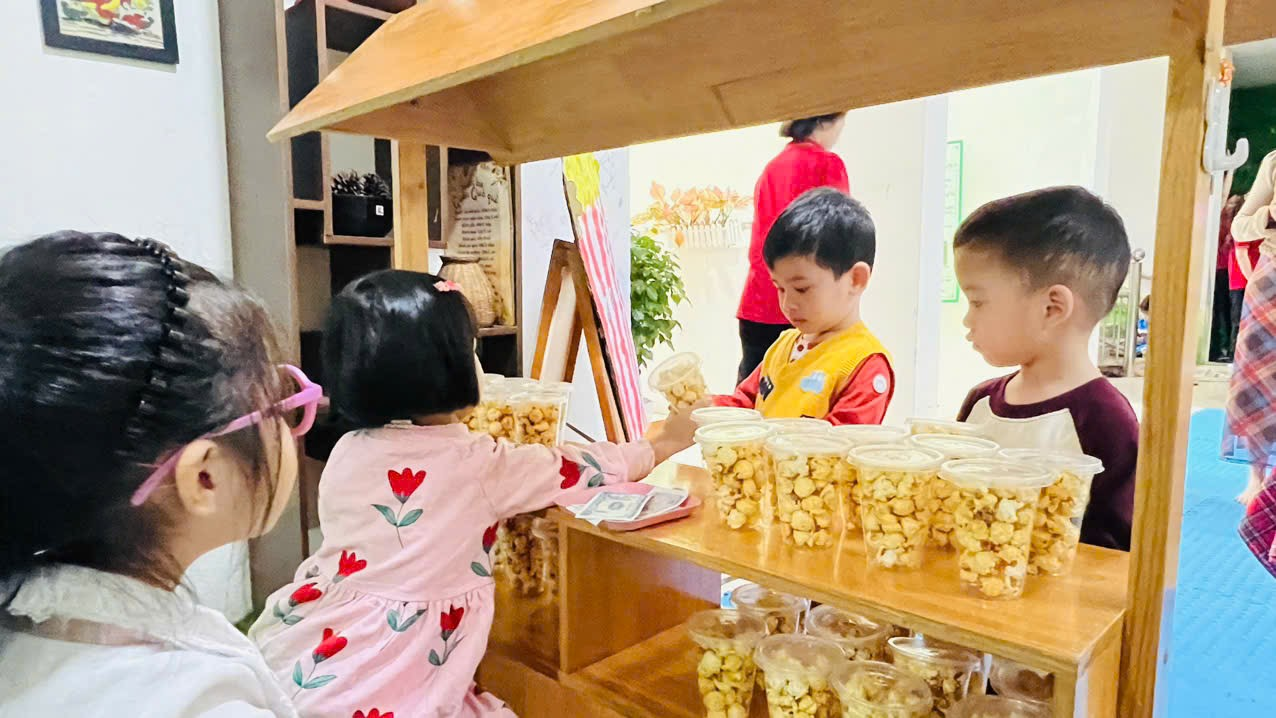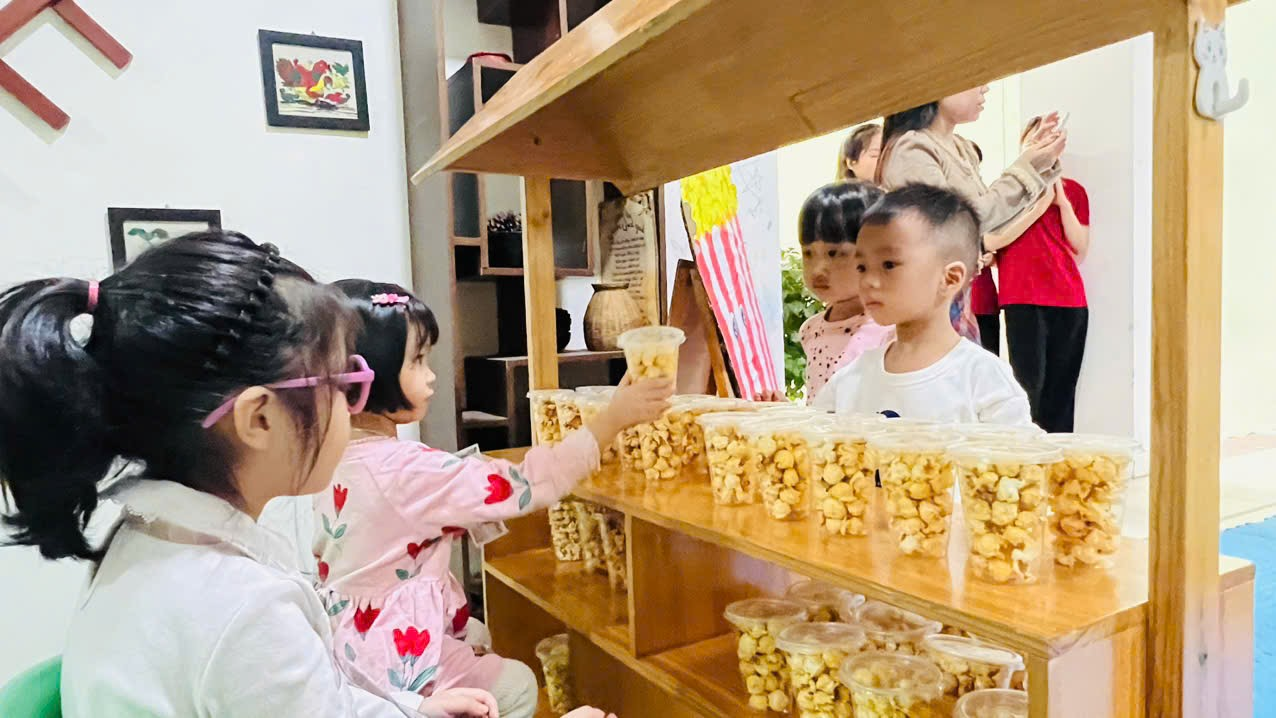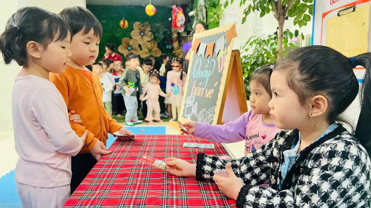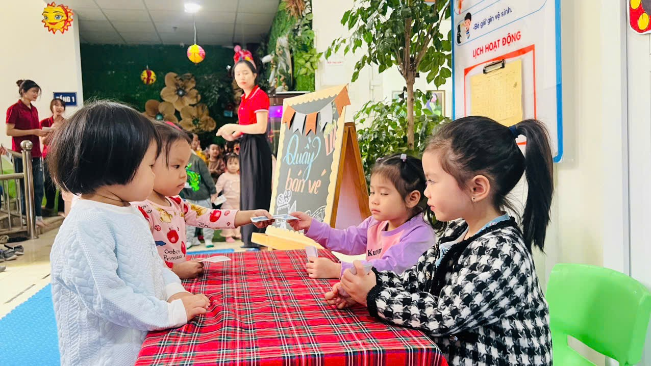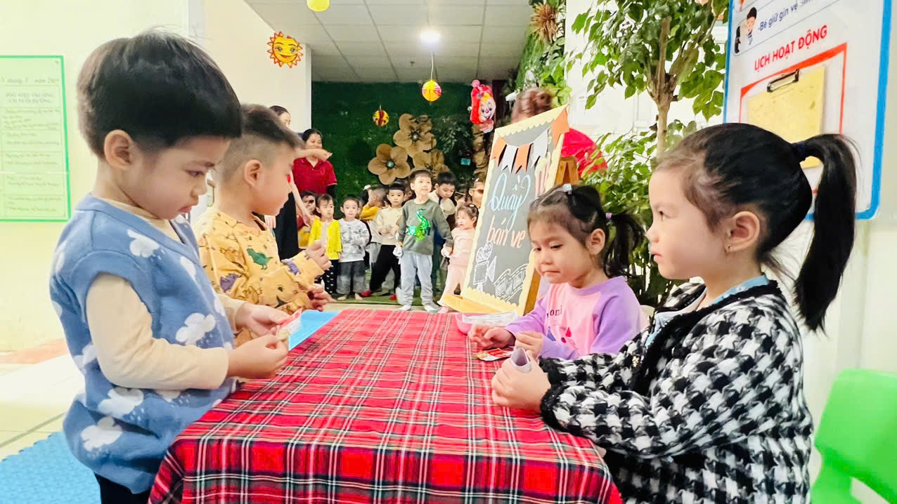 Để có một buổi xem phim thành công thì việc chuẩn bị kế hoạch thực hiện đã được giáo viên trong lớp bàn bạc, trao đổi. Bắt đầu từ việc lựa chọn phim phù hợp với lứa tuổi trẻ, mang tính giáo dục cao, hay việc chuẩn bị vé in sẵn, số ghế tương ứng với số vé, đến việc tạo ra không gian bên ngoài rạp bằng những poster hấp dẫn. Thư viện trường cũng chính là nơi diễn ra buổi xẹm phim đã được trang trí cho phù hợp với hoạt động. Ngay từ hôm trước tất cả ghế đã được các cô giáo xếp gọn gàng và dán số ghế theo đúng số vé mà trẻ được trải nghiệm qua hoạt động mua vé. Sau đây là một số hình ảnh của buổi trải nghiệm thú vị này: