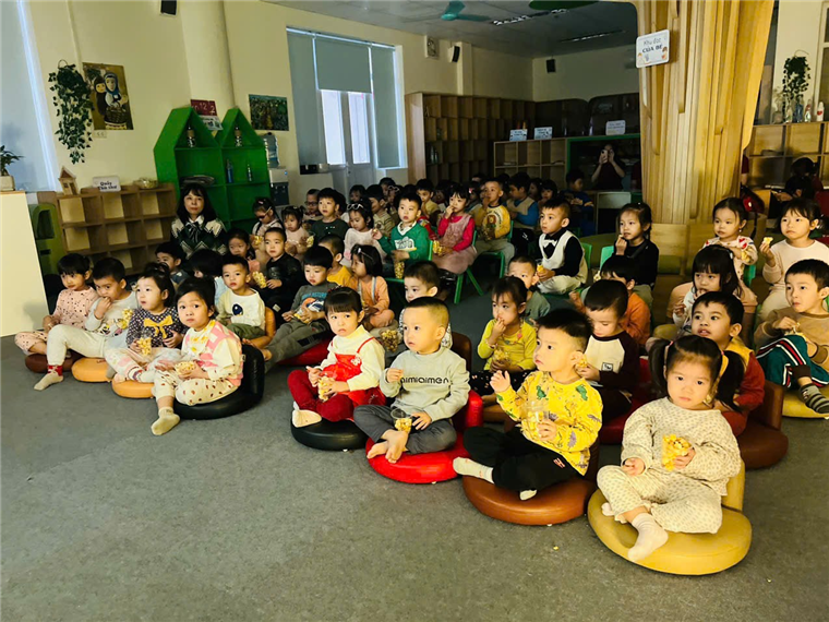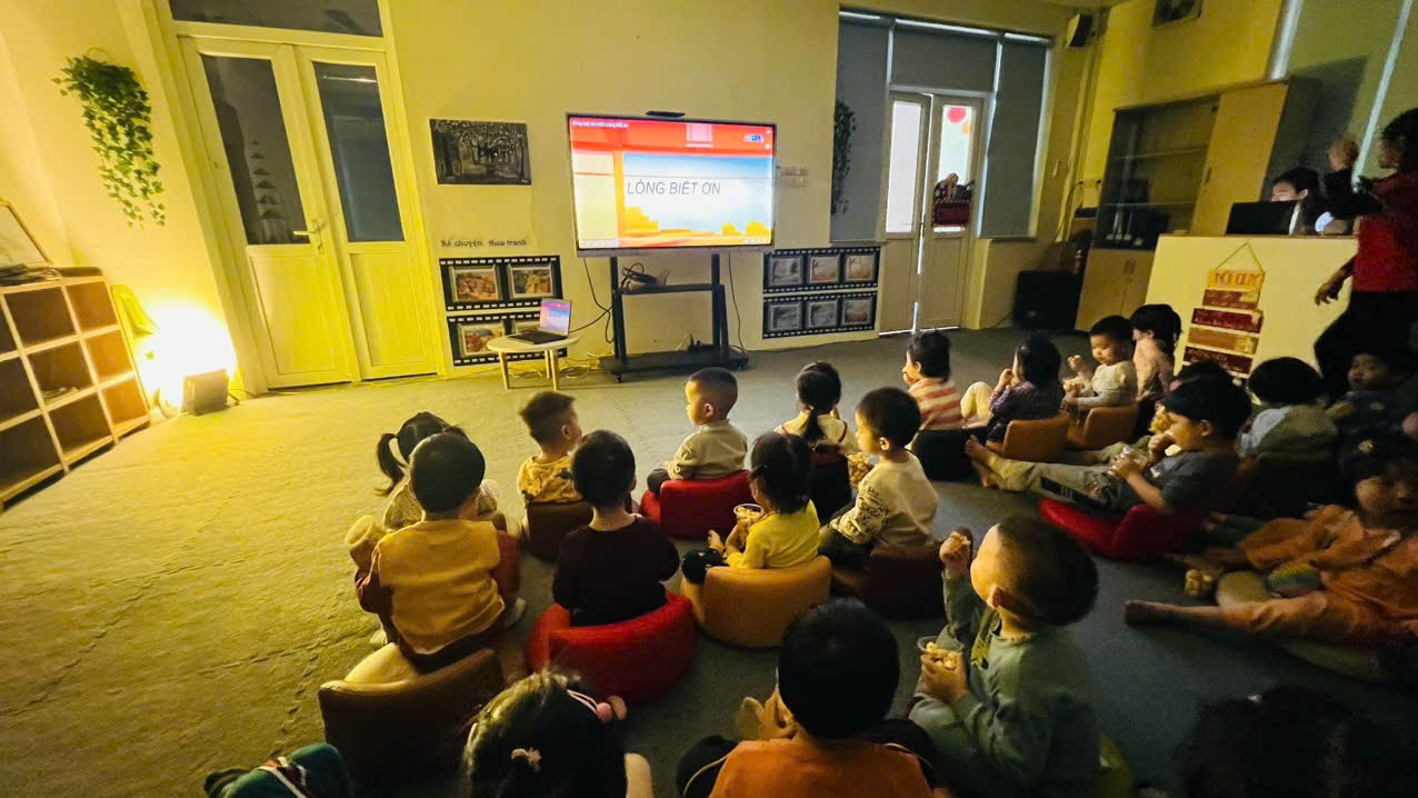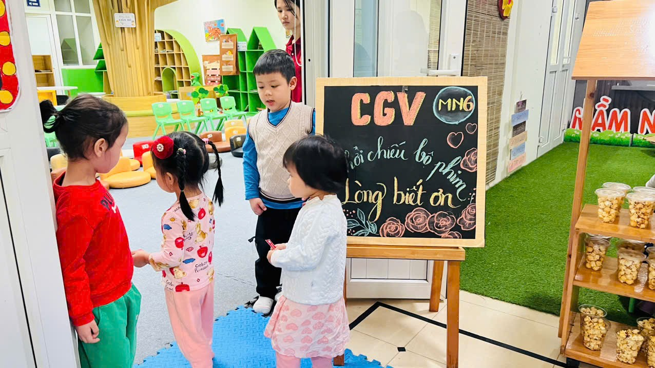 Hôm nay các bạn nhỏ lớp MGB C2 và lớp MGN B2 đã cùng nhau tham gia hoạt động trải nghiệm này. Các cô đã lựa chọn bộ phim có nội dung về tình cảm gia đình, bộ phim có tên “Lòng biết ơn”, với mong muốn khi xem xong bộ phim này các bạn nhỏ sẽ có thêm kỹ năng ứng xử xã hội, ứng xử đúng mực với những người thân trong gia đình.