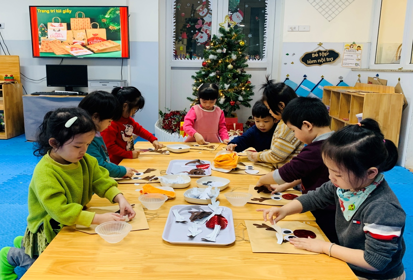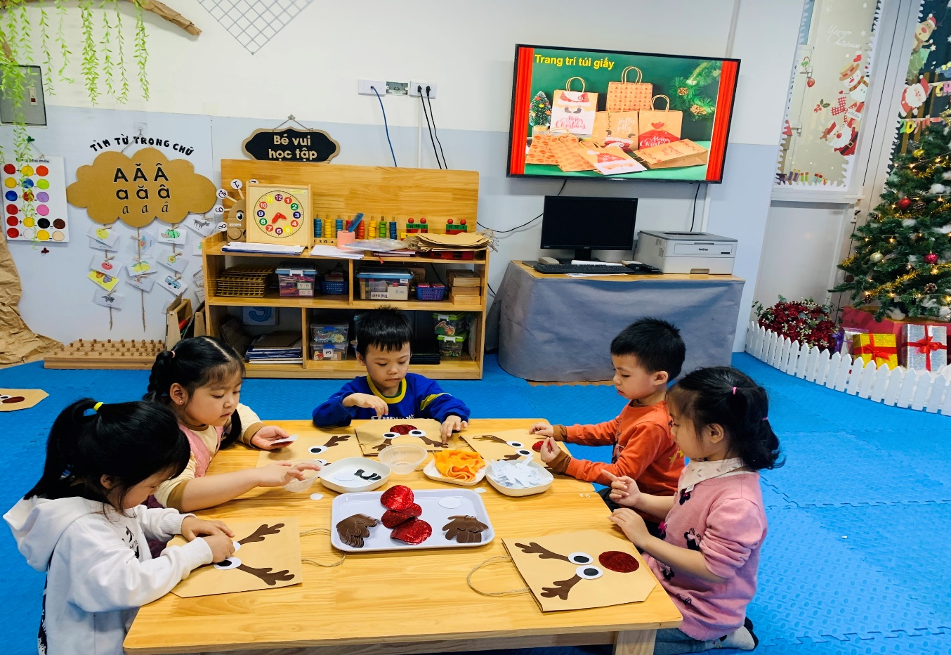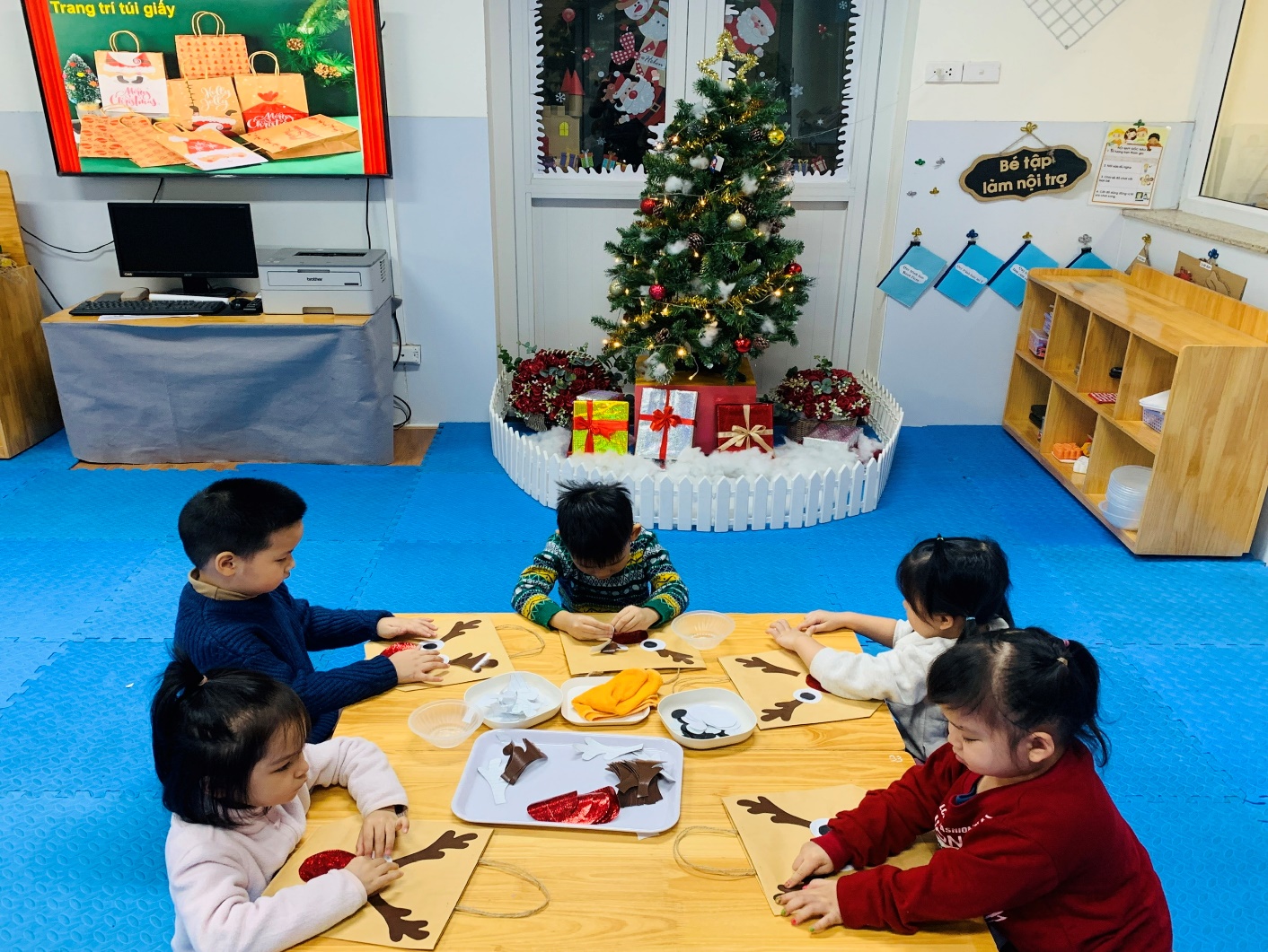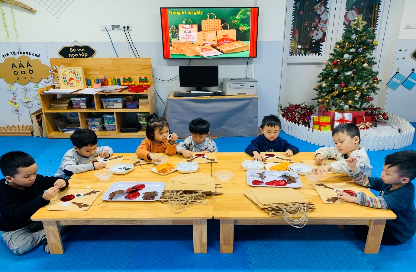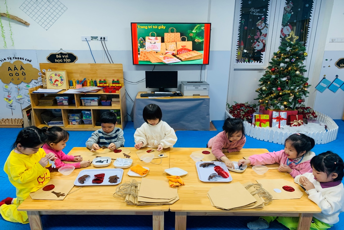 Giờ học ngày hôm nay thật mới lạ bởi các bé được cô giáo giao nhiệm vụ là trang trí những chiếc túi giấy hình con Tuần lộc. Cô đã chuẩn bị rất nhiều túi giấy, nhiều nguyên vật liệu để các bé thỏa sức sáng tạo.