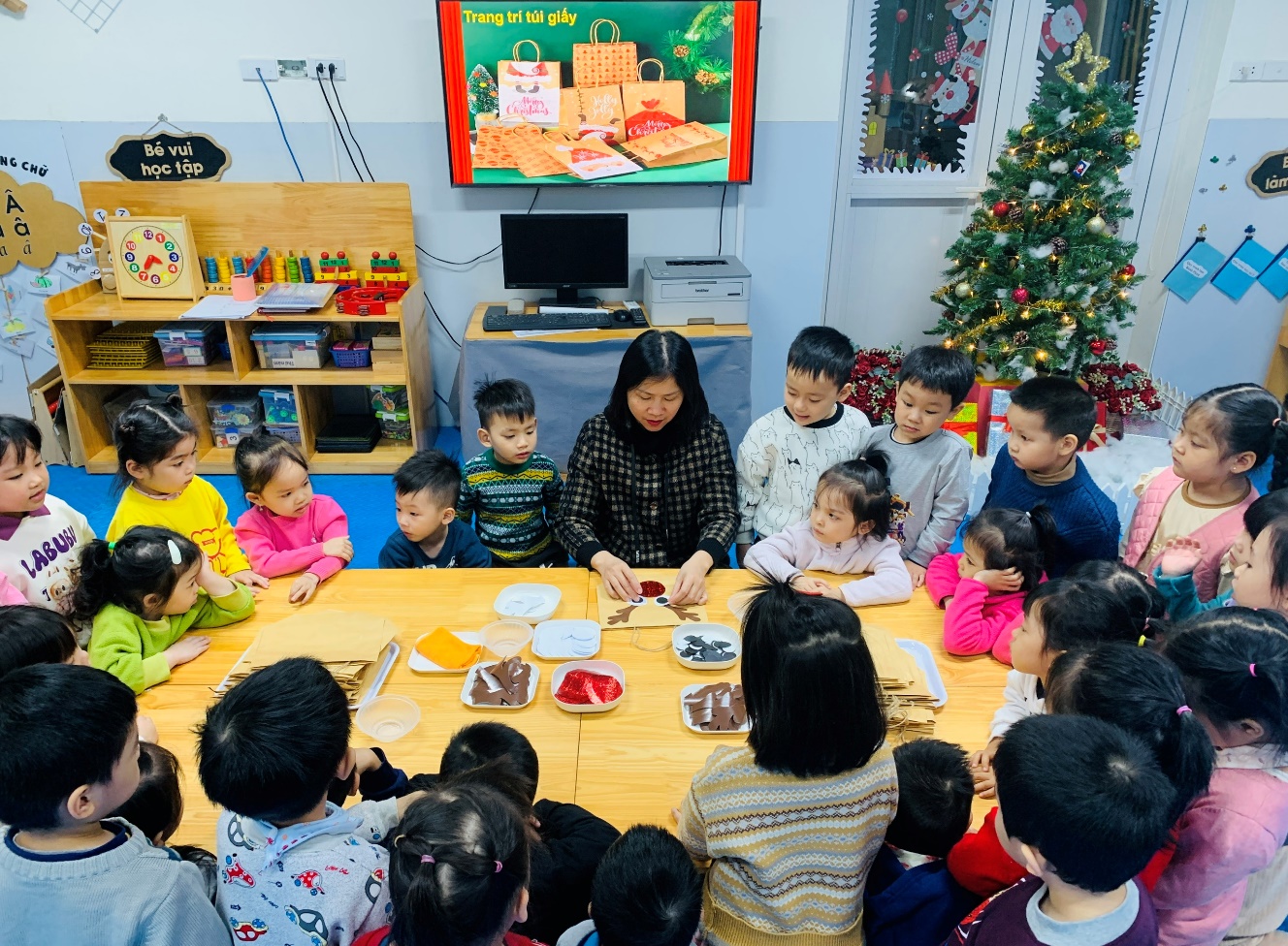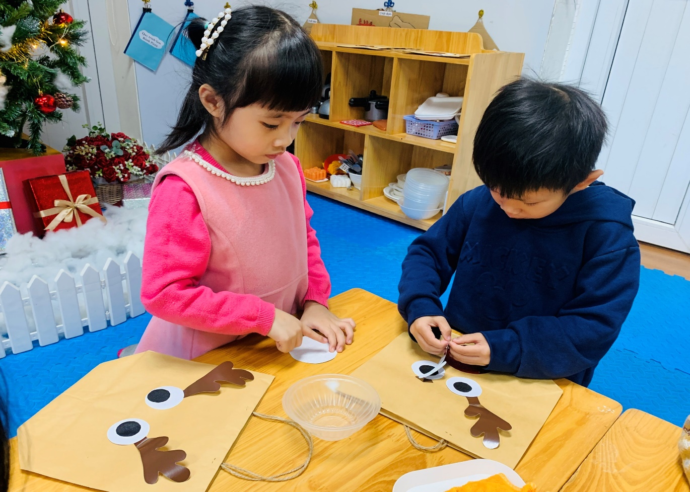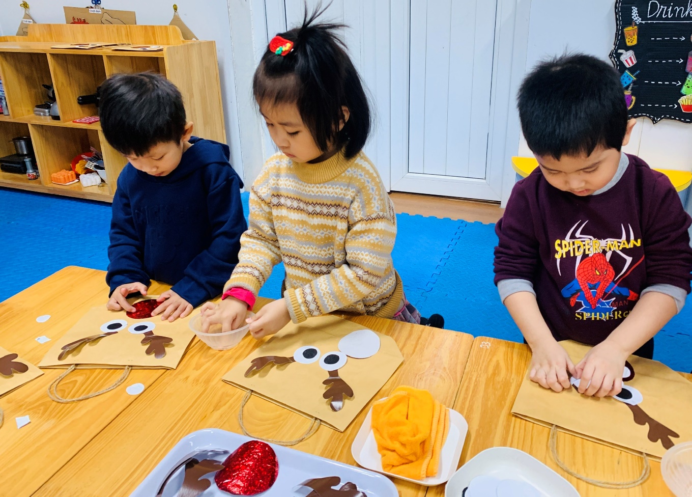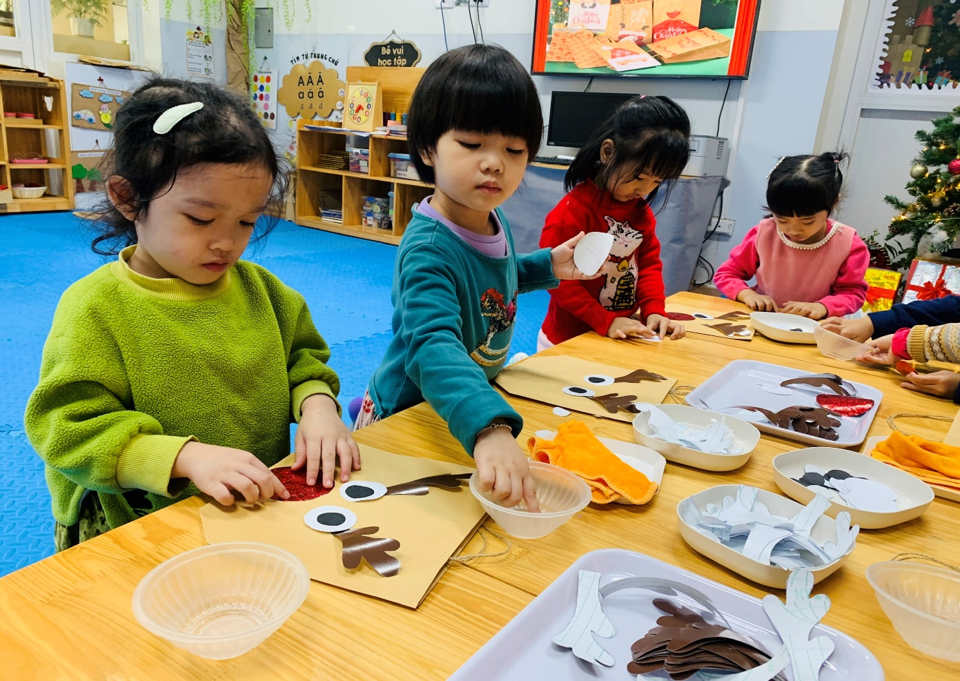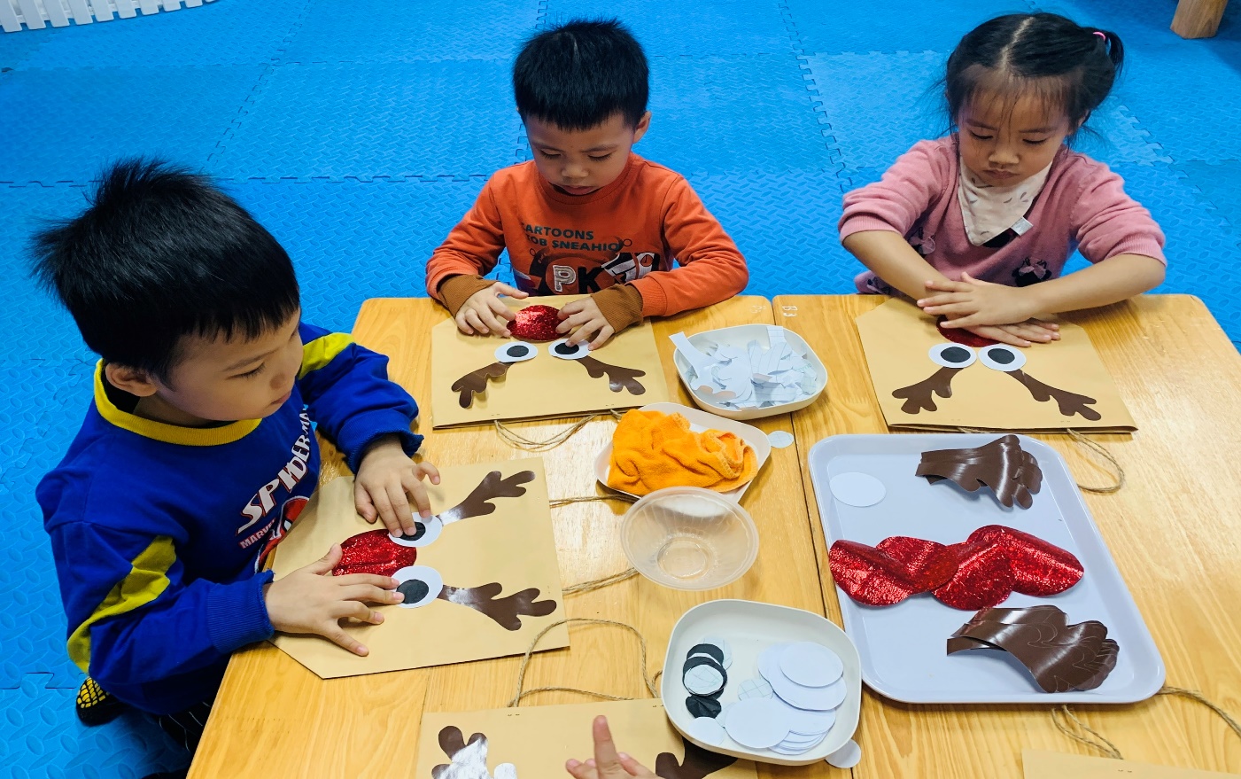 Giờ học ngày hôm nay thật mới lạ bởi các bé được cô giáo giao nhiệm vụ là trang trí những chiếc túi giấy hình con Tuần lộc. Cô đã chuẩn bị rất nhiều túi giấy, nhiều nguyên vật liệu để các bé thỏa sức sáng tạo.