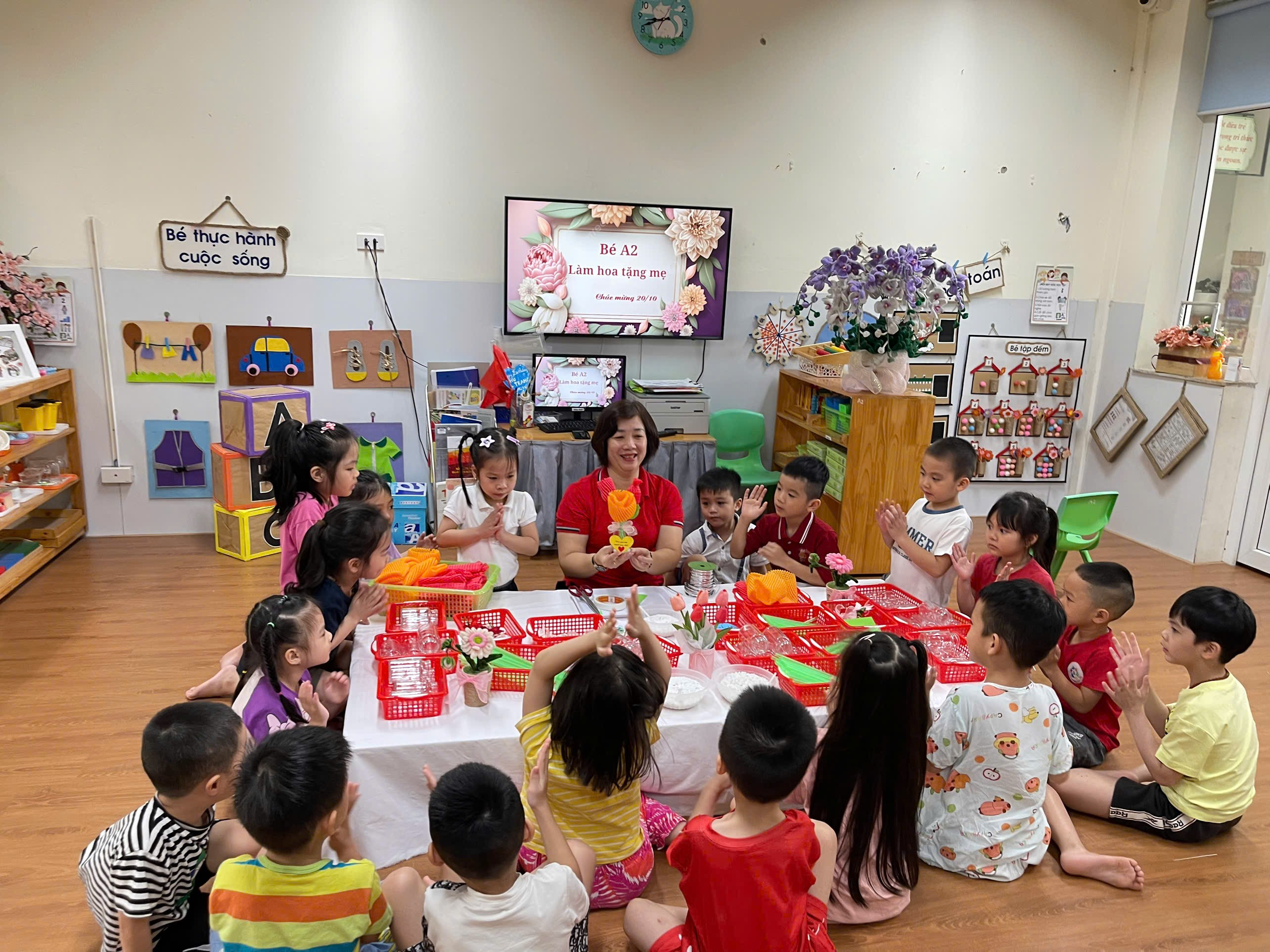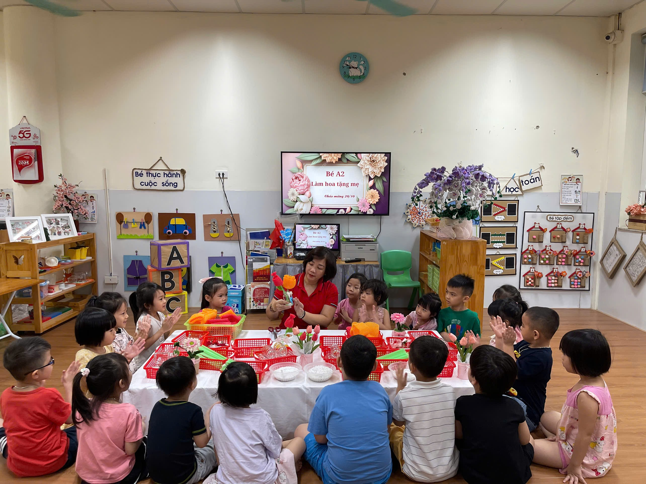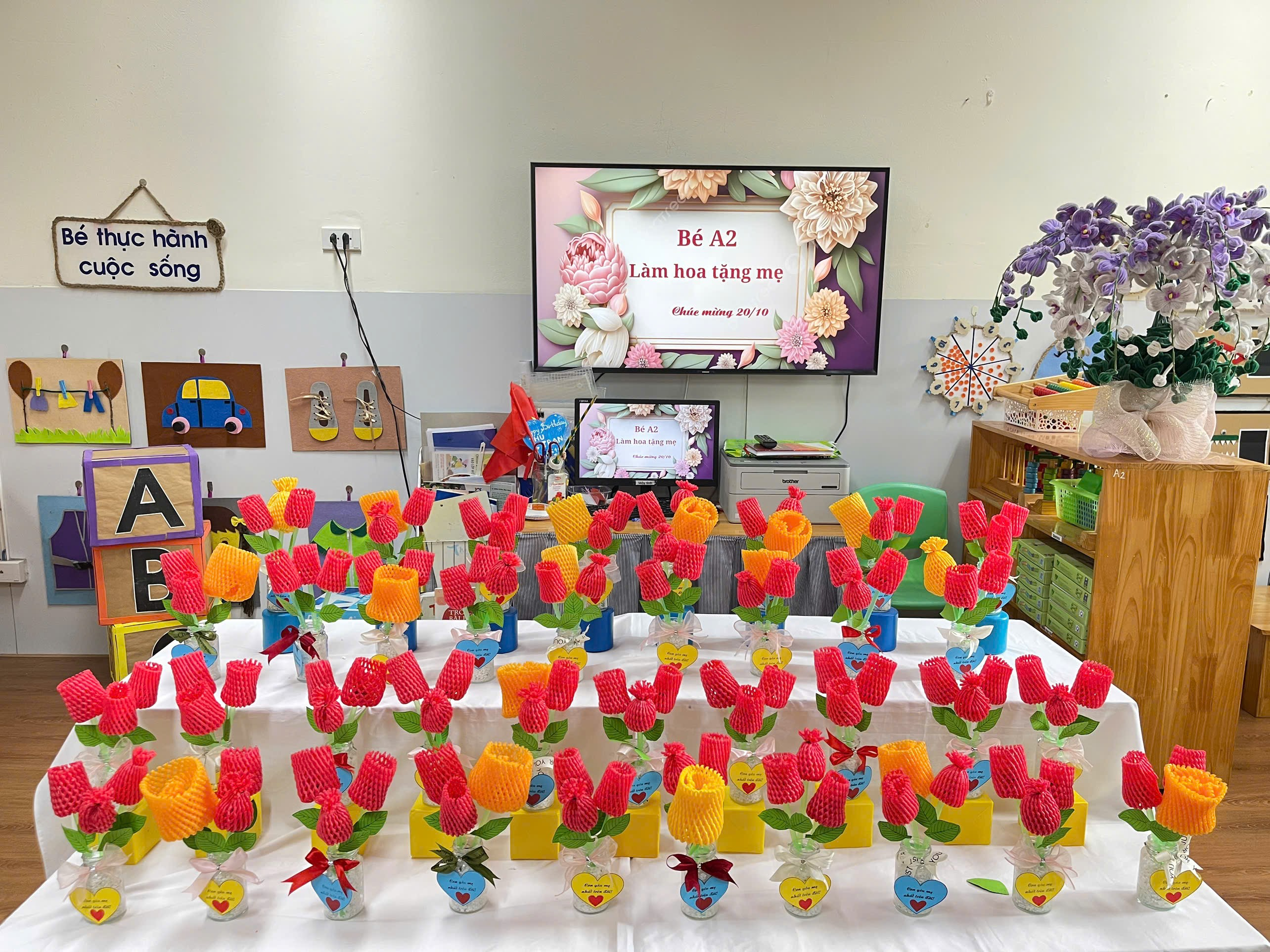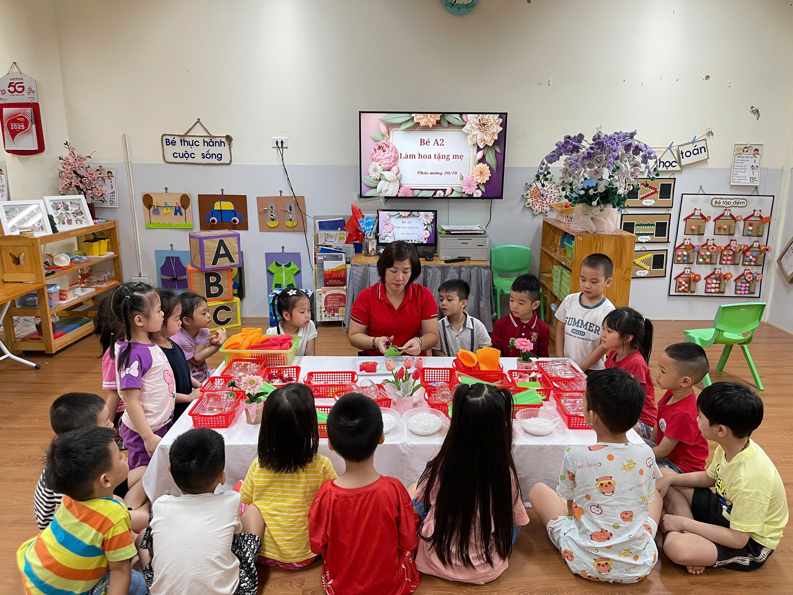 Hòa trong không khí rộn ràng của tháng 10 – tháng tôn vinh những người phụ nữ Việt Nam, các bạn nhỏ lớp Mẫu giáo lớn A2 đã có một buổi học thật đặc biệt: Làm hoa tặng mẹ yêu. 🌷