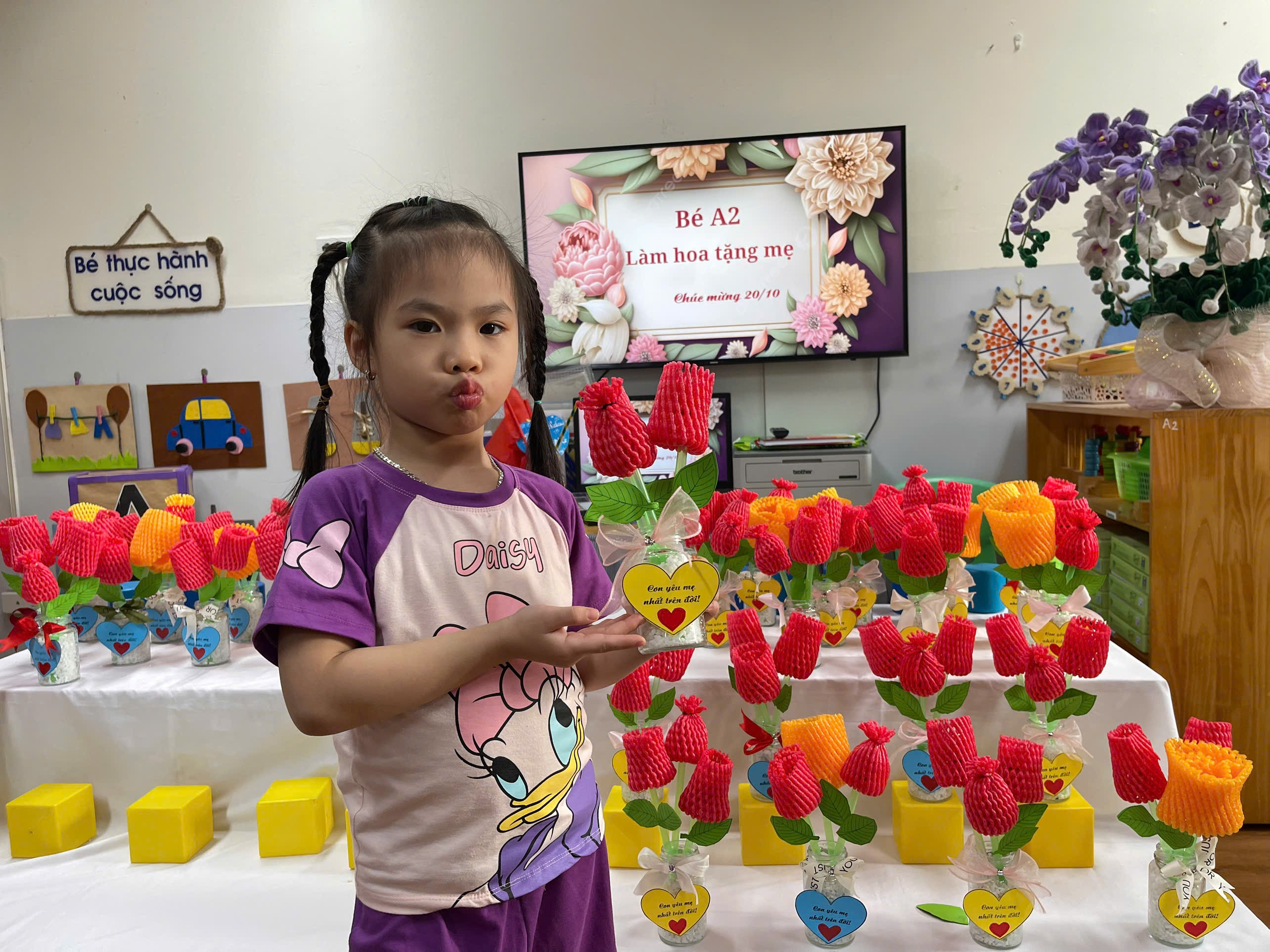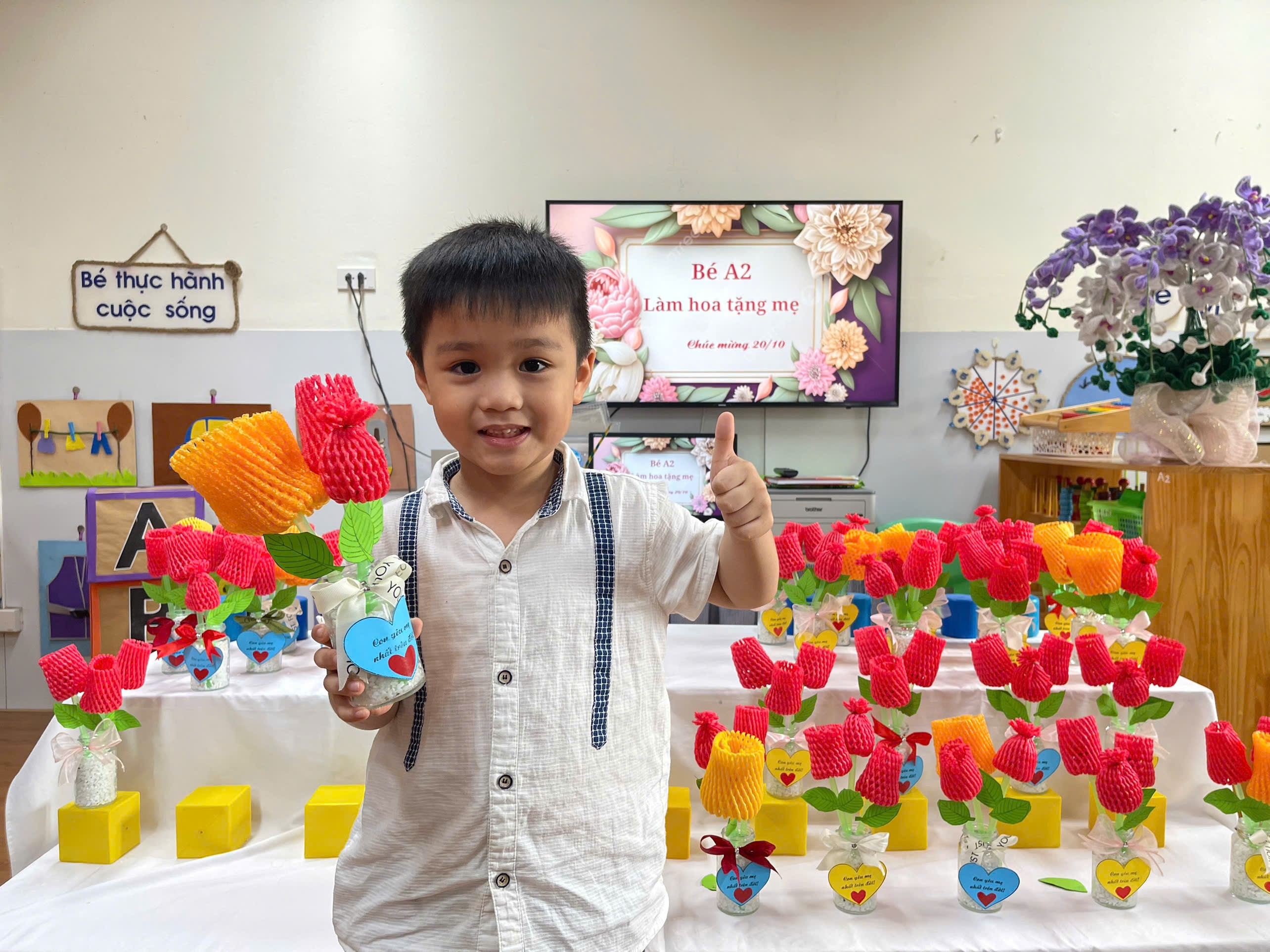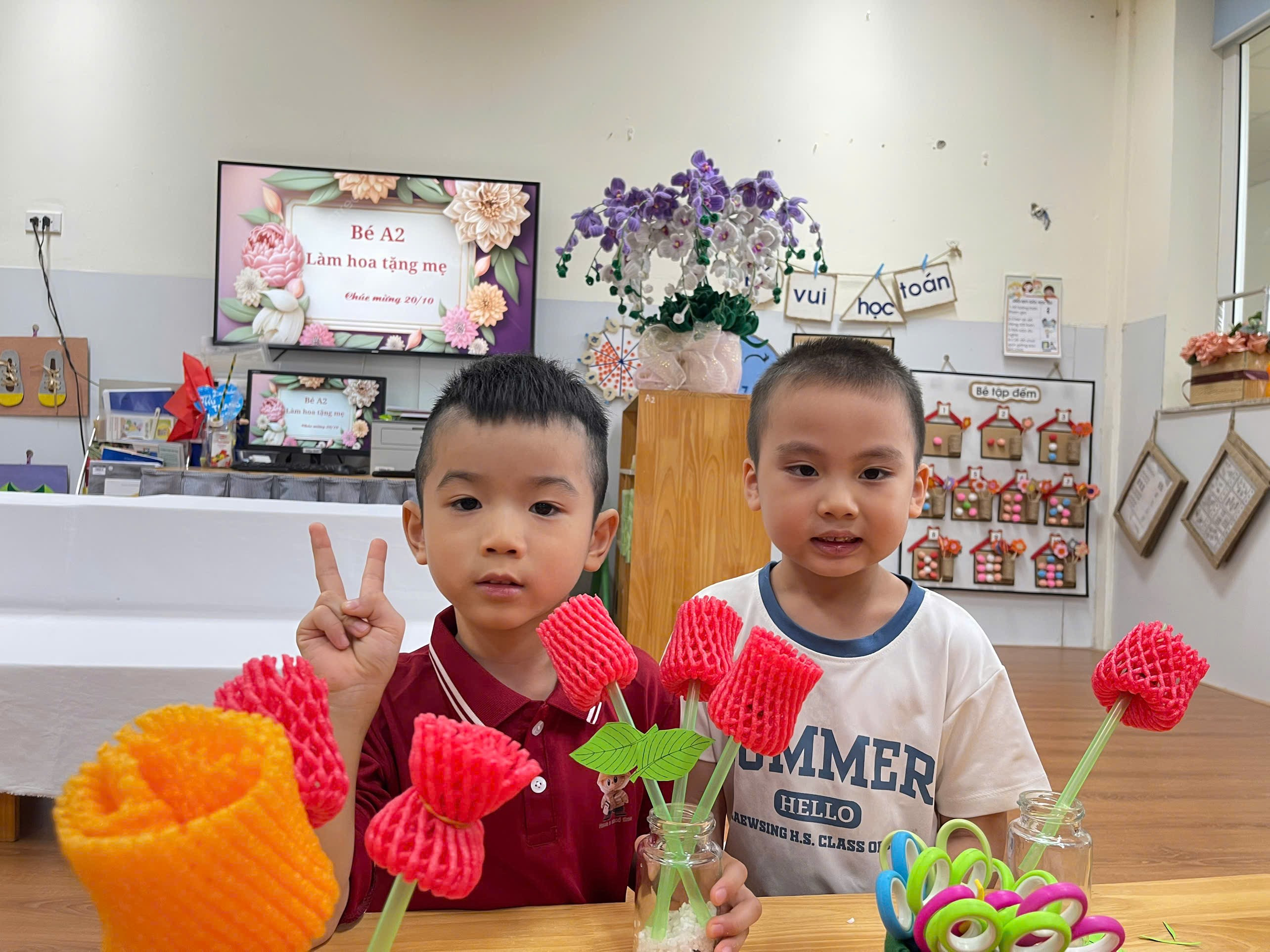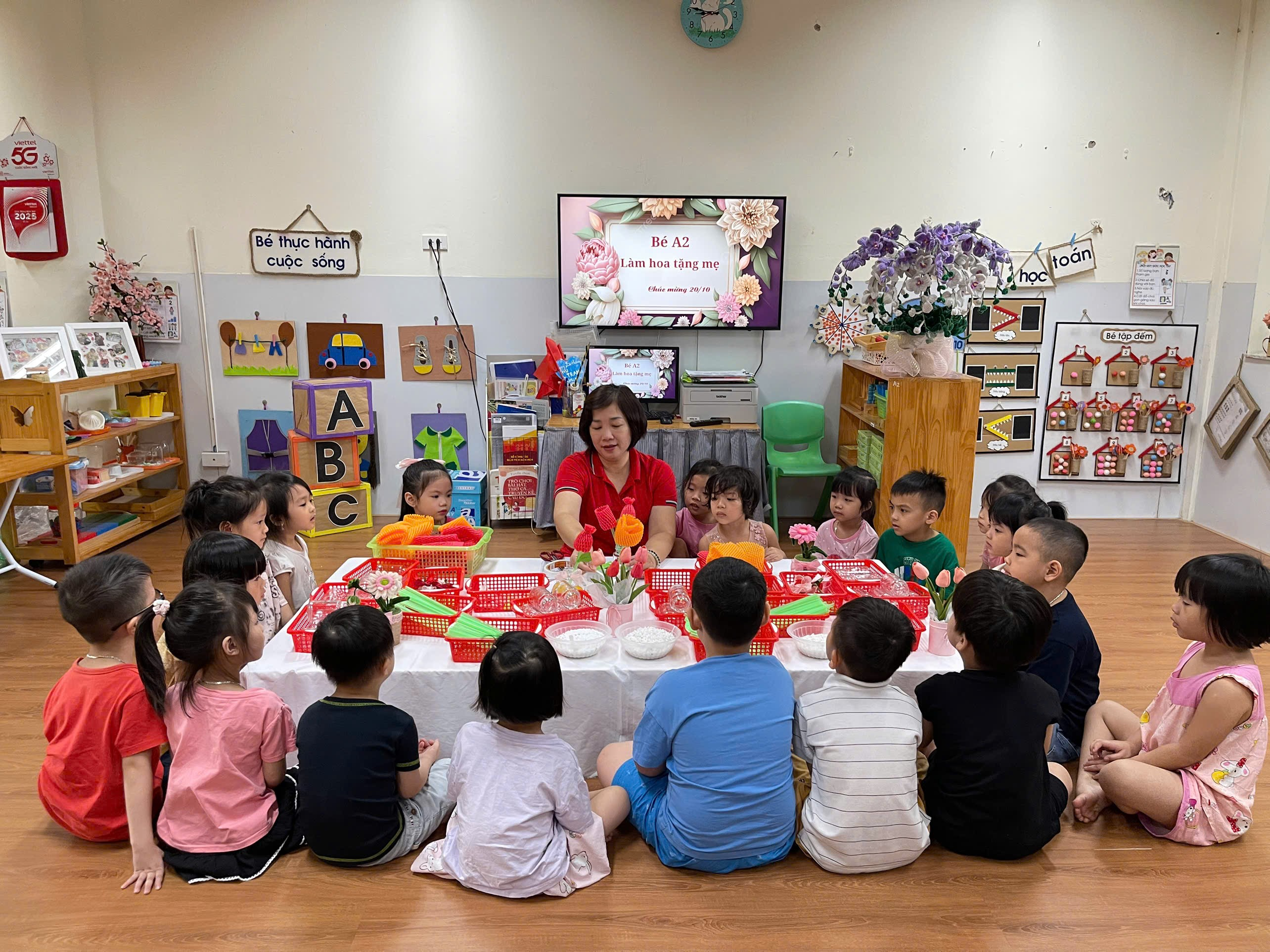 Hòa trong không khí rộn ràng của tháng 10 – tháng tôn vinh những người phụ nữ Việt Nam, các bạn nhỏ lớp Mẫu giáo lớn A2 đã có một buổi học thật đặc biệt: Làm hoa tặng mẹ yêu. 🌷