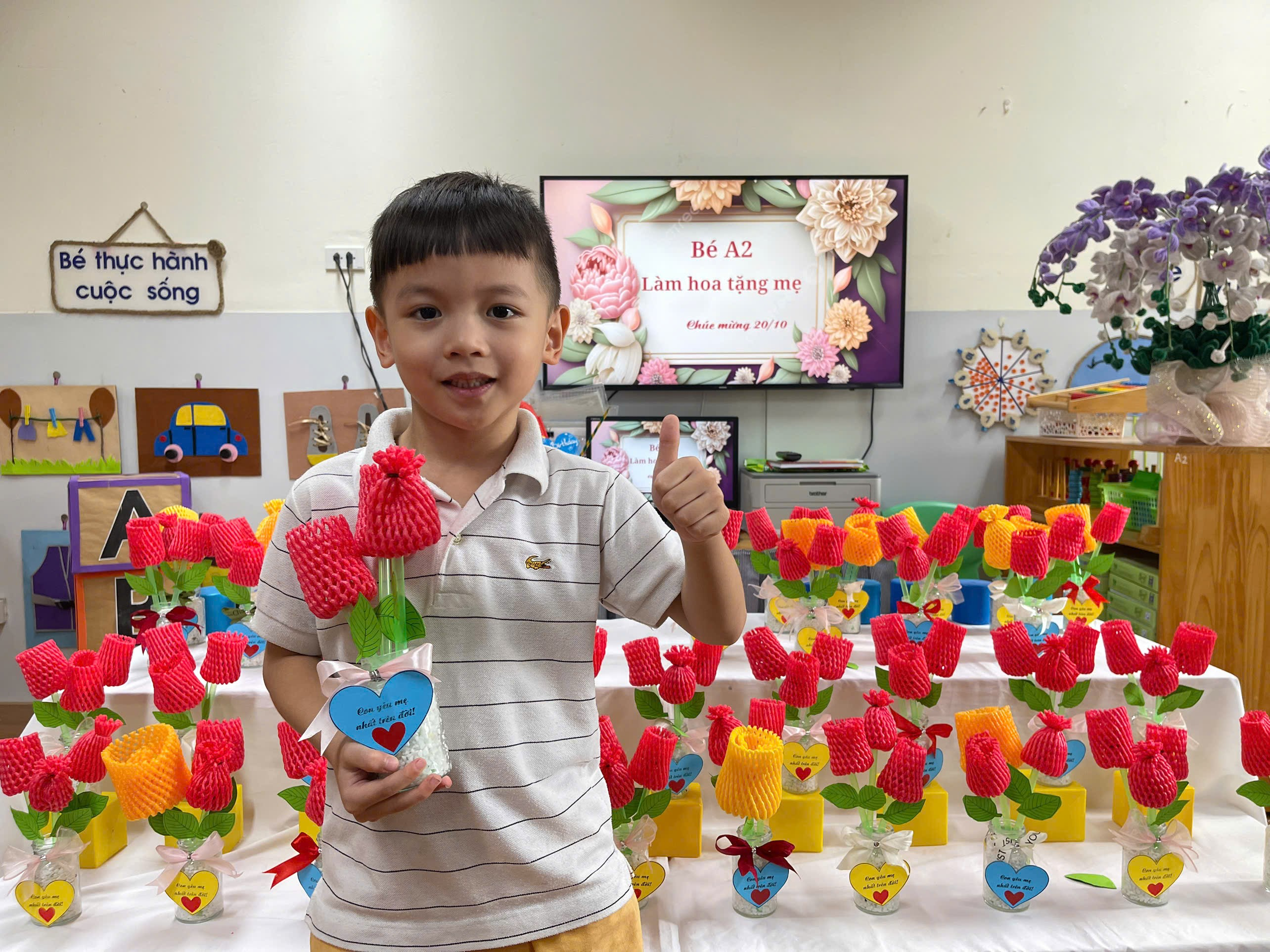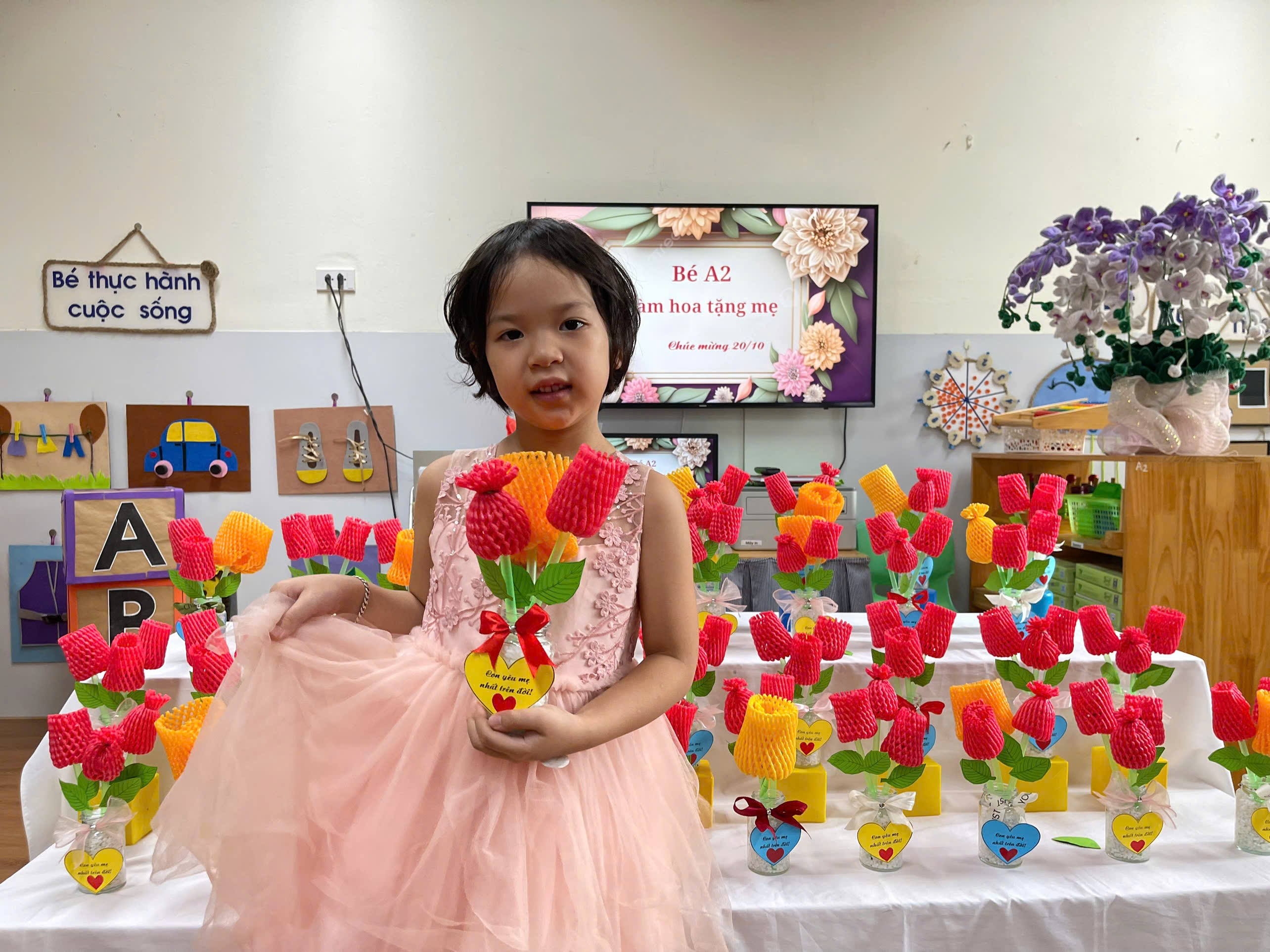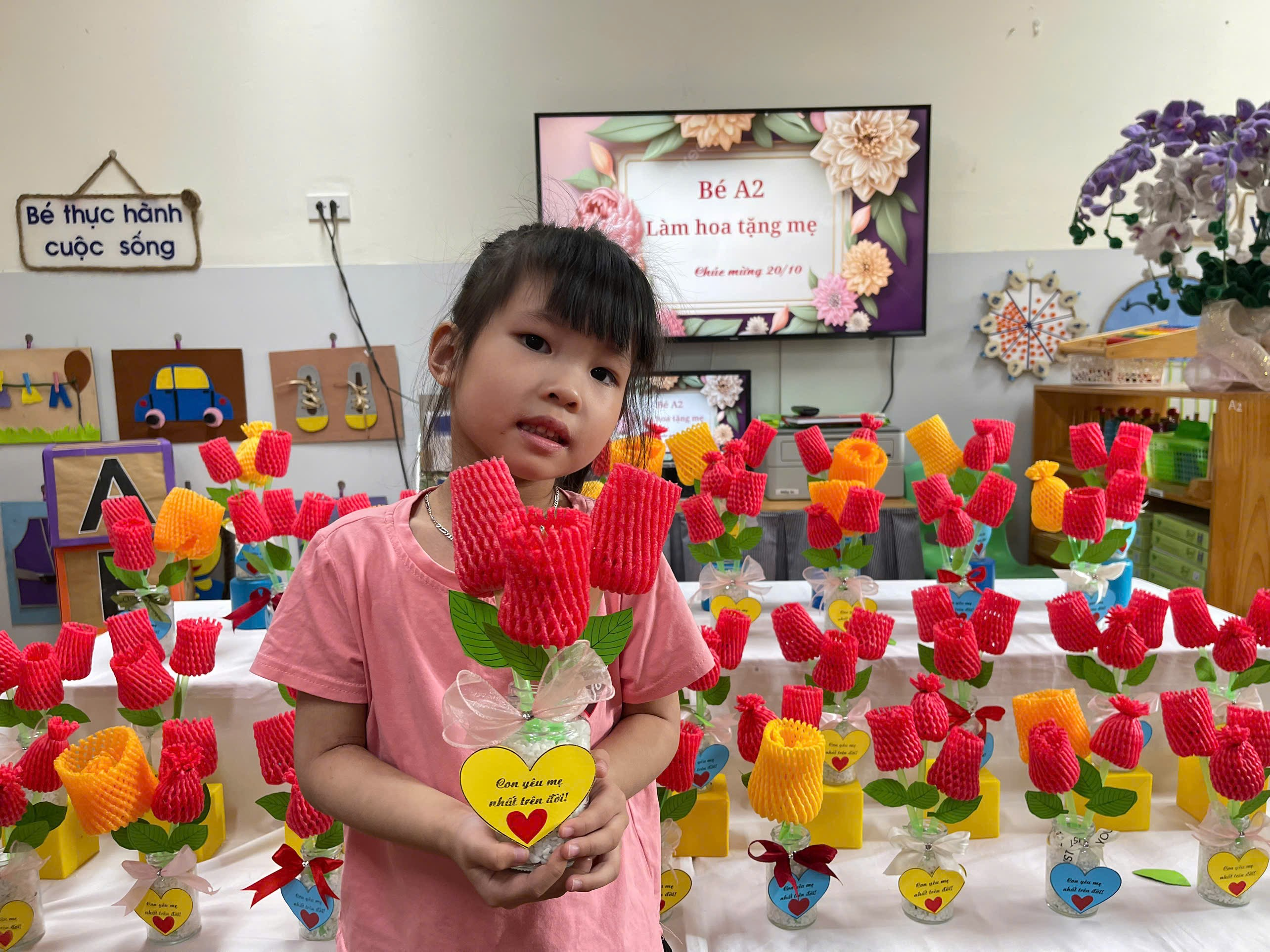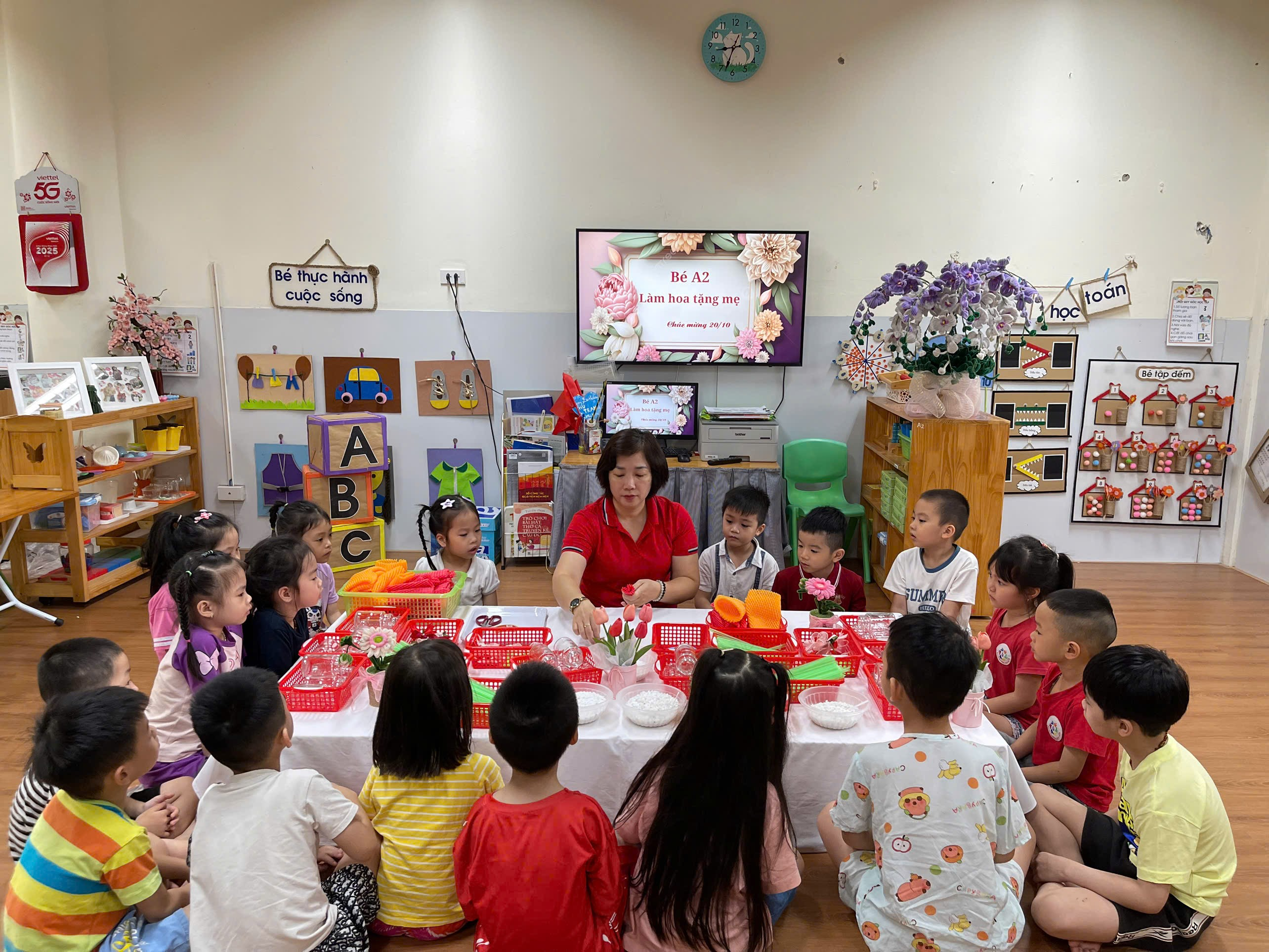 Hòa trong không khí rộn ràng của tháng 10 – tháng tôn vinh những người phụ nữ Việt Nam, các bạn nhỏ lớp Mẫu giáo lớn A2 đã có một buổi học thật đặc biệt: Làm hoa tặng mẹ yêu. 🌷