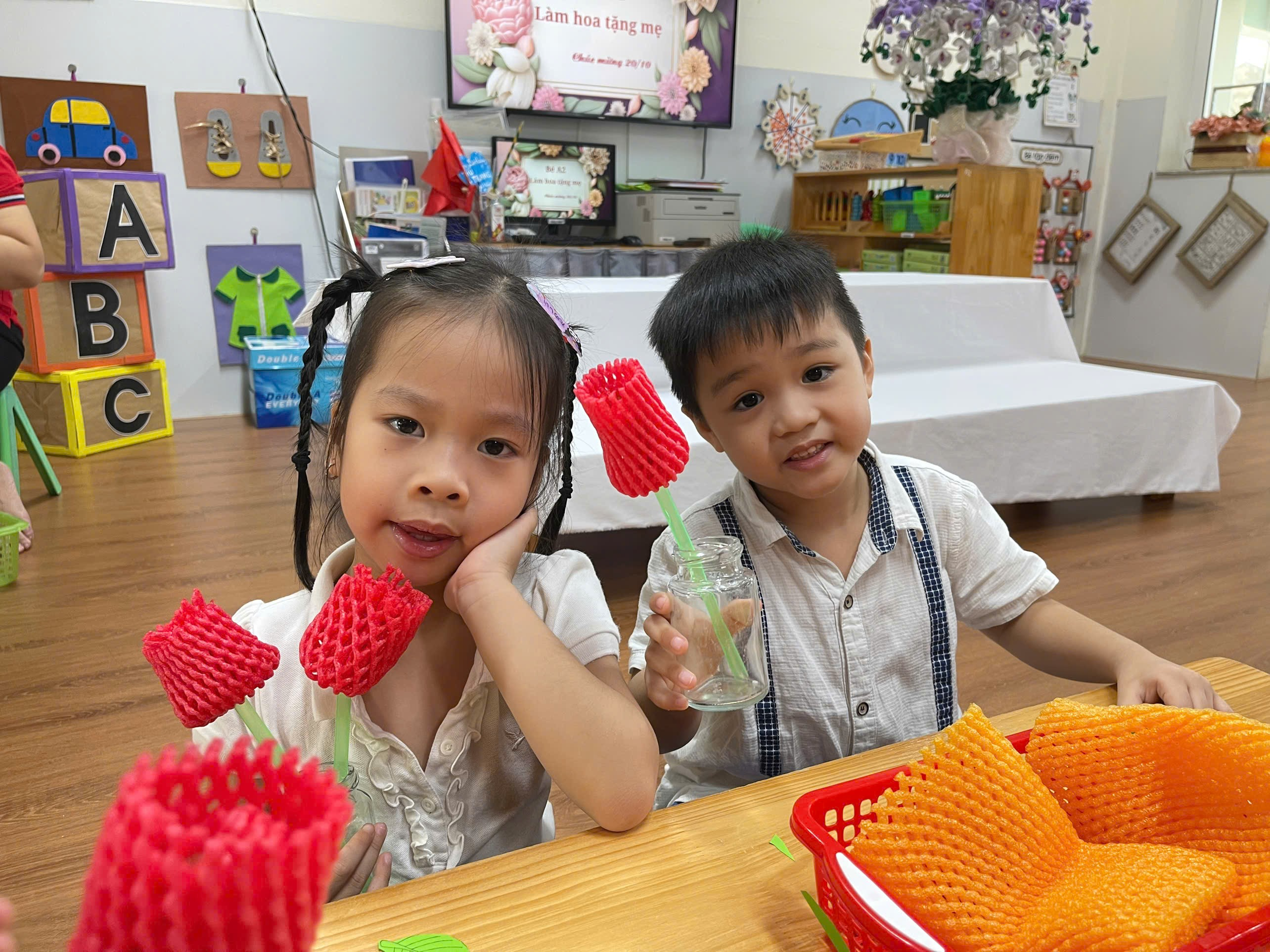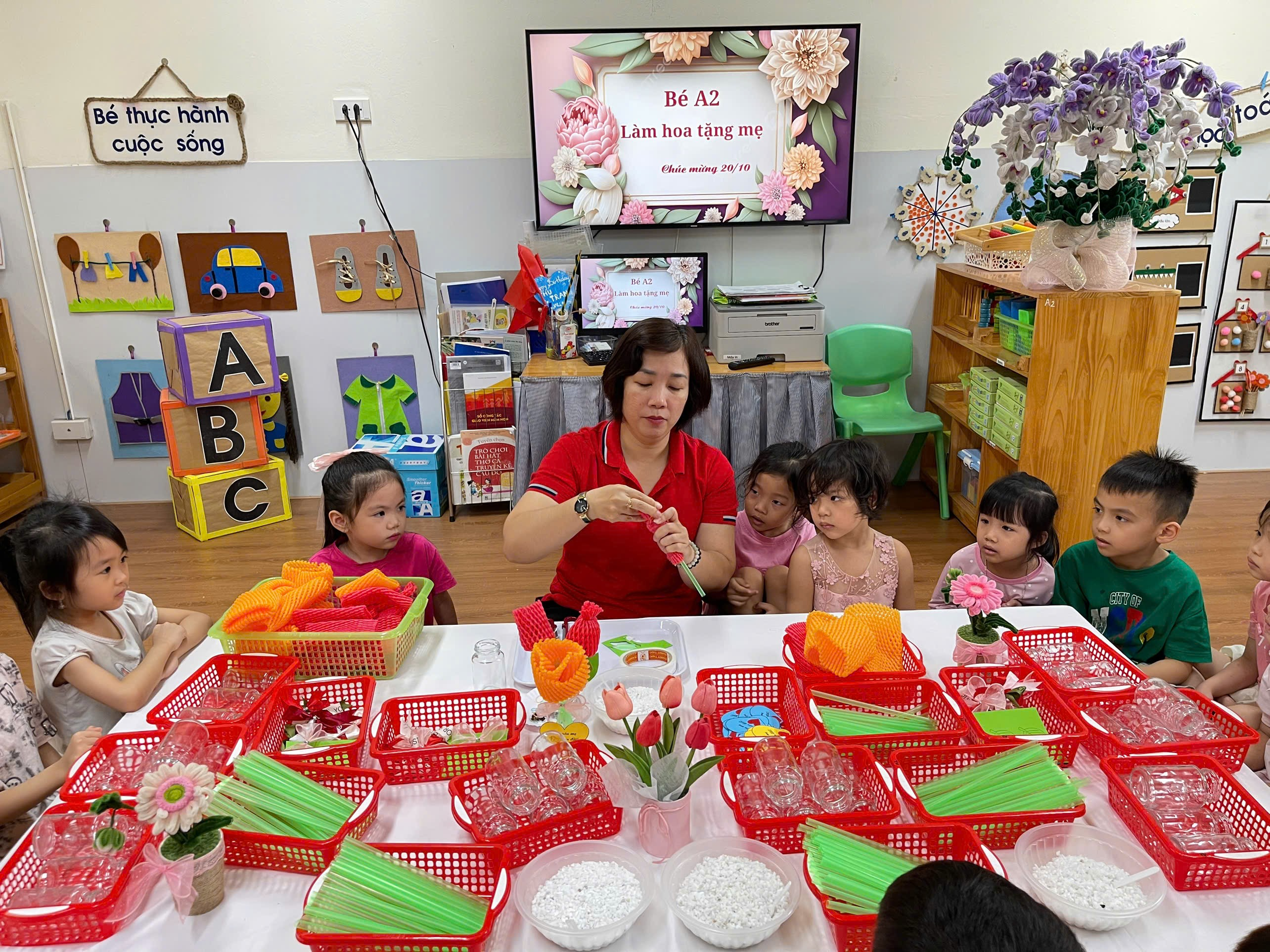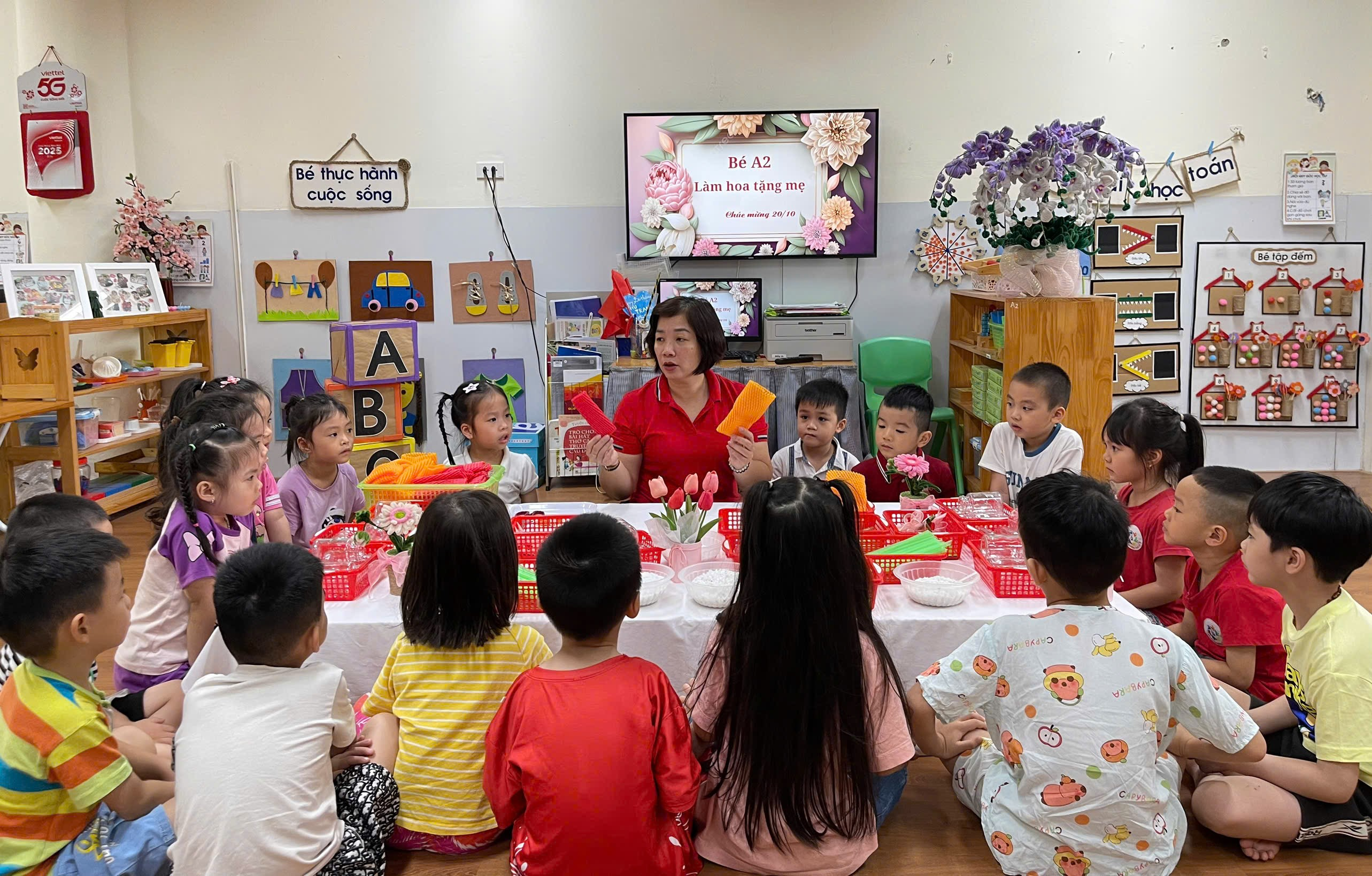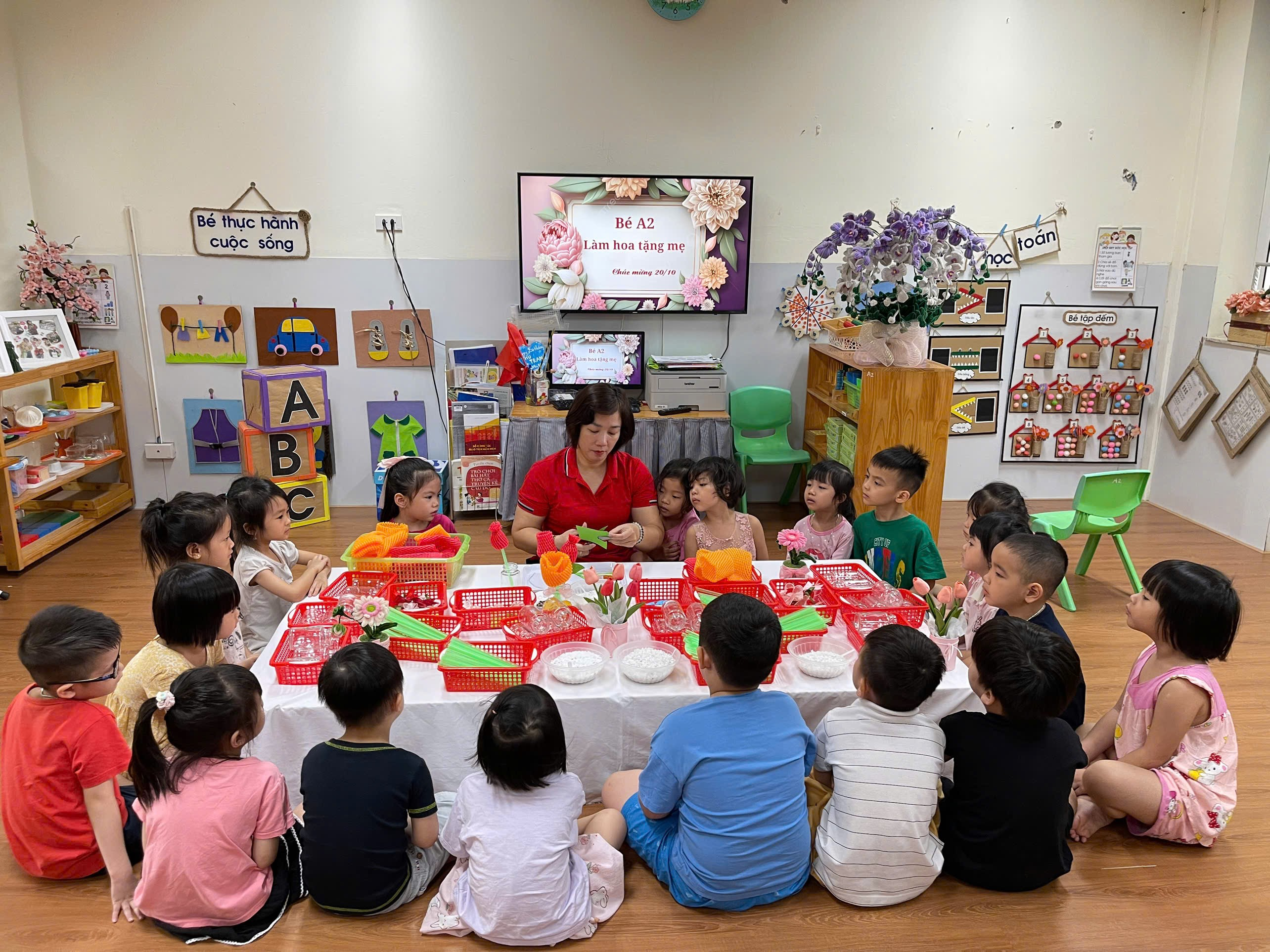 Hòa trong không khí rộn ràng của tháng 10 – tháng tôn vinh những người phụ nữ Việt Nam, các bạn nhỏ lớp Mẫu giáo lớn A2 đã có một buổi học thật đặc biệt: Làm hoa tặng mẹ yêu. 🌷