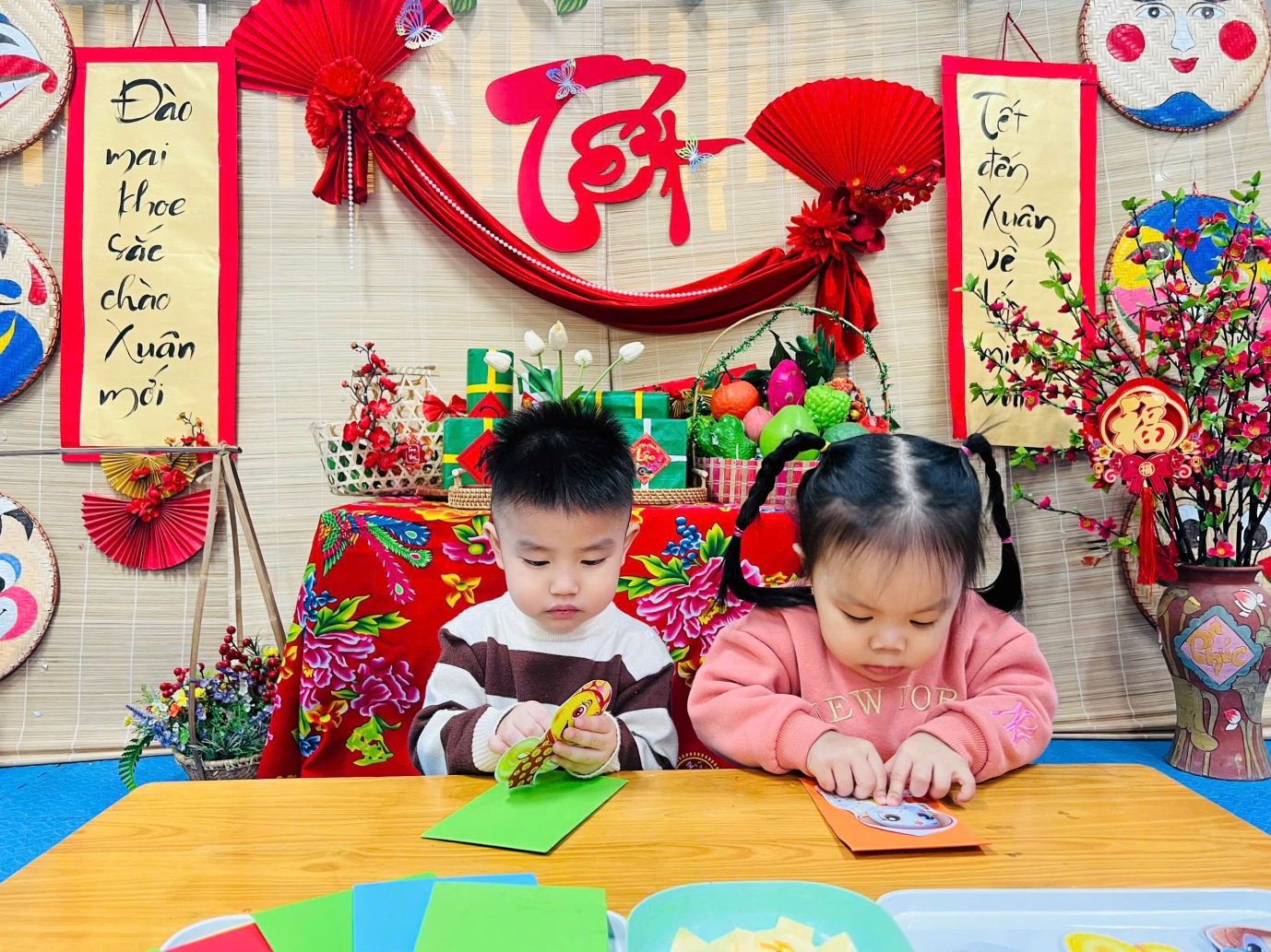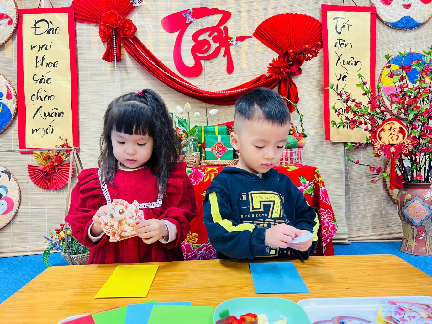 Vừa qua, các bạn nhỏ lớp MGB C2 đã rộn ràng hơn bao giờ hết khi cùng nhau tham gia hoạt động trang trí bao lì xì đón Tết. Với những tờ giấy màu, bang dính xốp, và những hình vẽ xinh xắn, các bé đã sáng tạo nên những chiếc bao lì xì đầy màu sắc và ý nghĩa.