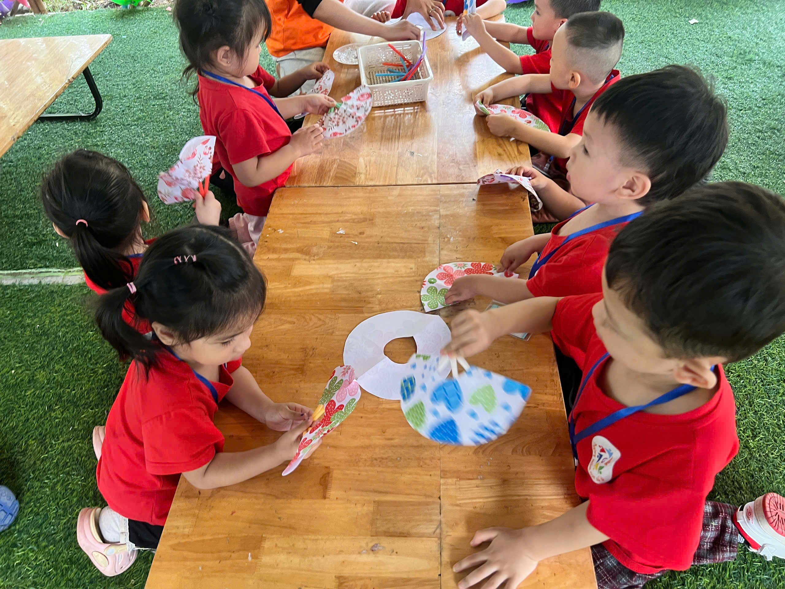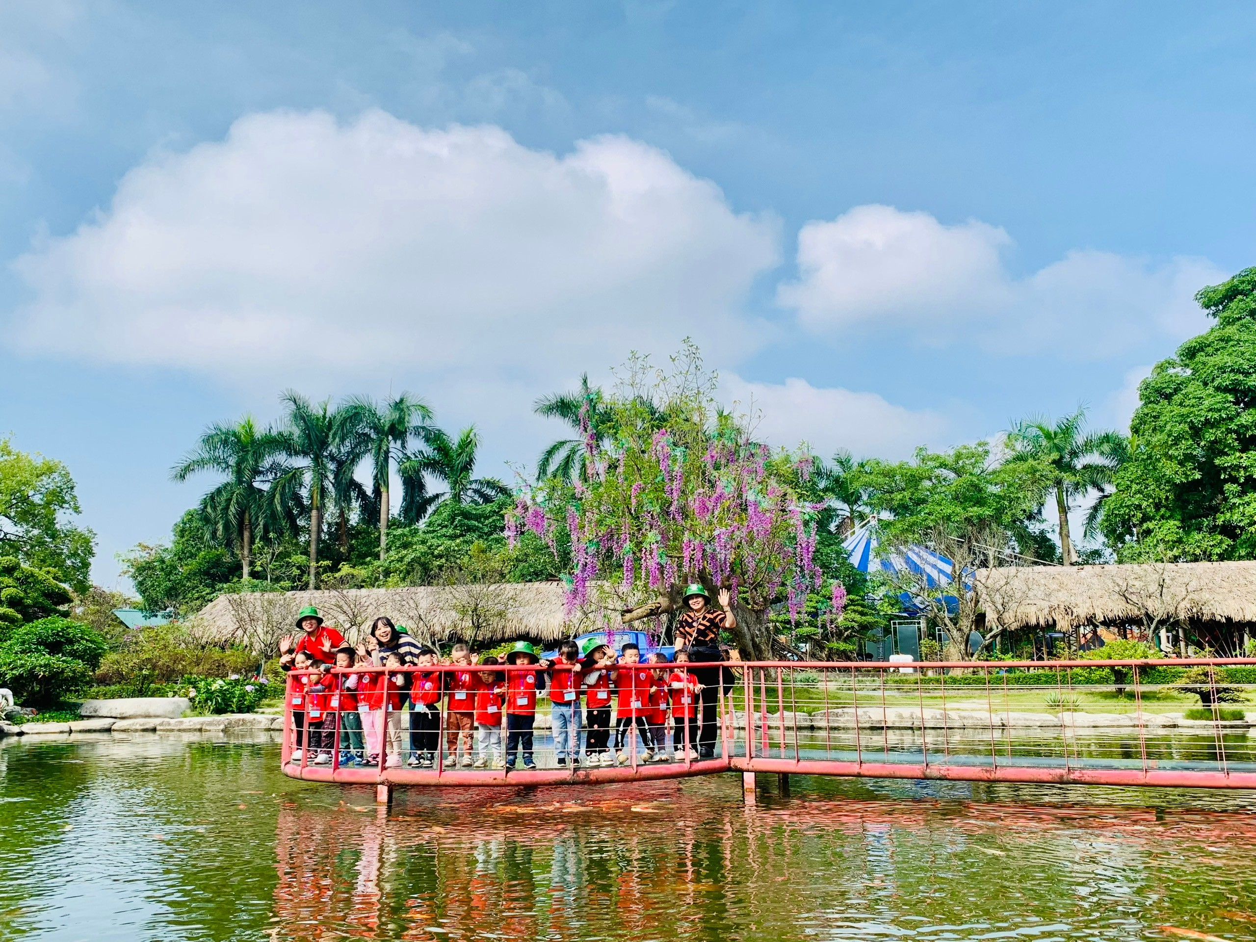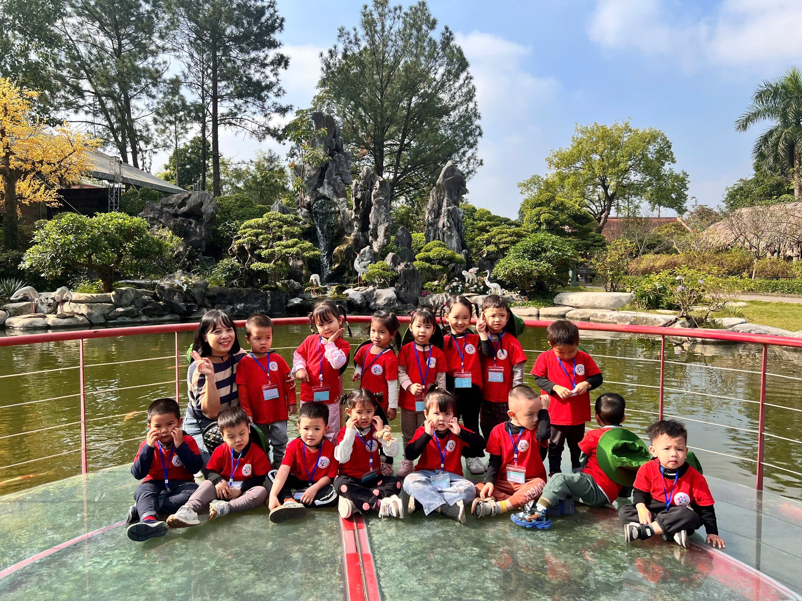 Một ngày đẹp trời, các bé lớp C2 háo hức khoác lên mình chiếc áo đồng phục đỏ rực rỡ, cùng cô giáo tham gia chuyến tham quan dã ngoại tại Resort Hoàng Long – Thạch Thất, Hà Nội.Tại đây, các con được ngắm nhìn khung cảnh thiên nhiên tươi đẹp với những hàng cây xanh mát, hồ nước trong veo và những chú cá tung tăng bơi lội, rồi bé lại cùng cô và các bạn cho cá ăn, tham gia trò chơi vận động ngoài trời, hoạt động trải nghiệm làm thuyền bằng tre, làm quạt giấy vô cùng thú vị. Bé được tập kỹ năng xếp hàng, giữ trật tự, đoàn kết, giúp đỡ nhau trong suốt chuyến đi.