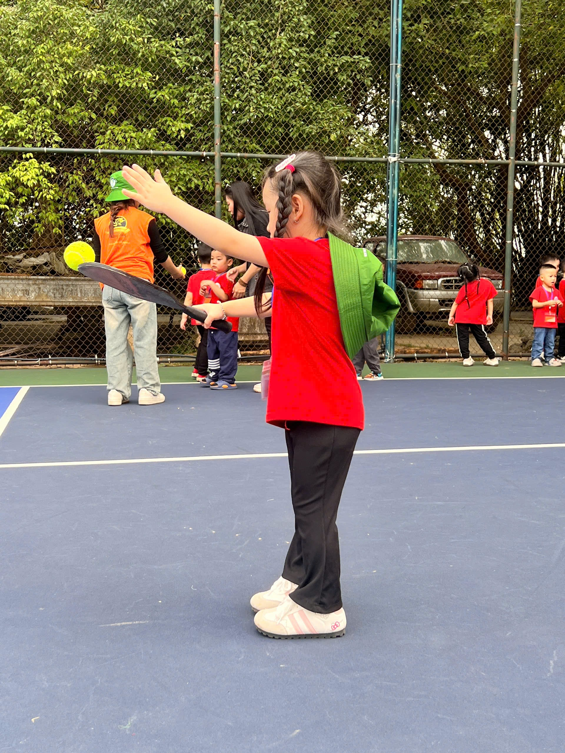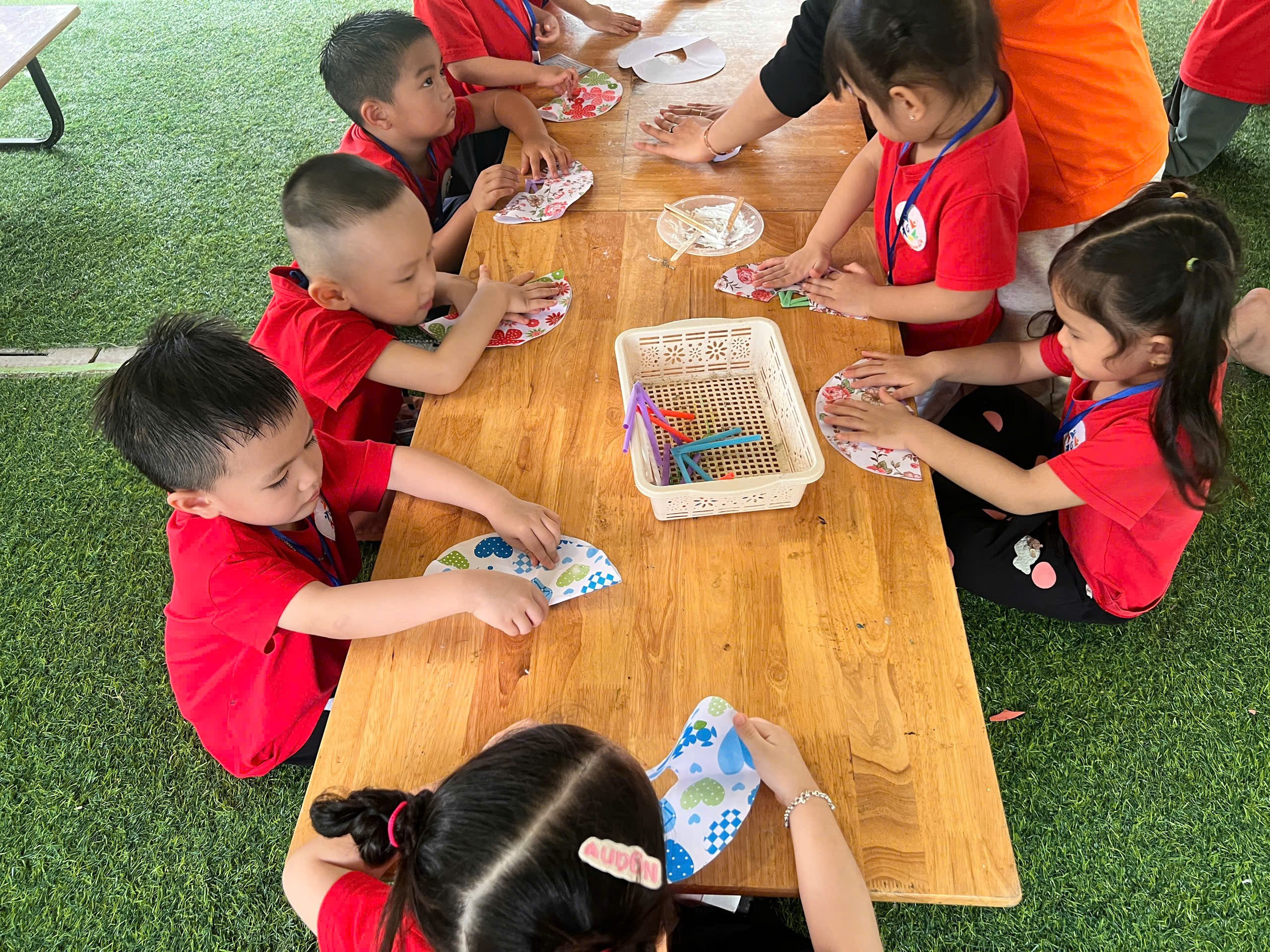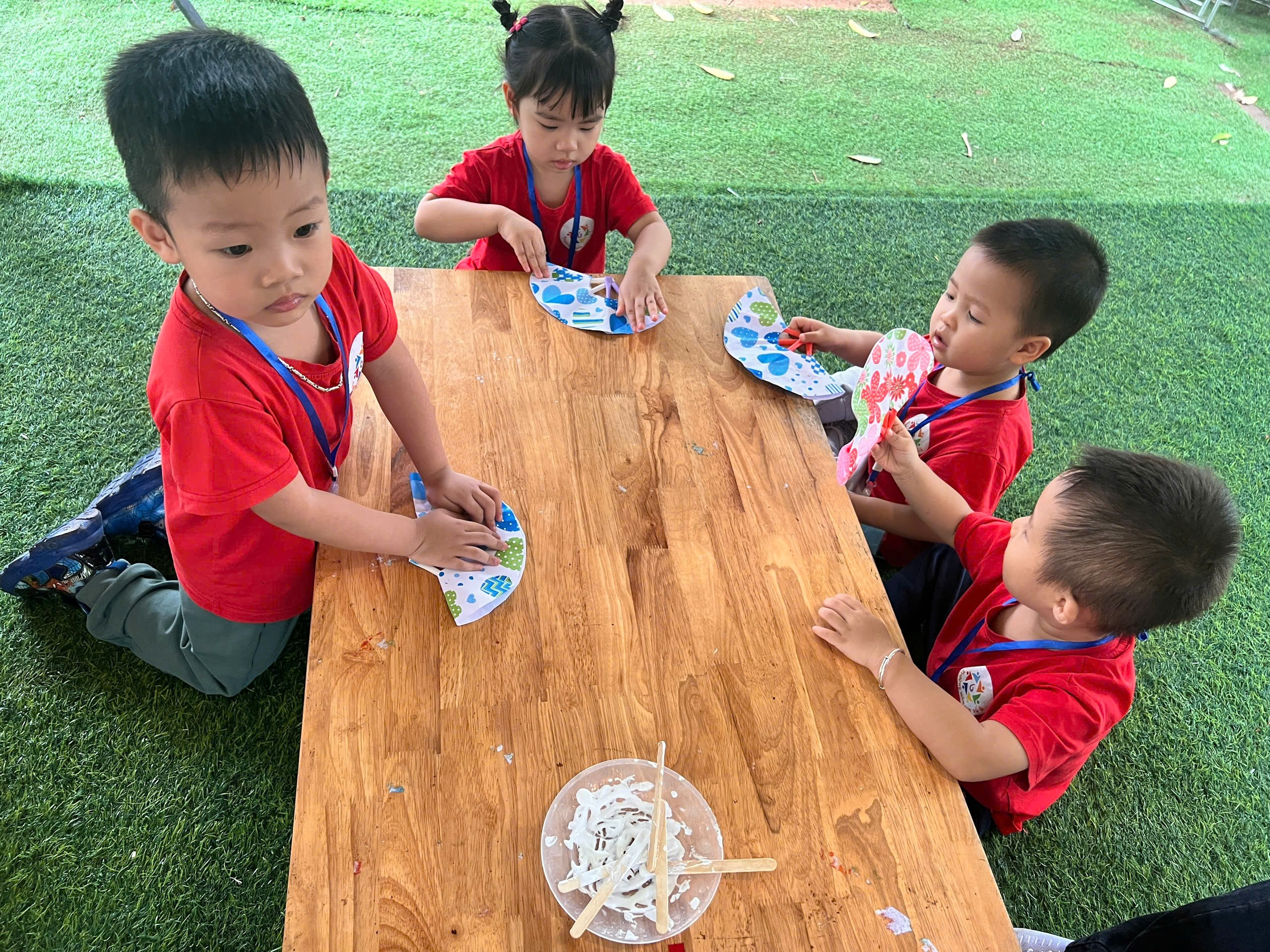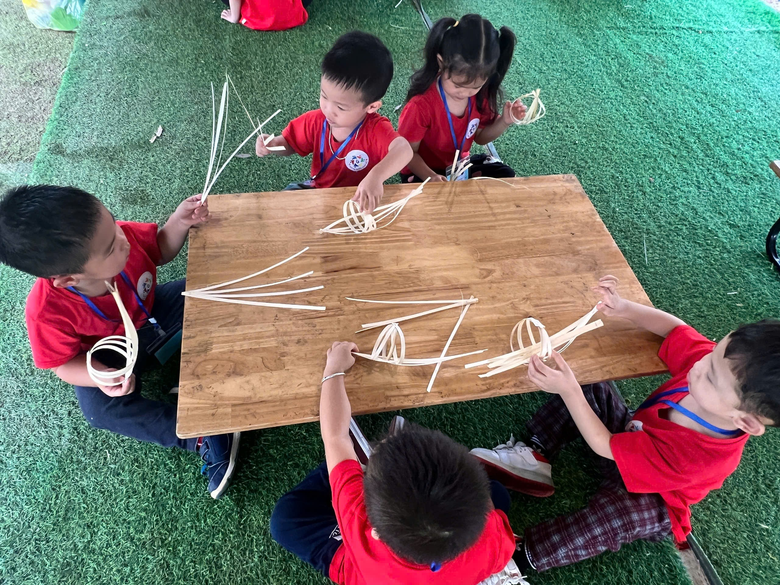 Một ngày đẹp trời, các bé lớp C2 háo hức khoác lên mình chiếc áo đồng phục đỏ rực rỡ, cùng cô giáo tham gia chuyến tham quan dã ngoại tại Resort Hoàng Long – Thạch Thất, Hà Nội.Tại đây, các con được ngắm nhìn khung cảnh thiên nhiên tươi đẹp với những hàng cây xanh mát, hồ nước trong veo và những chú cá tung tăng bơi lội, rồi bé lại cùng cô và các bạn cho cá ăn, tham gia trò chơi vận động ngoài trời, hoạt động trải nghiệm làm thuyền bằng tre, làm quạt giấy vô cùng thú vị. Bé được tập kỹ năng xếp hàng, giữ trật tự, đoàn kết, giúp đỡ nhau trong suốt chuyến đi.