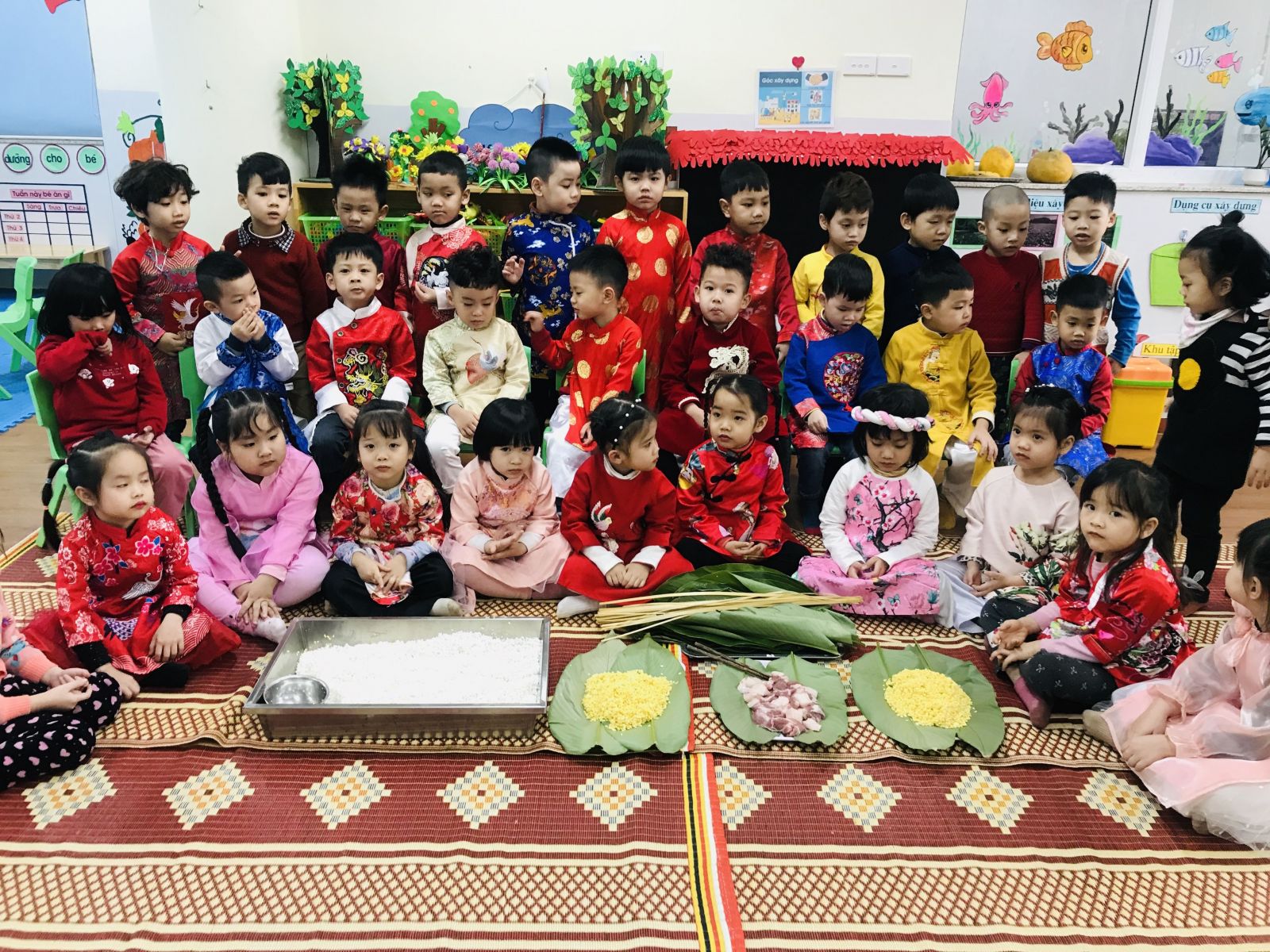 Hôm nay, 29/01/2021, cô và các bé trường mầm non Số 6 đã tổ chức hoạt động trải nghiệm " Lễ hội gói bánh chưng”. Cô và trò cùng tất bật cho công tác chuẩn bị: những chiếc lá dong được rửa sạch sẽ, lau khô, khuôn gói bánh, những nguyên liệu cần thiết gồm: Gạo nếp, lá dong, đỗ xanh và thịt lợn đã sẵn sàng trong sự hứng khởi của các bé.