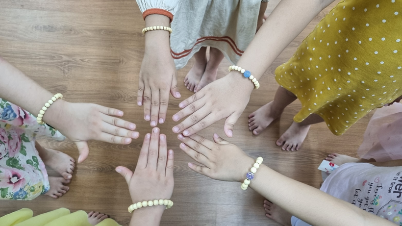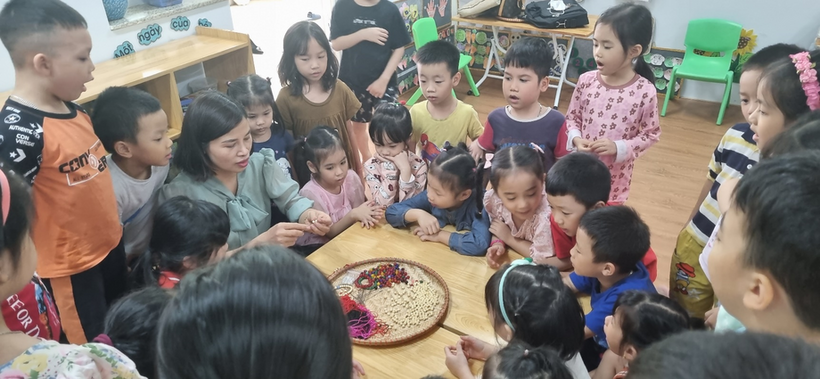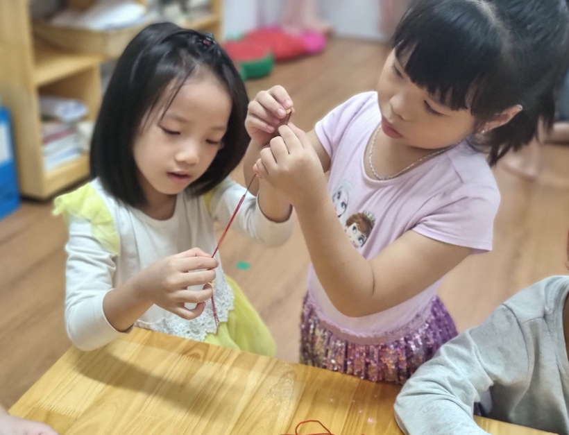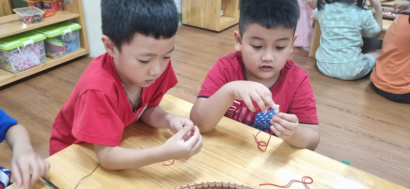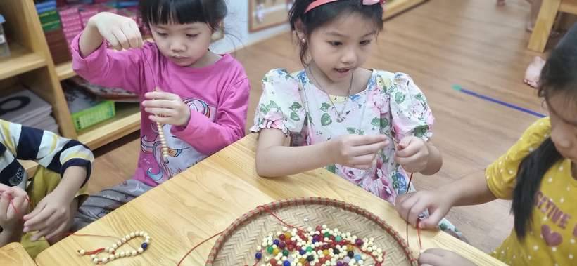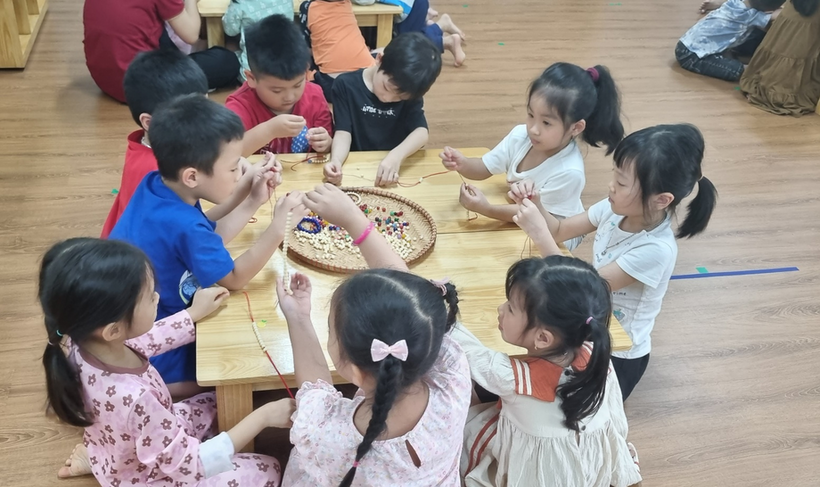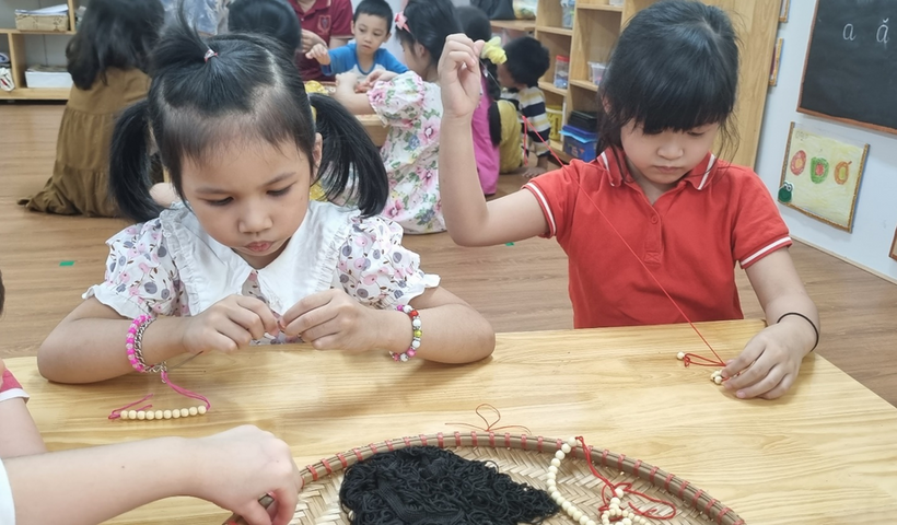 Các bé hào hứng xâu vòng làm quà tặng mẹ