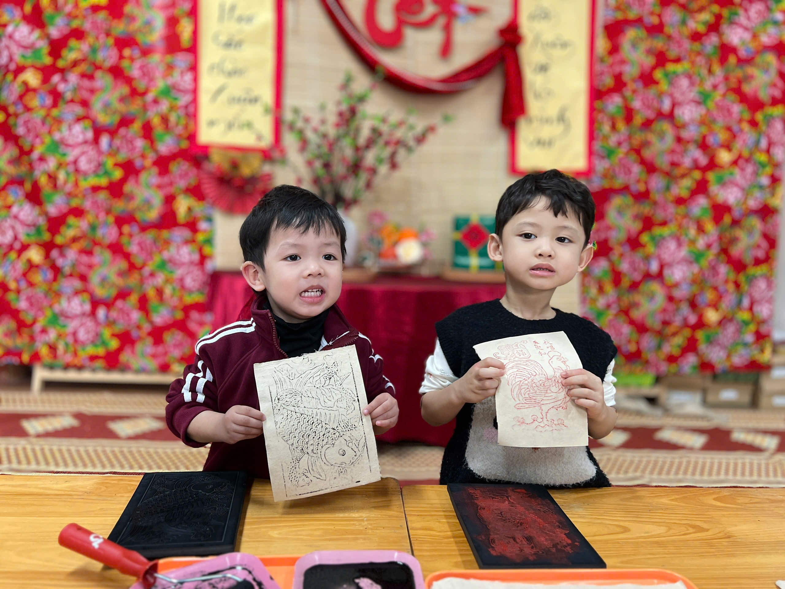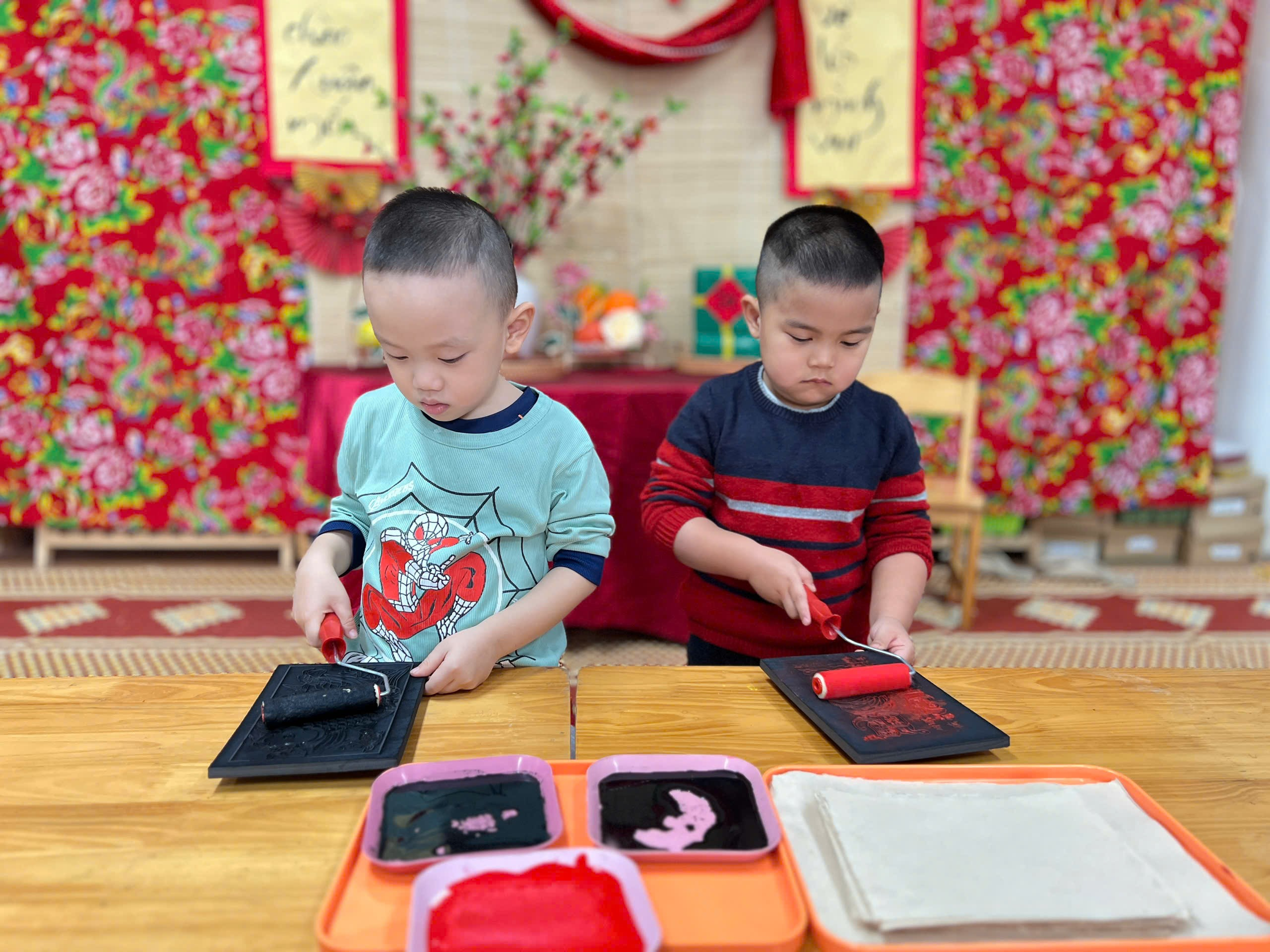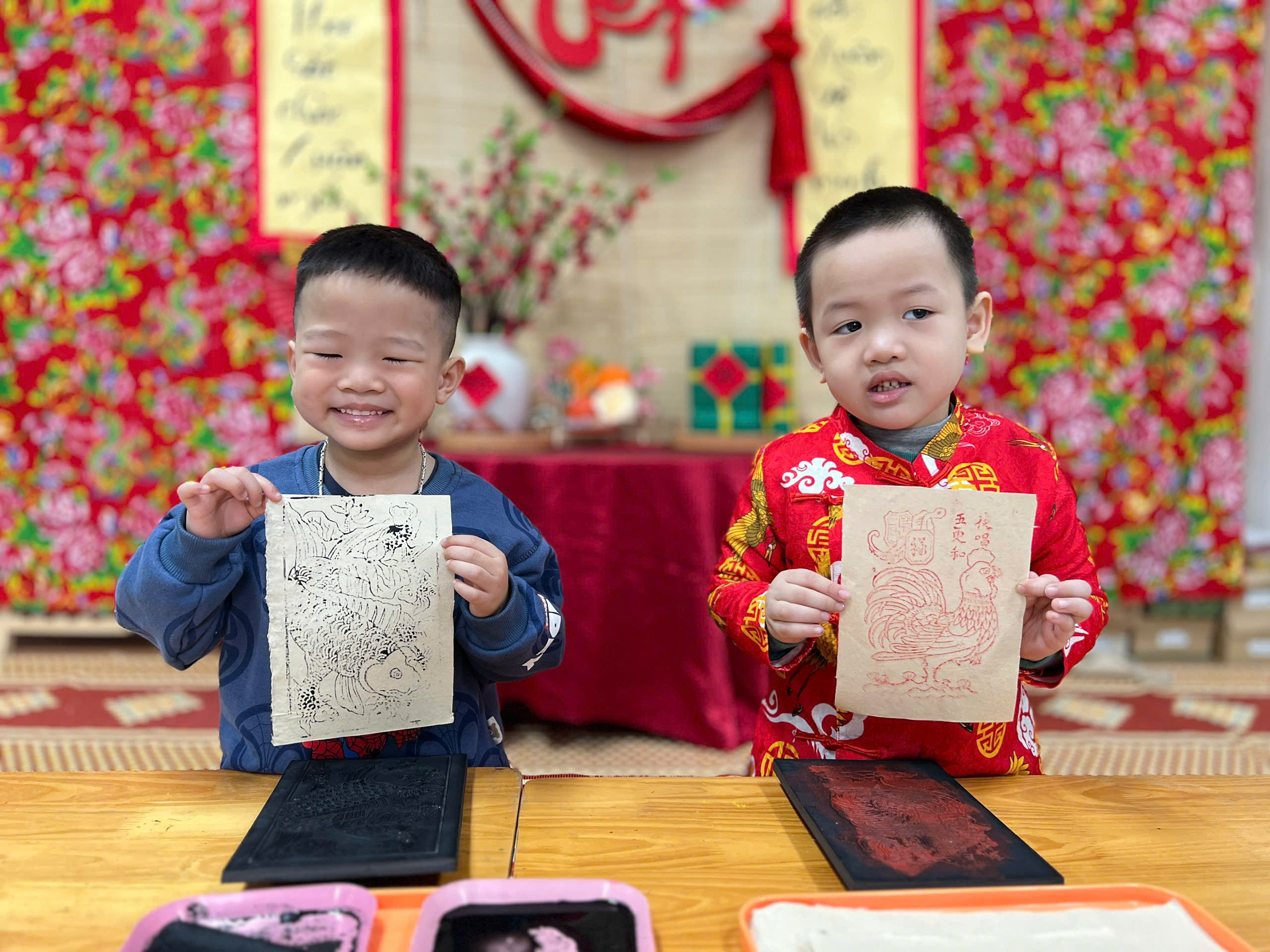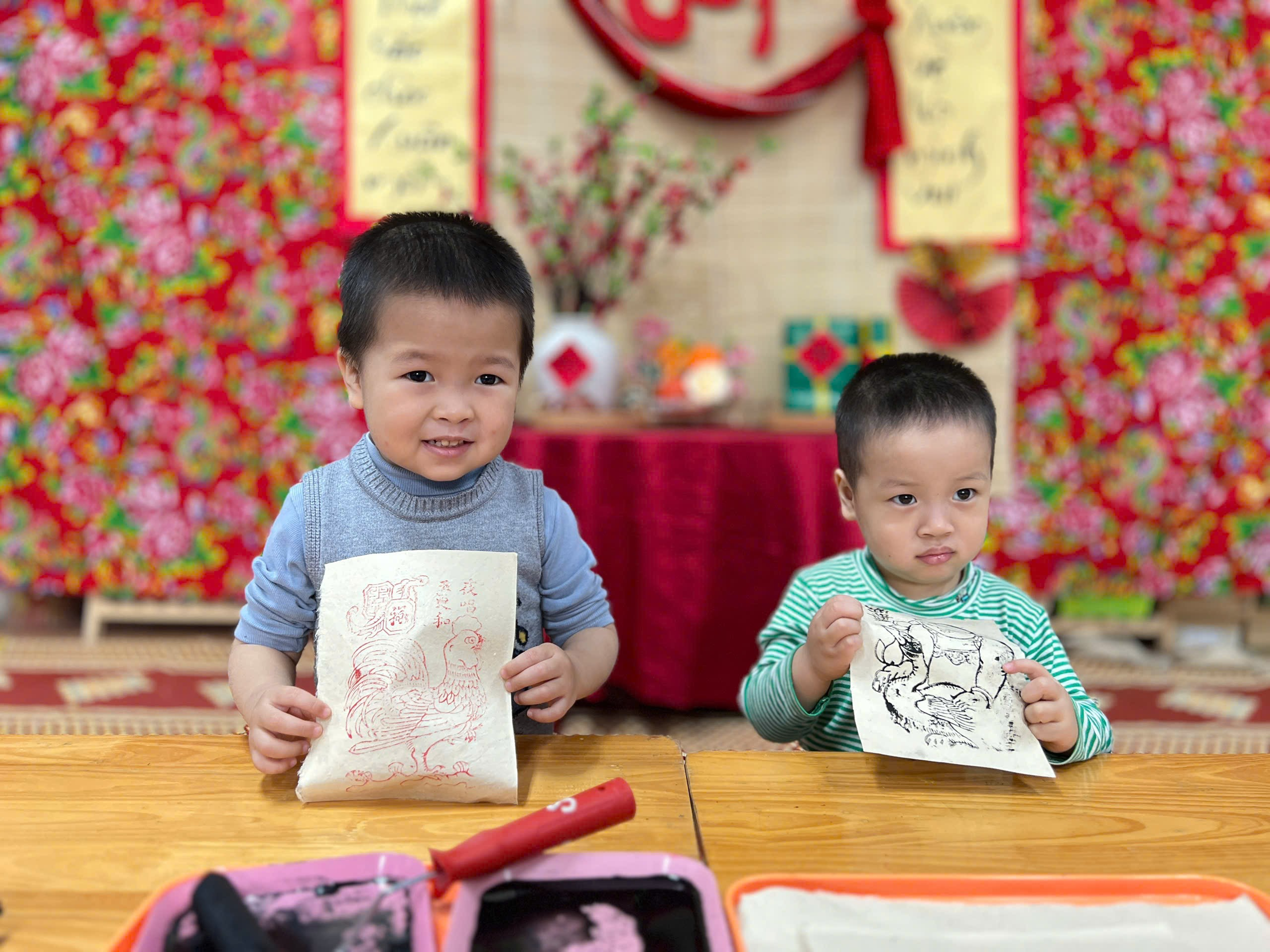 Dưới sự hướng dẫn của cô, các con tự tay lăn mực – đặt giấy – in tranh, hồi hộp chờ đợi và vỡ òa niềm vui khi tác phẩm của mình hiện lên rõ nét. Thông qua hoạt động, trẻ: Rèn luyện sự khéo léo của đôi tay, khả năng phối hợp tay – mắt, Phát triển tính kiên nhẫn, tập trung và sự tự tin, biết trân trọng và gìn giữ nét đẹp văn hóa truyền thống, có thêm niềm vui, hứng thú trong các hoạt động trải nghiệm
