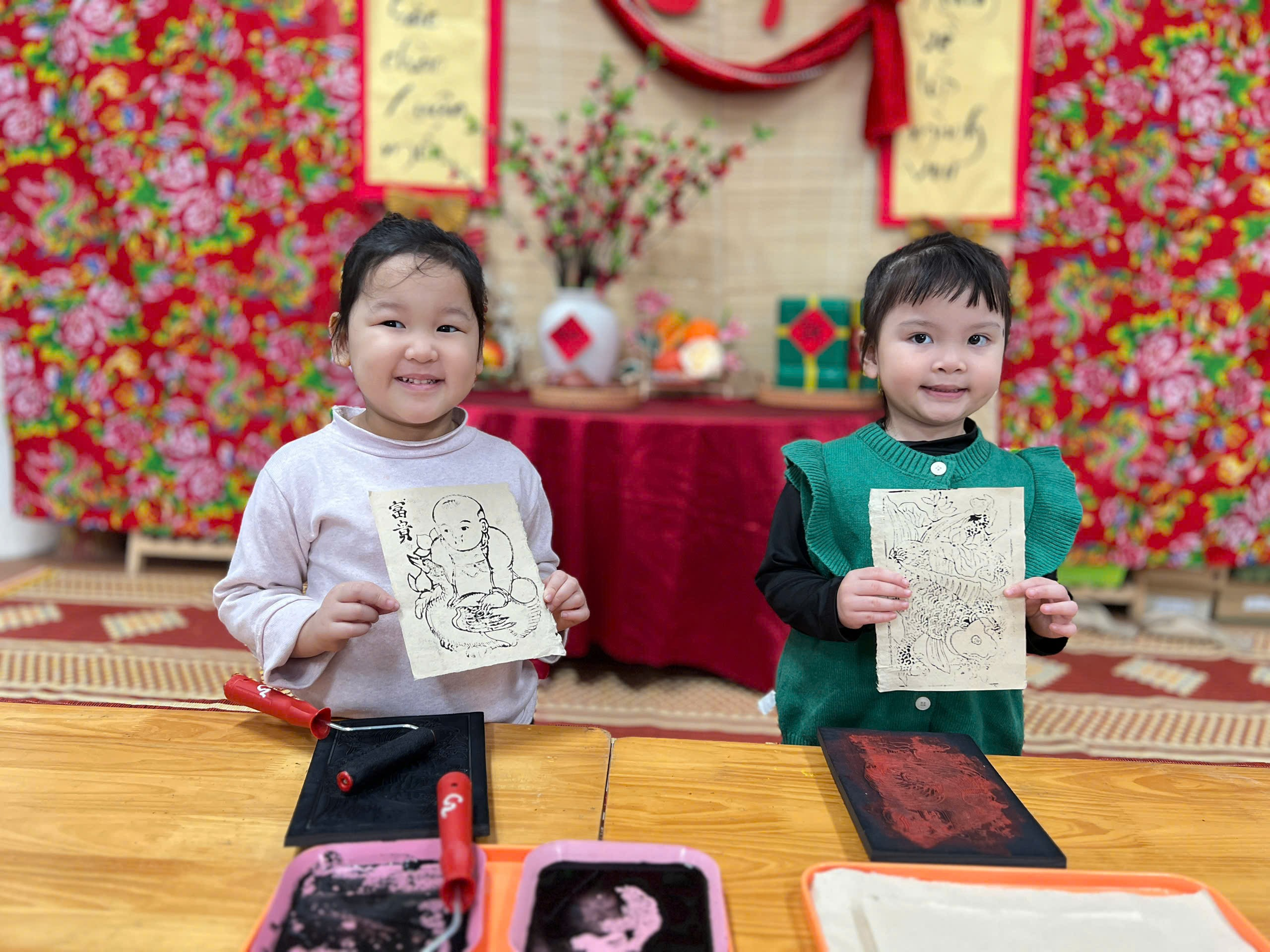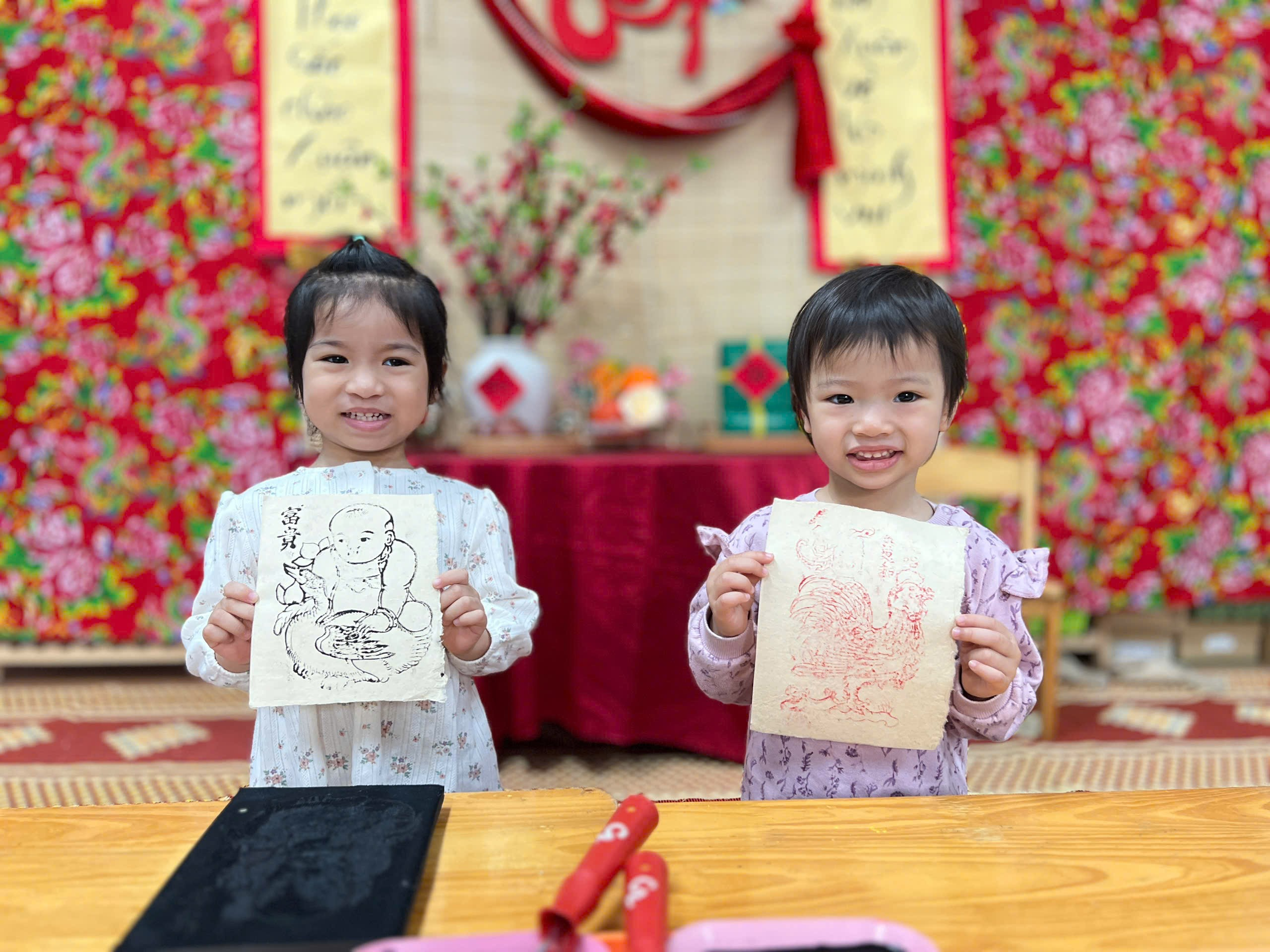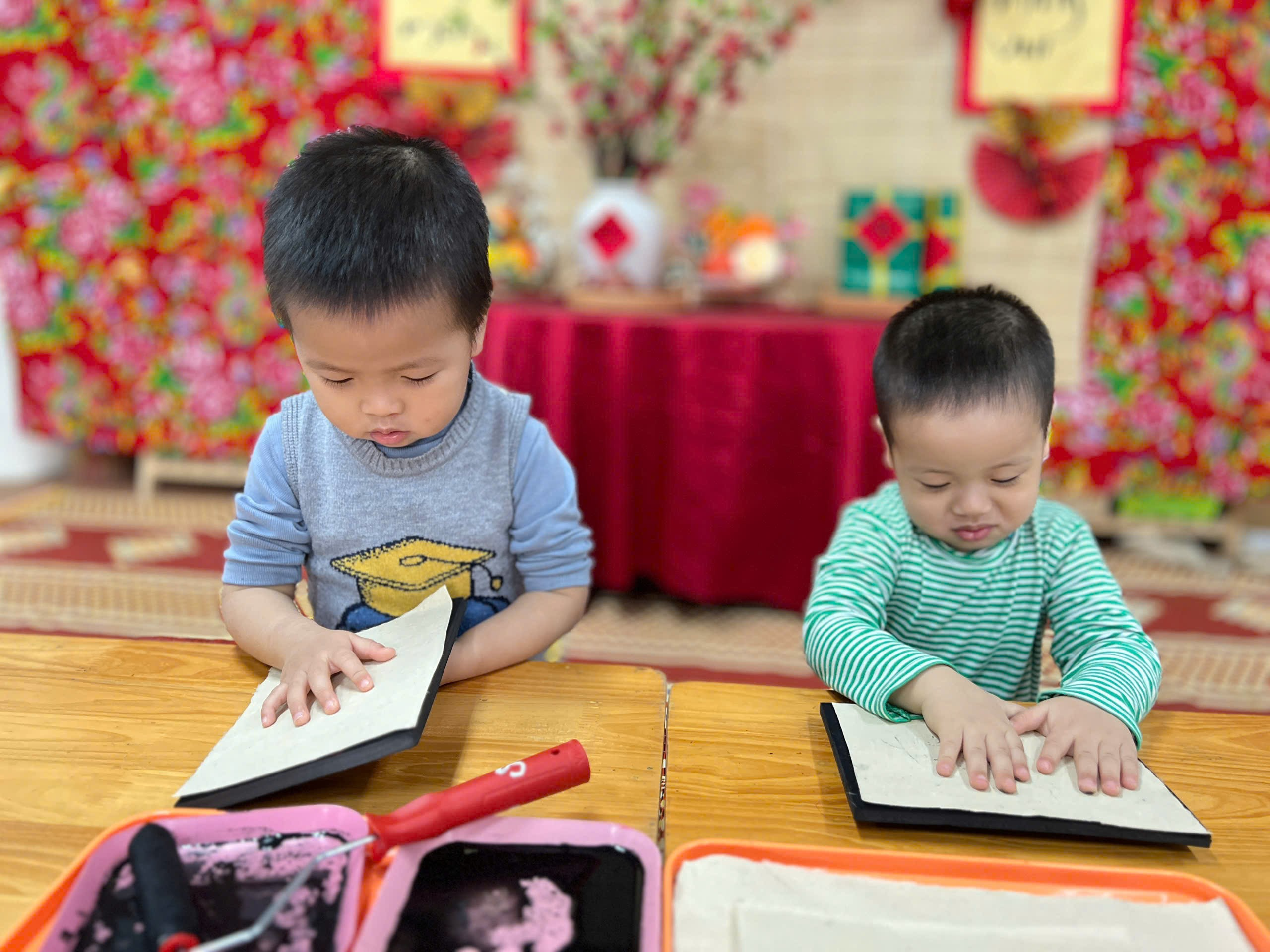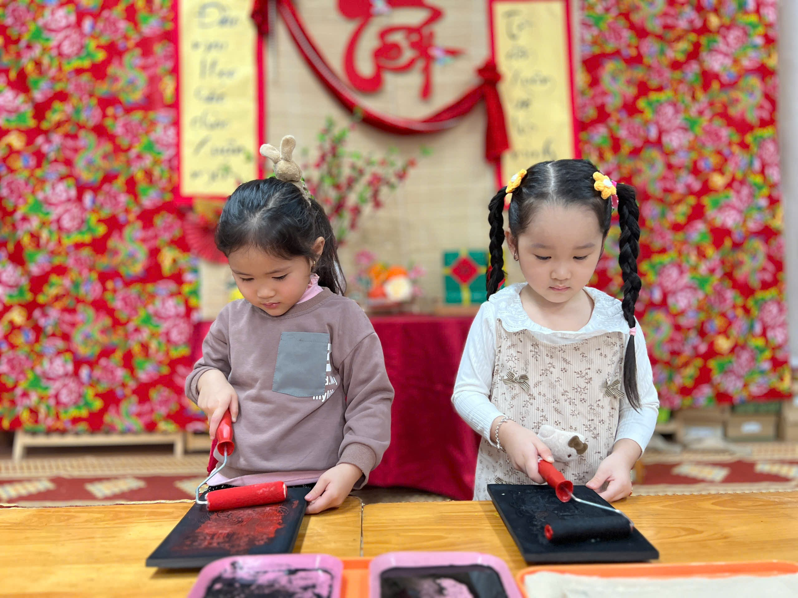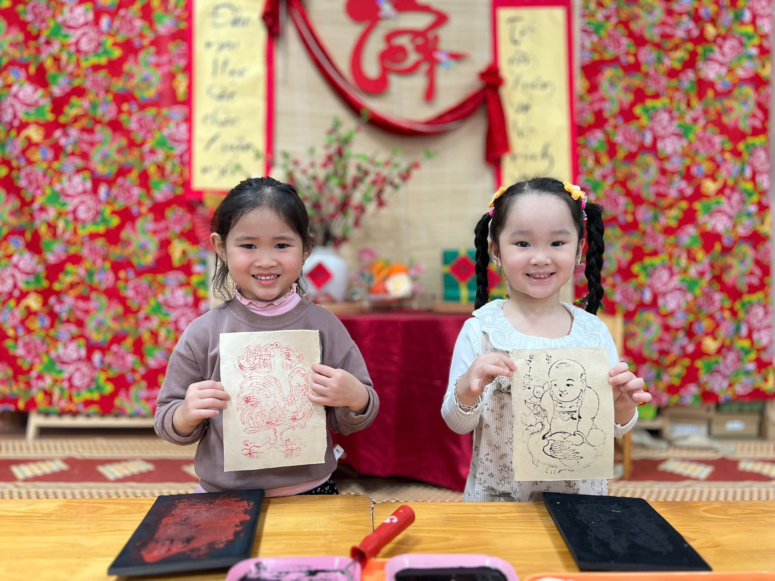 Dưới sự hướng dẫn của cô, các con tự tay lăn mực – đặt giấy – in tranh, hồi hộp chờ đợi và vỡ òa niềm vui khi tác phẩm của mình hiện lên rõ nét. Thông qua hoạt động, trẻ: Rèn luyện sự khéo léo của đôi tay, khả năng phối hợp tay – mắt, Phát triển tính kiên nhẫn, tập trung và sự tự tin, biết trân trọng và gìn giữ nét đẹp văn hóa truyền thống, có thêm niềm vui, hứng thú trong các hoạt động trải nghiệm