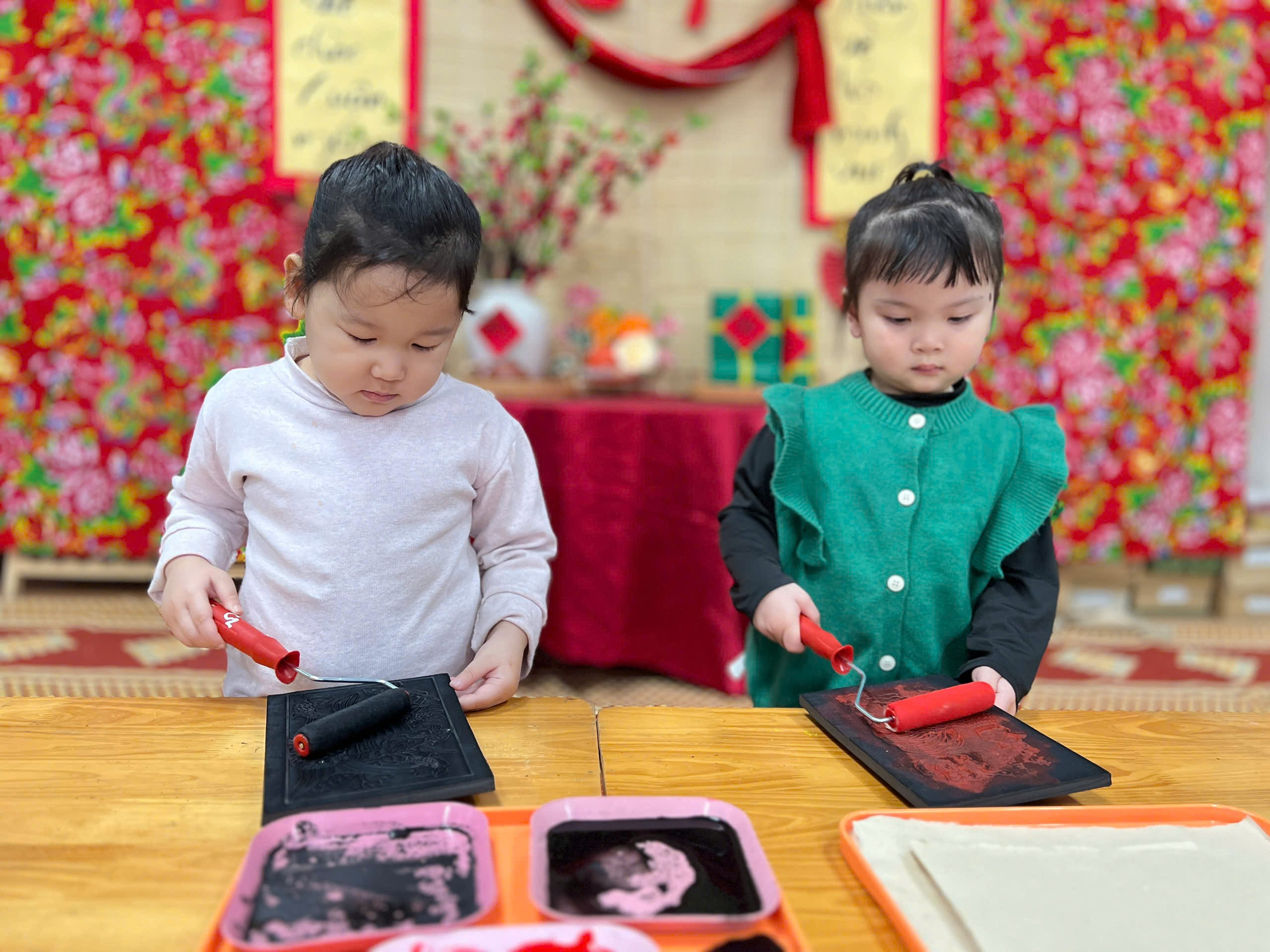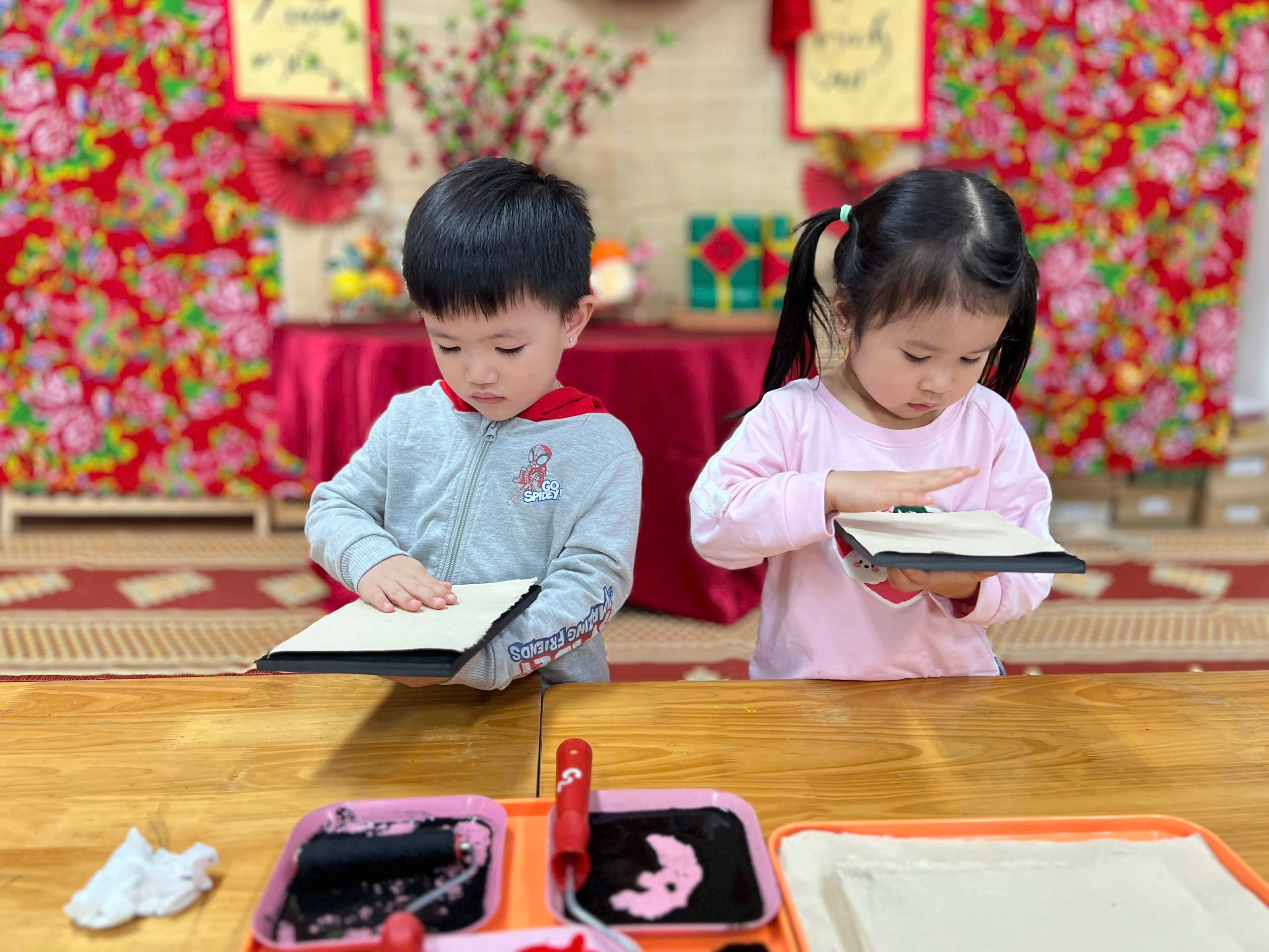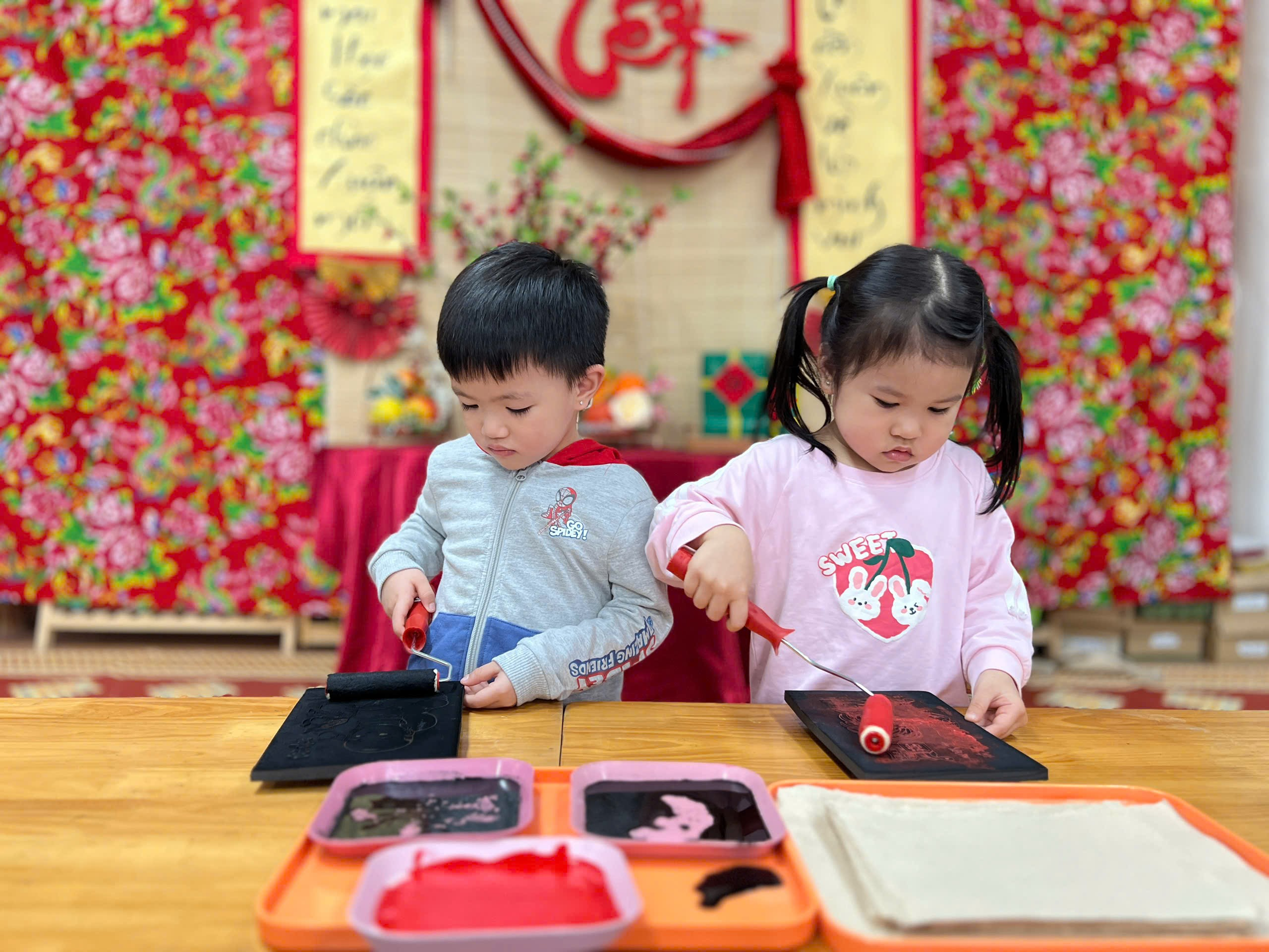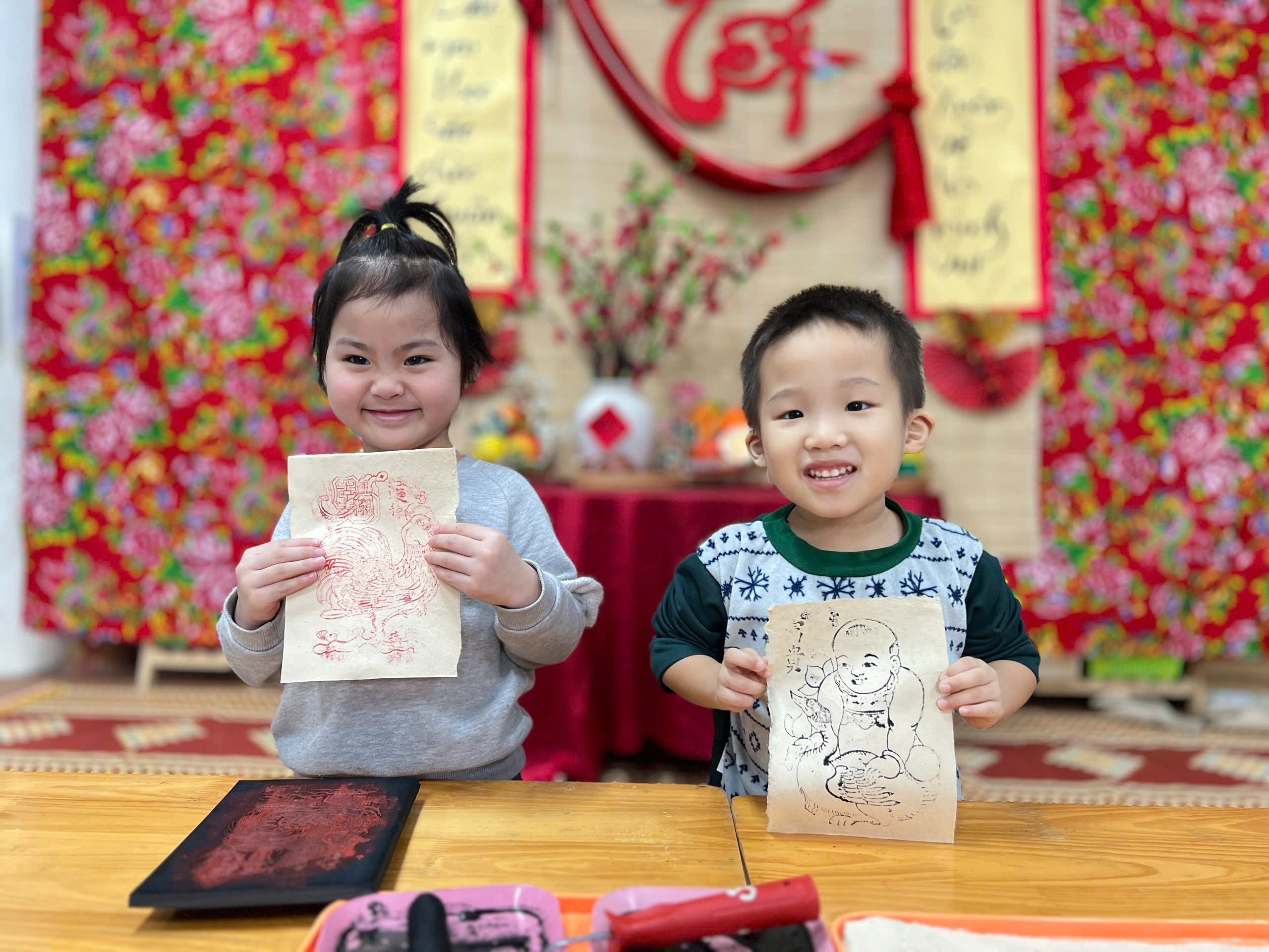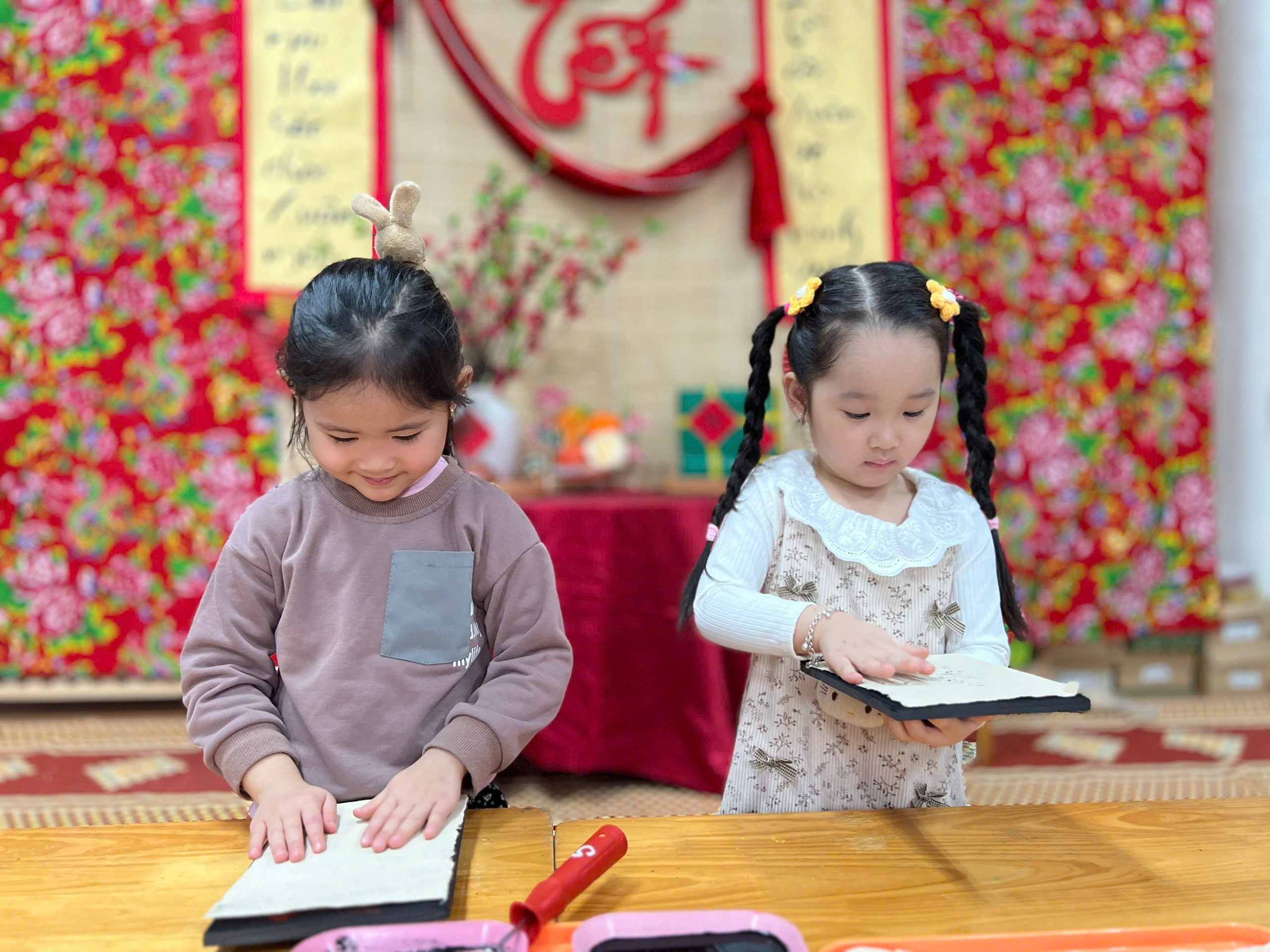 Dưới sự hướng dẫn của cô, các con tự tay lăn mực – đặt giấy – in tranh, hồi hộp chờ đợi và vỡ òa niềm vui khi tác phẩm của mình hiện lên rõ nét. Thông qua hoạt động, trẻ: Rèn luyện sự khéo léo của đôi tay, khả năng phối hợp tay – mắt, Phát triển tính kiên nhẫn, tập trung và sự tự tin, biết trân trọng và gìn giữ nét đẹp văn hóa truyền thống, có thêm niềm vui, hứng thú trong các hoạt động trải nghiệm