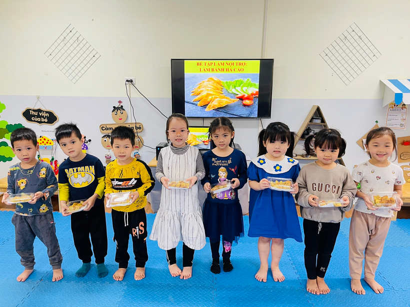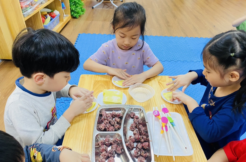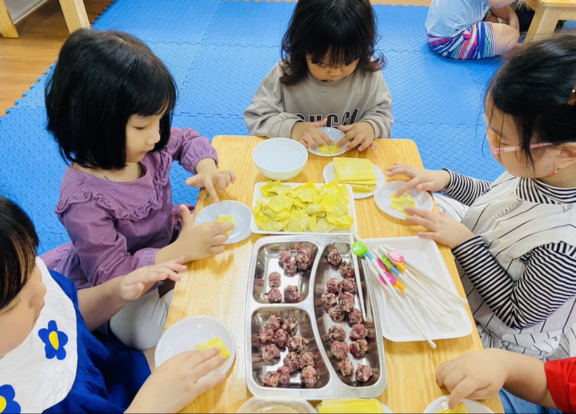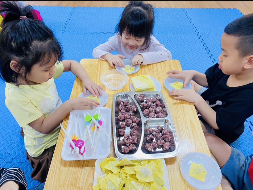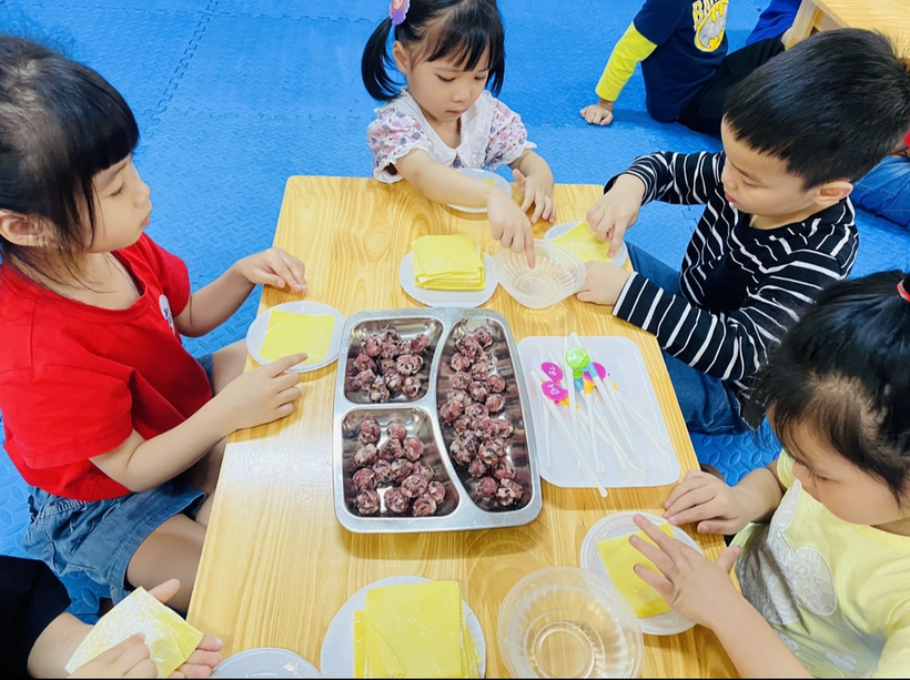 Trẻ rất say sưa khi được tự tay gói bánh Há cảo