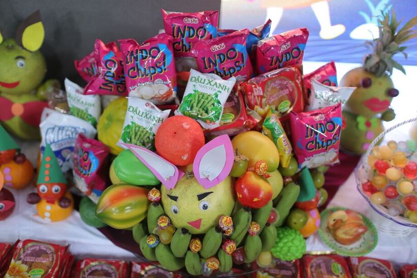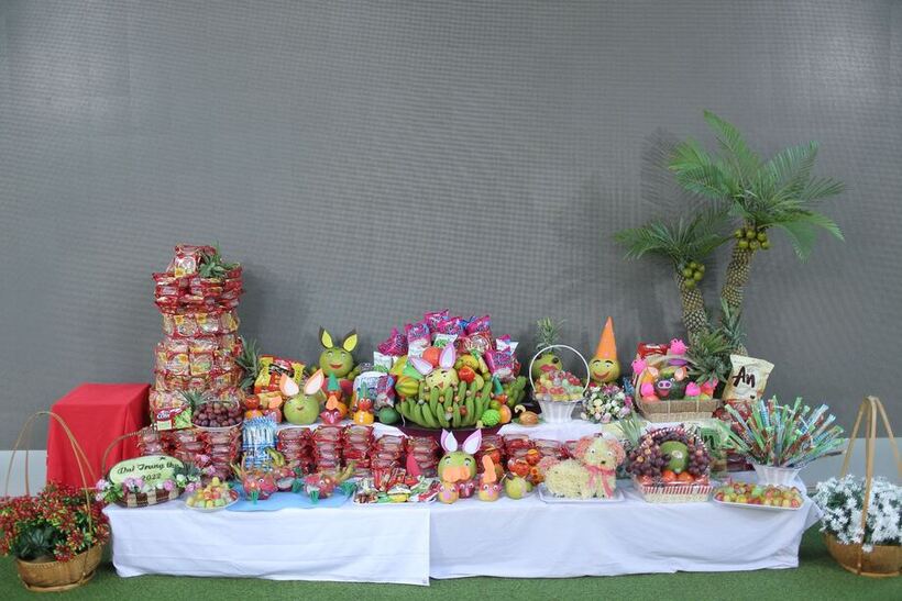 Mâm cỗ trung thu do cô và các bé cùng nhau trang trí.