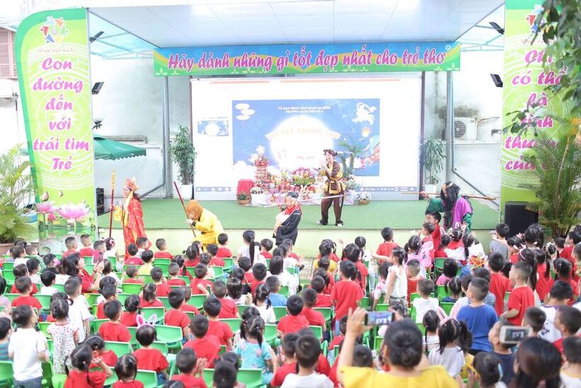 Điều ấn tượng nhất của Lễ hội là các bé được giao lưu với Chị Hằng và Chú Cuội cùng 4 thầy trò Đường Tăng. Với sự dẫn dắt hóm hỉnh của Chú Cuội và sự dịu dàng của Chị Hằng đã mang đến cho các bé những giây phút vui vẻ và đầy ý nghĩa của Tết trung thu tại trường mầm non Số 6.