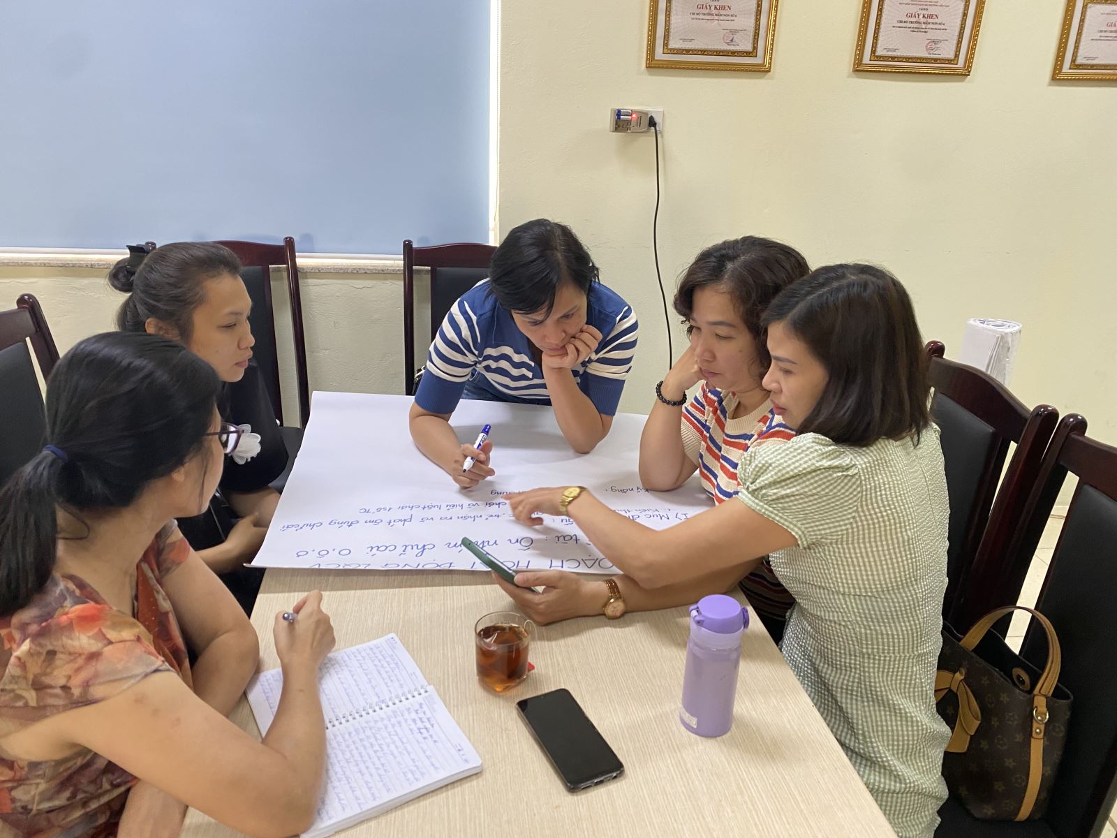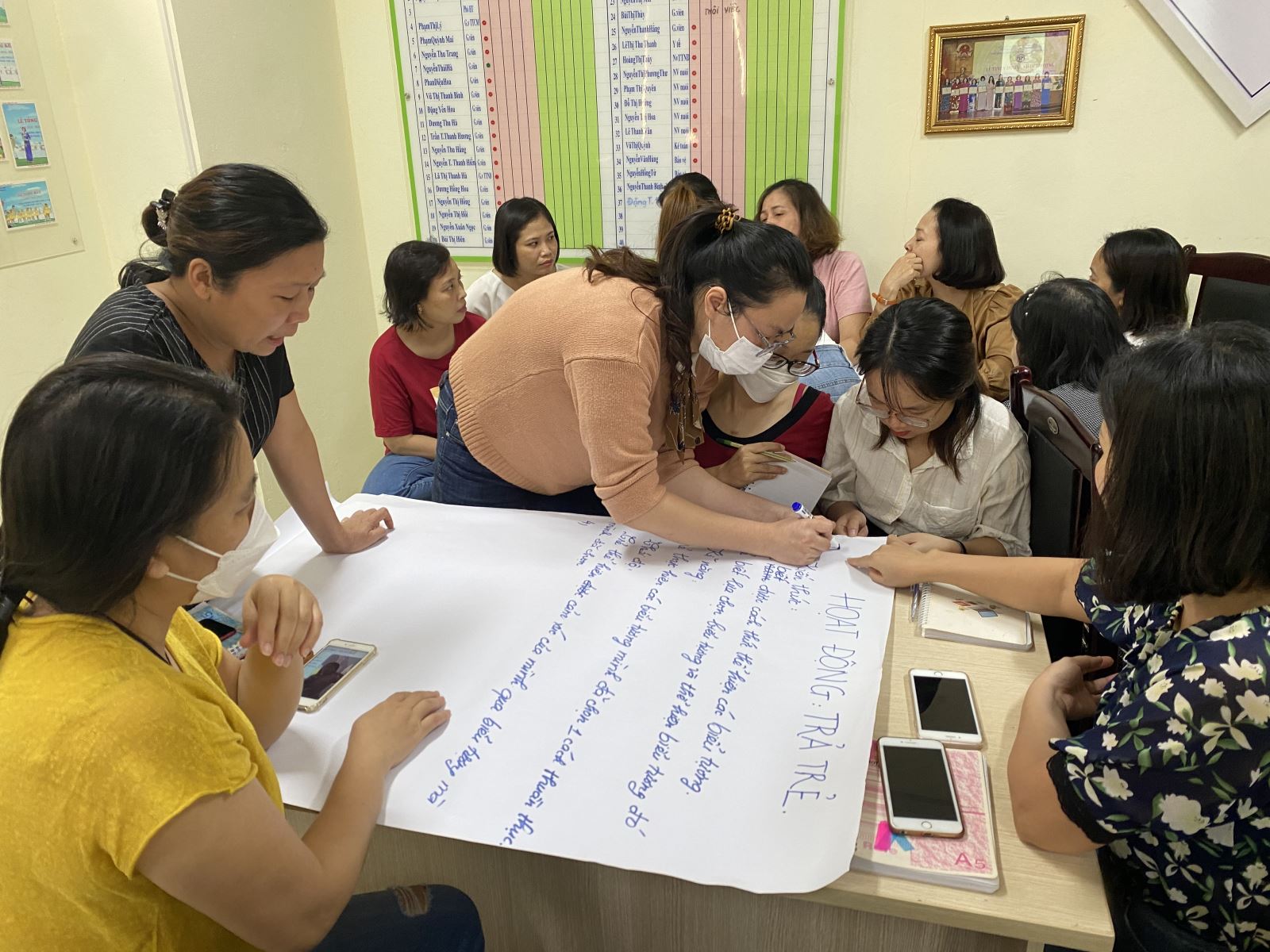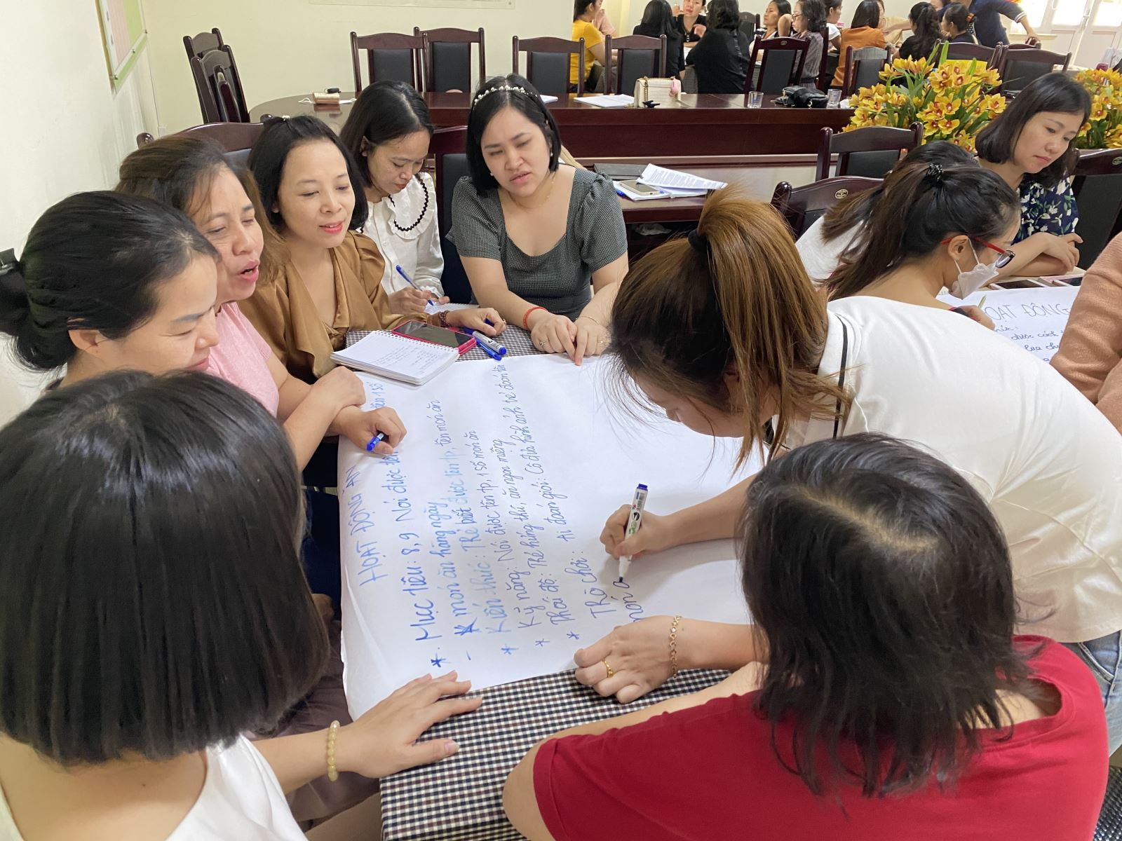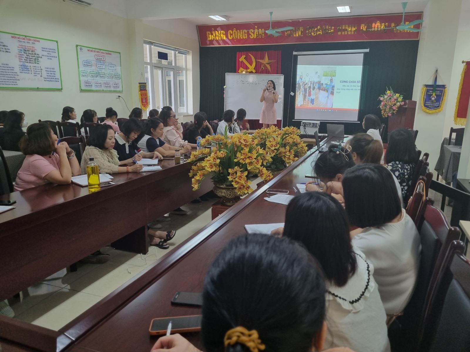 Buổi bồi dưỡng diễn ra rất sôi nổi, giáo viên đã thu nhận được những kiến thức hiệu quả để xây dựng trường, lớp mầm non hạnh phúc " Cô giáo hạnh phúc mới mang lại hạnh phúc cho trẻ".