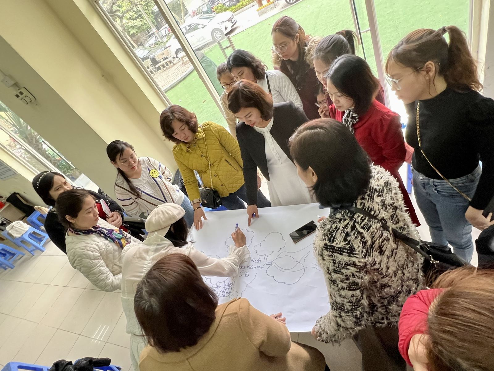 Nhóm giáo viên cùng nhau thảo luận để hoàn thành bài tập nhóm.