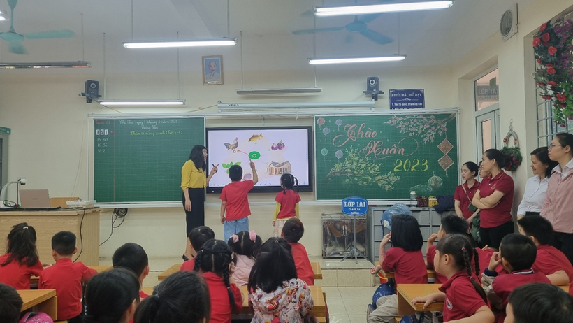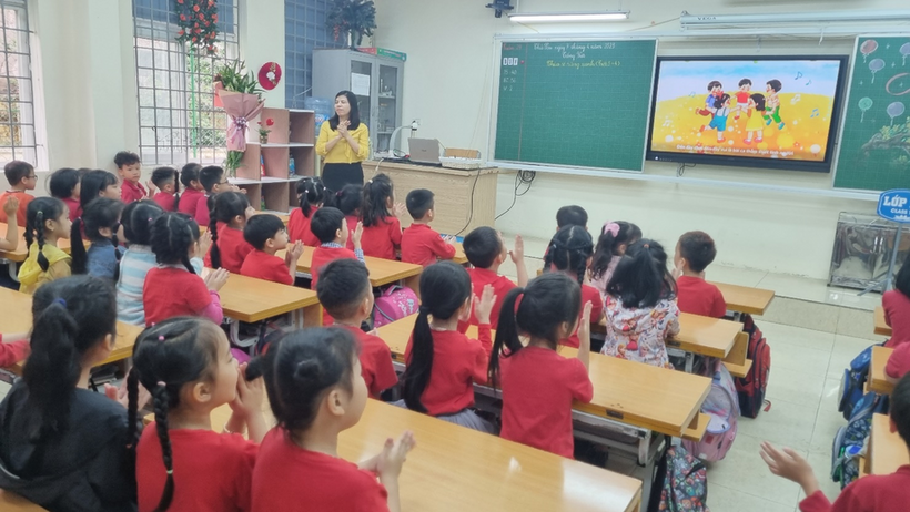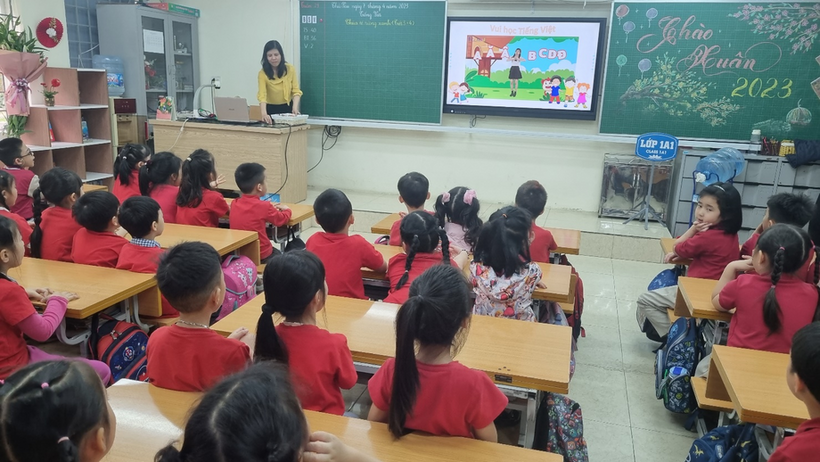 Các bé hớn hở bước vào Trường tiểu học Ba Đình