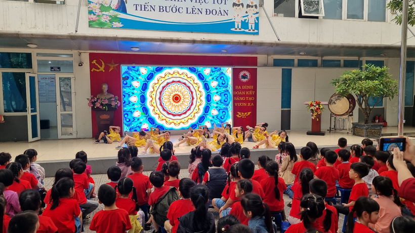 Đến trường Tiểu học Ba Đình các bé được dự hoạt động "Văn nghệ chào mừng", cùng các anh chị ở trường Tiểu học Ba Đình, các bé rất hào hứng và phấn khởi khi được dự các tiết mục văn nghệ vô cùng sôi động.