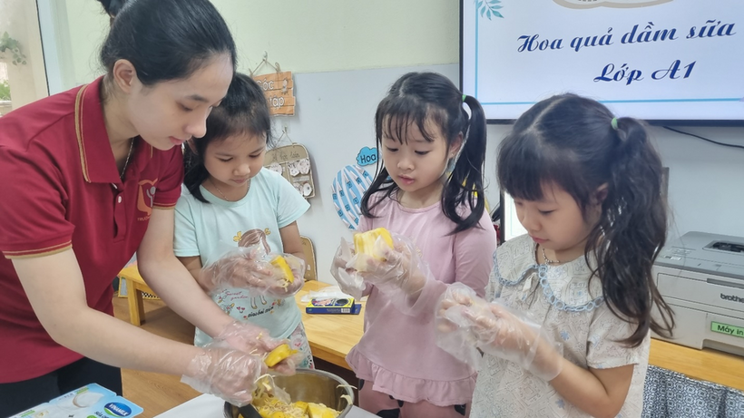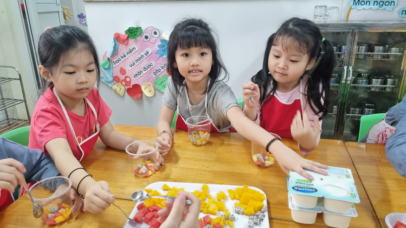 Hoạt động trải nghiệm bé làm hoa quả dầm sữa chua của cô và trò lớp A1 đã thành công tốt đẹp. Niềm vui hiện rõ trên mỗi gương mặt, cảm xúc tận hưởng món ăn ngon biểu hiện trong từng nụ cười của các bé yêu./.