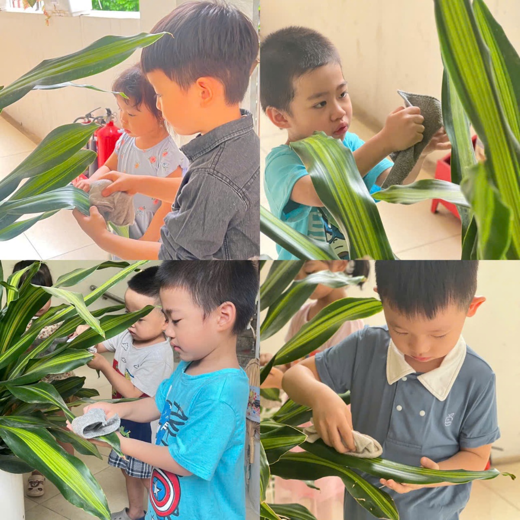 Mỗi chiếc lá được lau sạch là một hành động nhỏ góp phần nuôi dưỡng tình yêu thiên nhiên trong trẻ thơ.