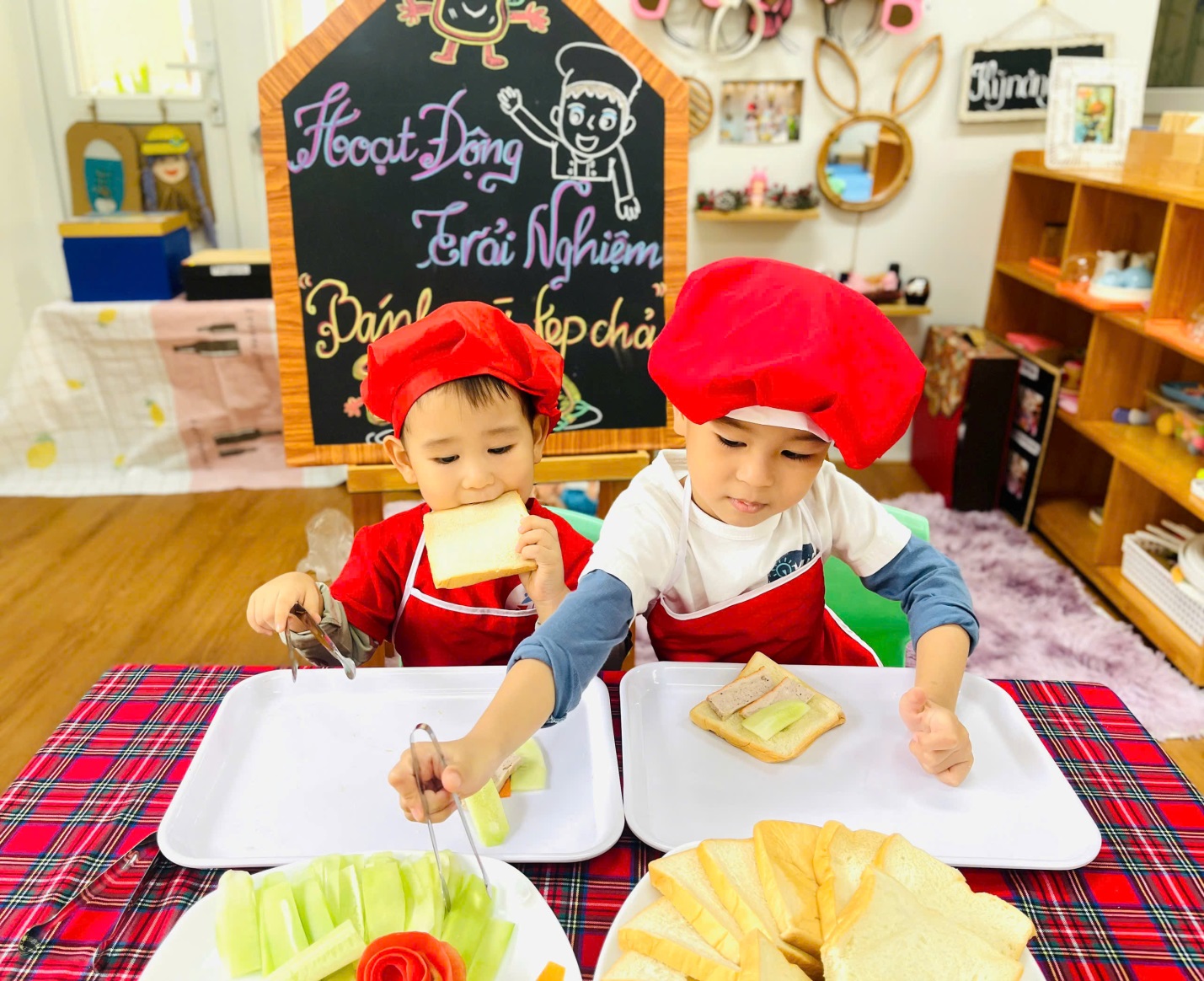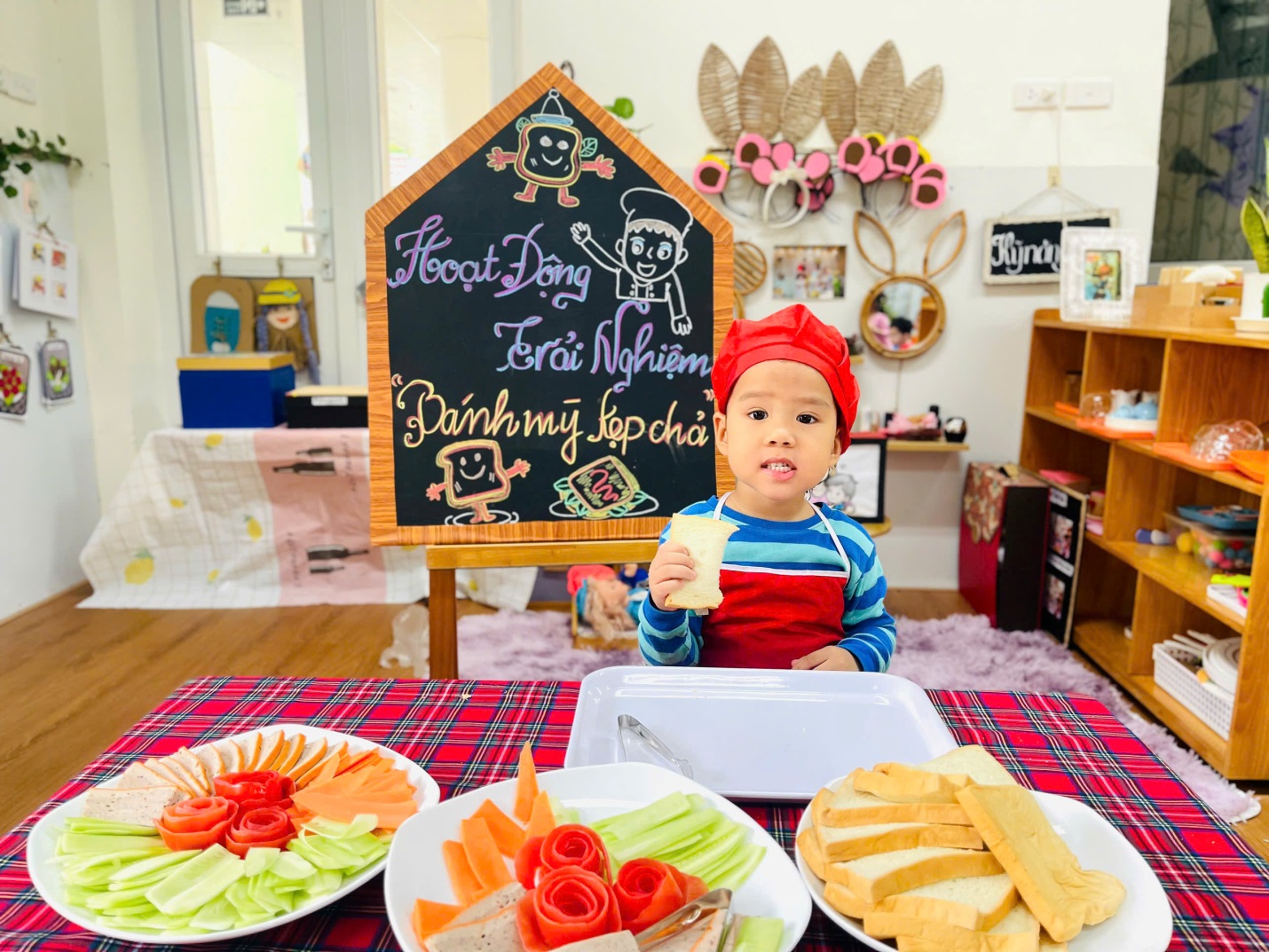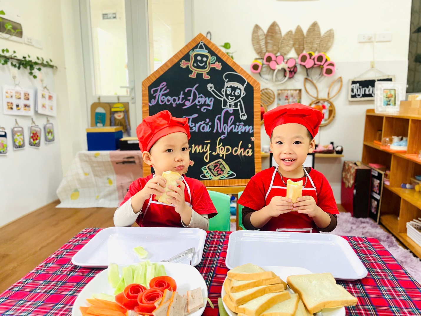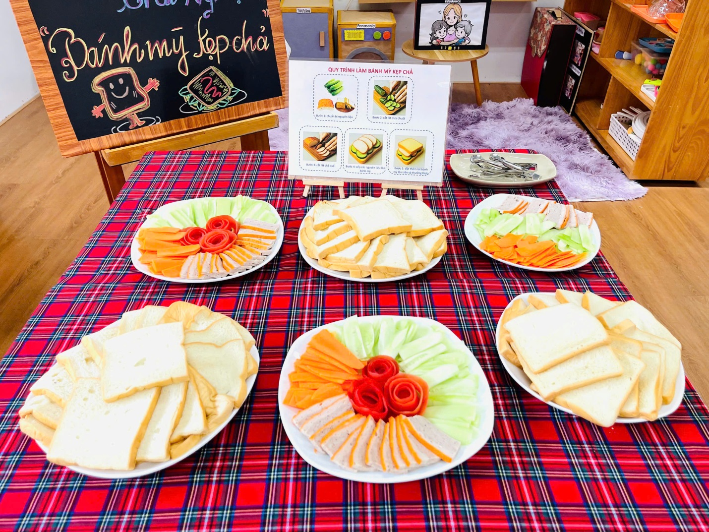 Qua hoạt động trẻ được làm quen với các nguyên liệu gần gũi trong bữa ăn hàng ngày và có kỹ năng khéo léo để tự tay làm bánh mì kẹp theo ý thích. Với các nguyên vật liệu bánh mì sandwich, chả, dưa chuột, cà rốt theo sự sáng tạo sở thích của trẻ, cùng nhau thưởng thức thành phẩm tự tay làm.
