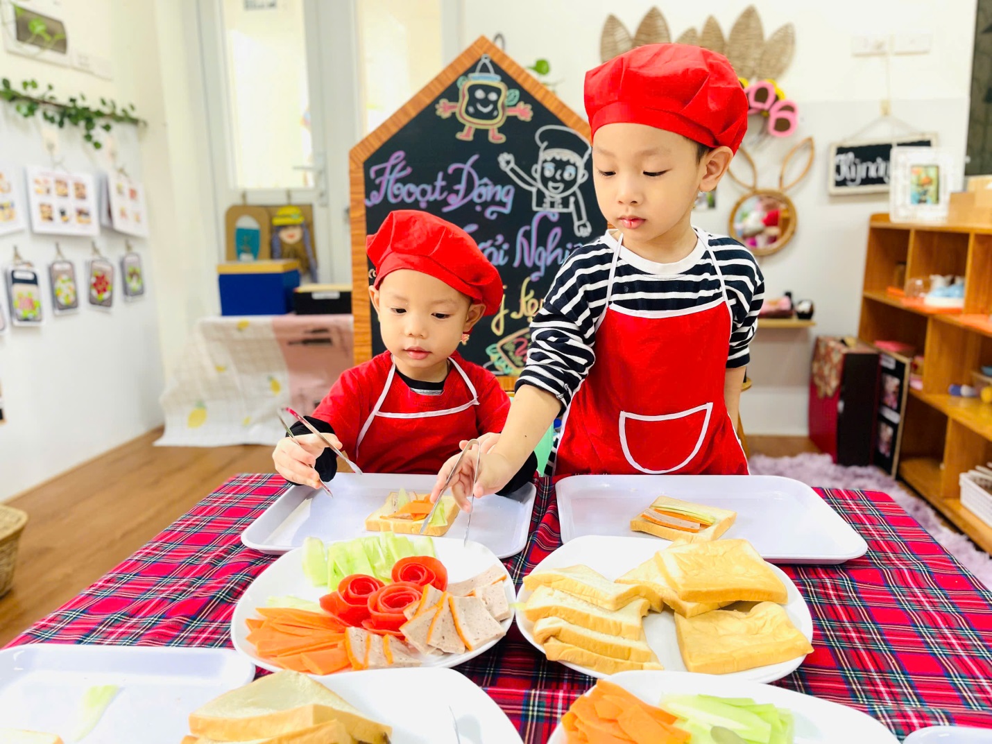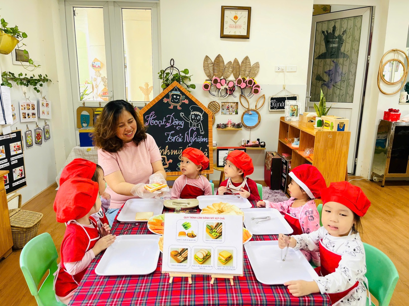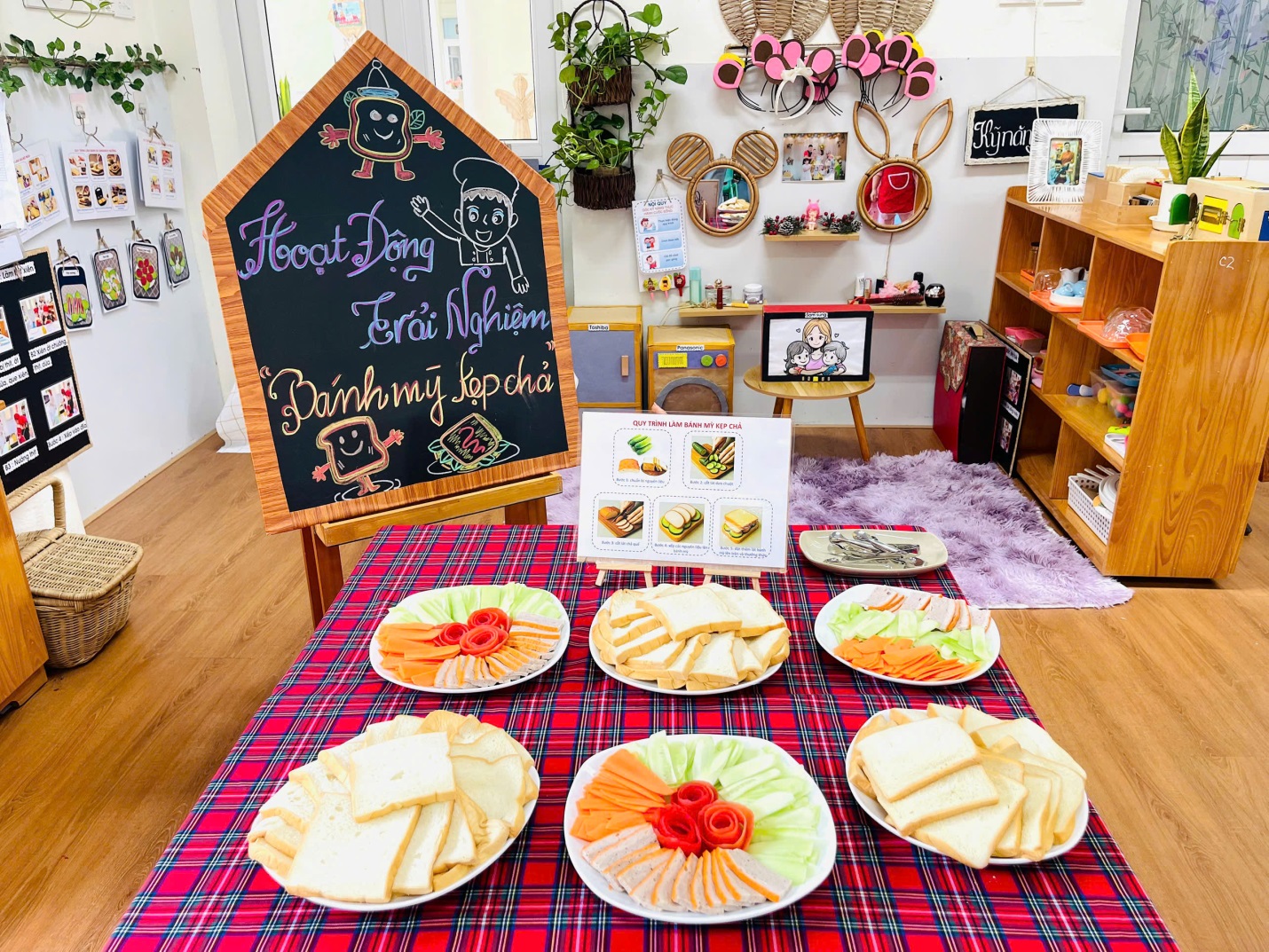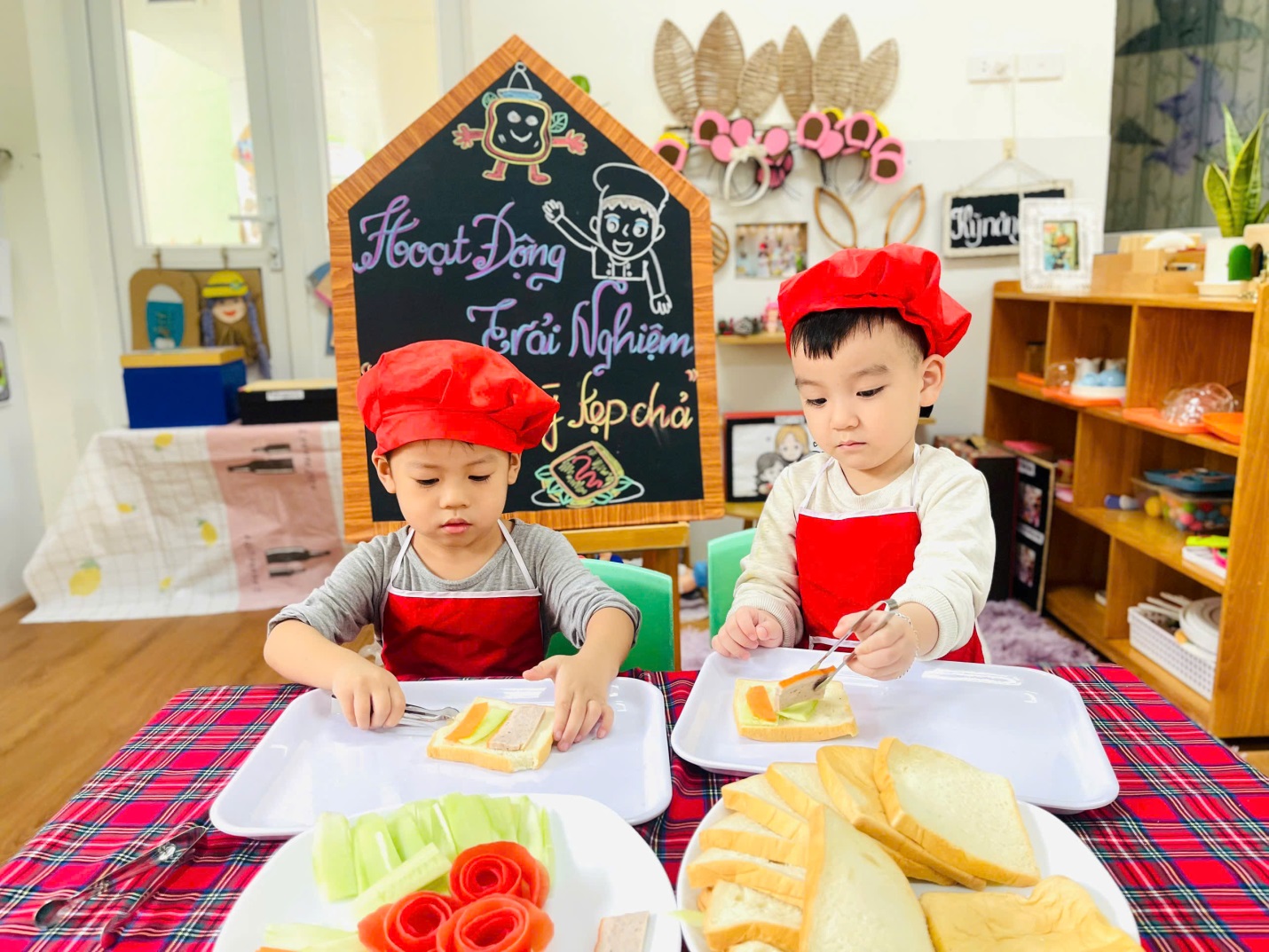 Qua hoạt động trẻ được làm quen với các nguyên liệu gần gũi trong bữa ăn hàng ngày và có kỹ năng khéo léo để tự tay làm bánh mì kẹp theo ý thích. Với các nguyên vật liệu bánh mì sandwich, chả, dưa chuột, cà rốt theo sự sáng tạo sở thích của trẻ, cùng nhau thưởng thức thành phẩm tự tay làm.