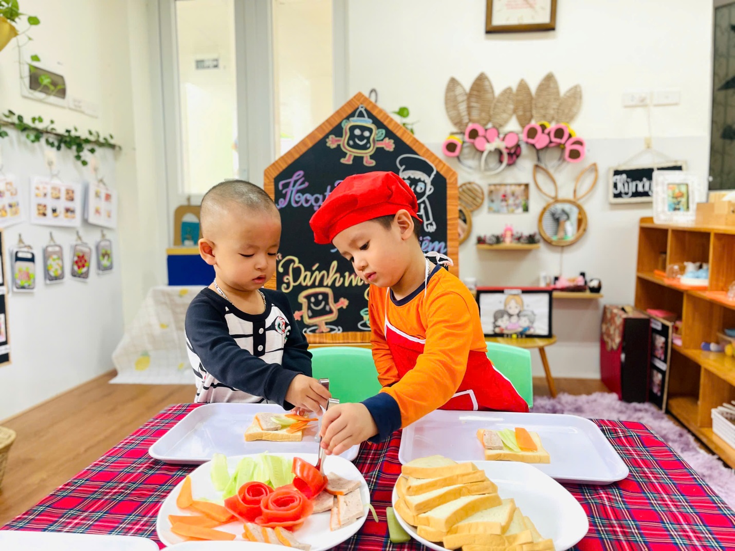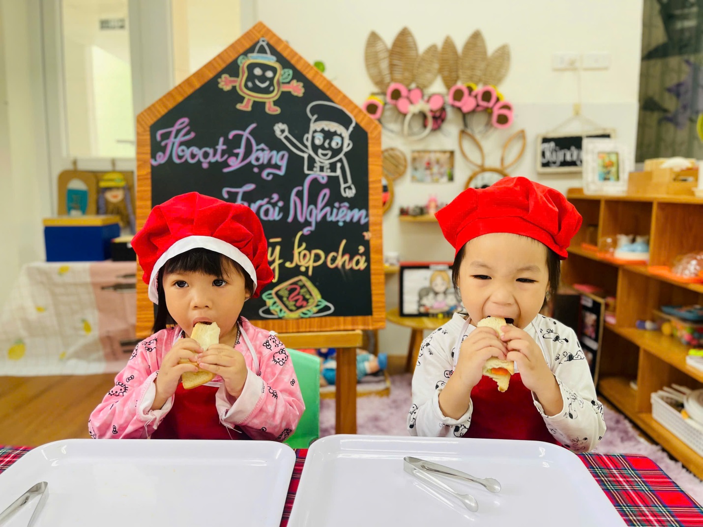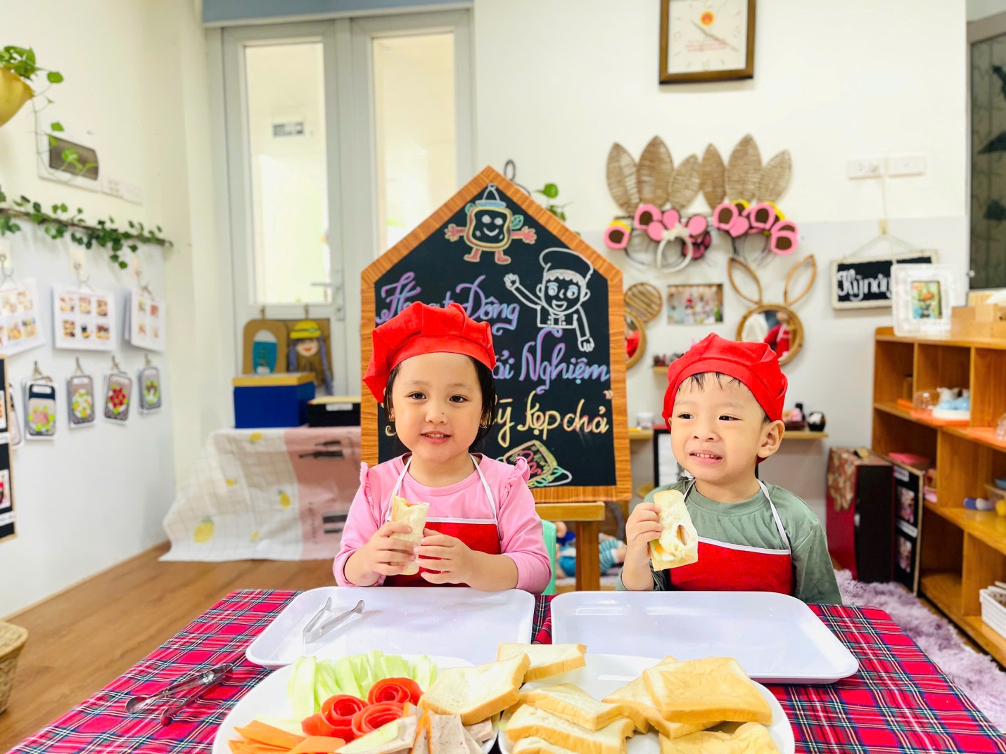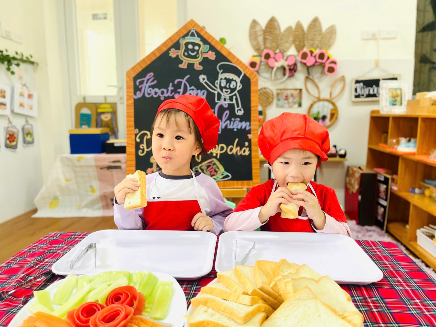 Qua hoạt động trẻ được làm quen với các nguyên liệu gần gũi trong bữa ăn hàng ngày và có kỹ năng khéo léo để tự tay làm bánh mì kẹp theo ý thích. Với các nguyên vật liệu bánh mì sandwich, chả, dưa chuột, cà rốt theo sự sáng tạo sở thích của trẻ, cùng nhau thưởng thức thành phẩm tự tay làm.