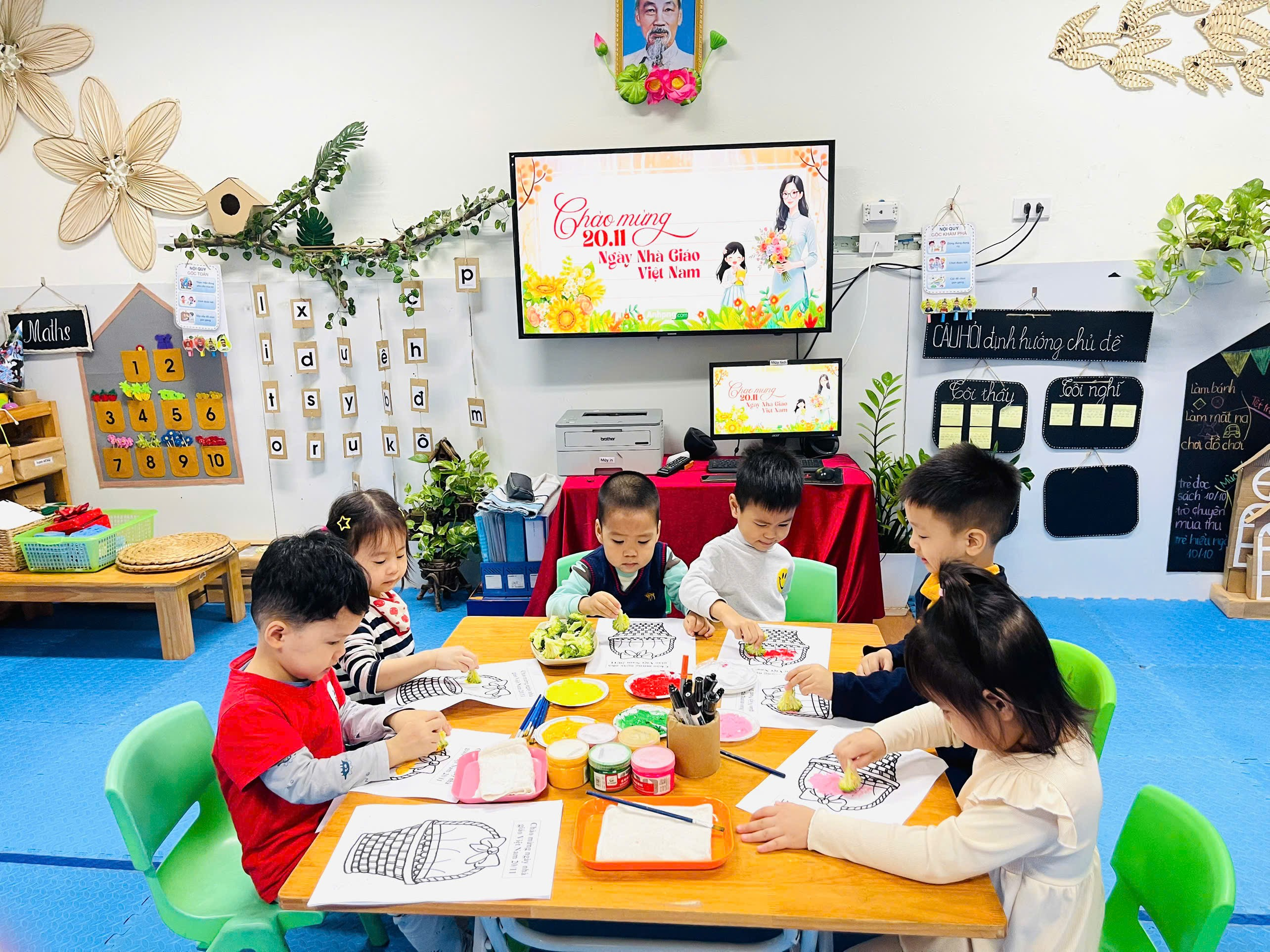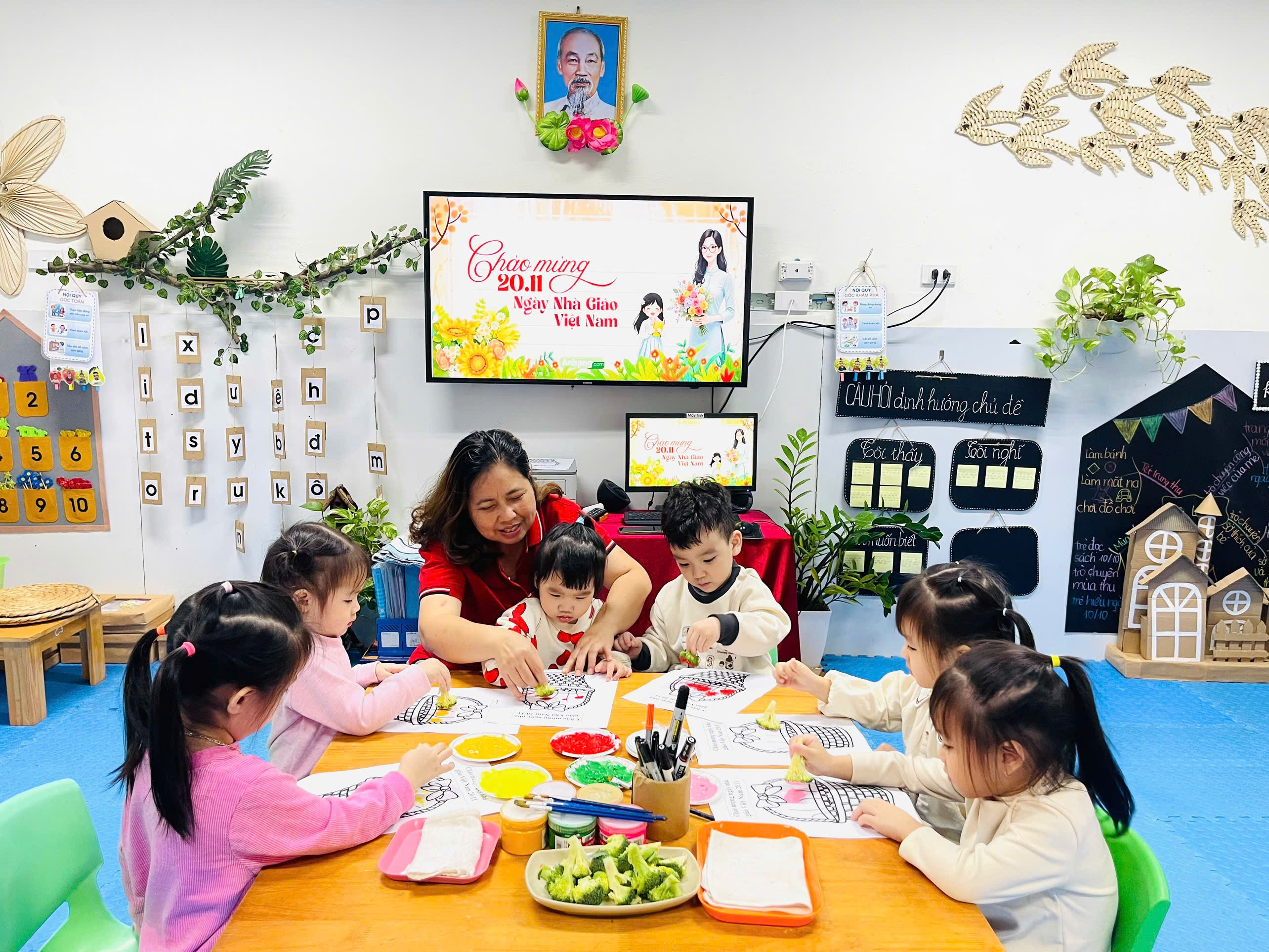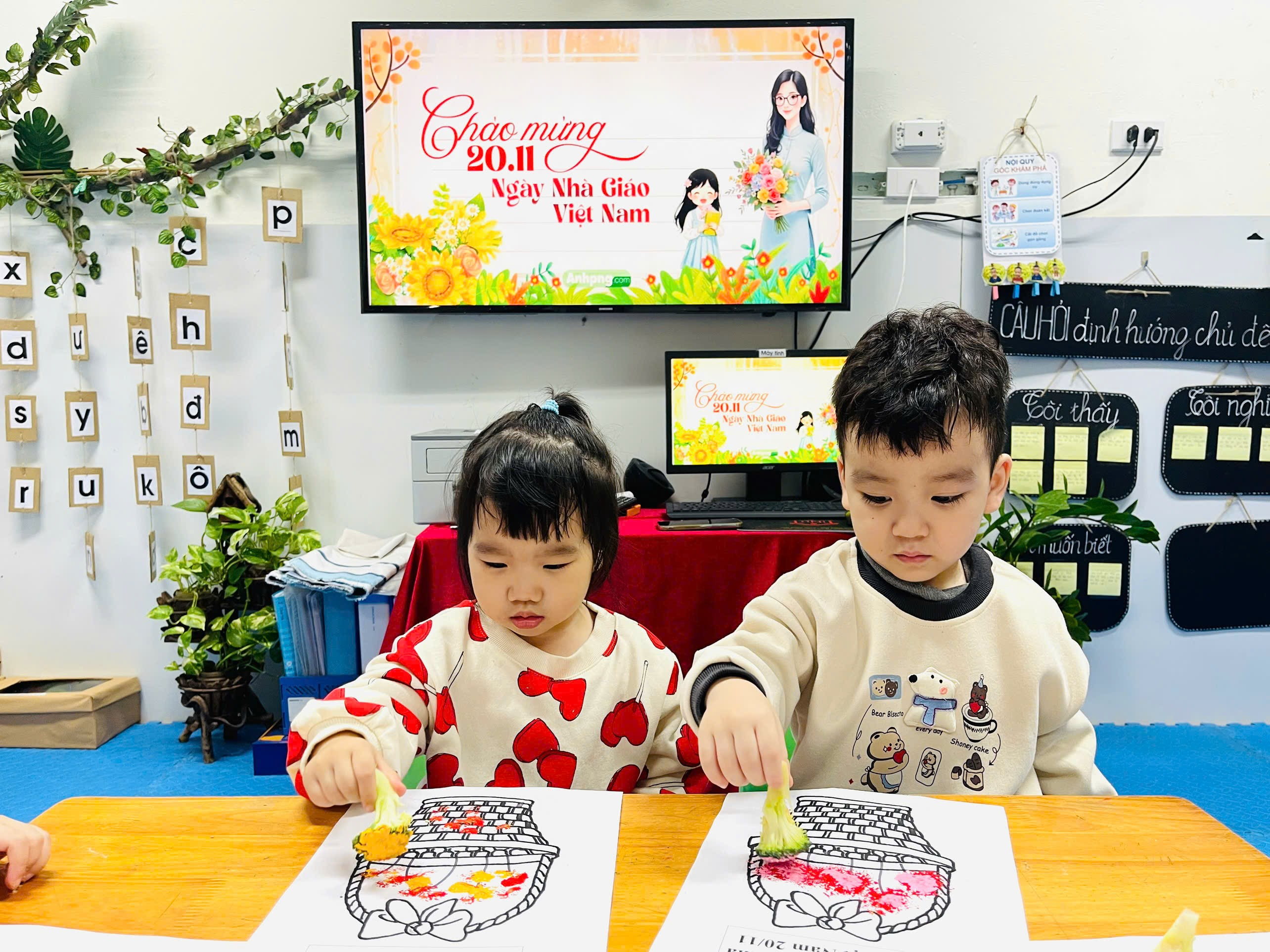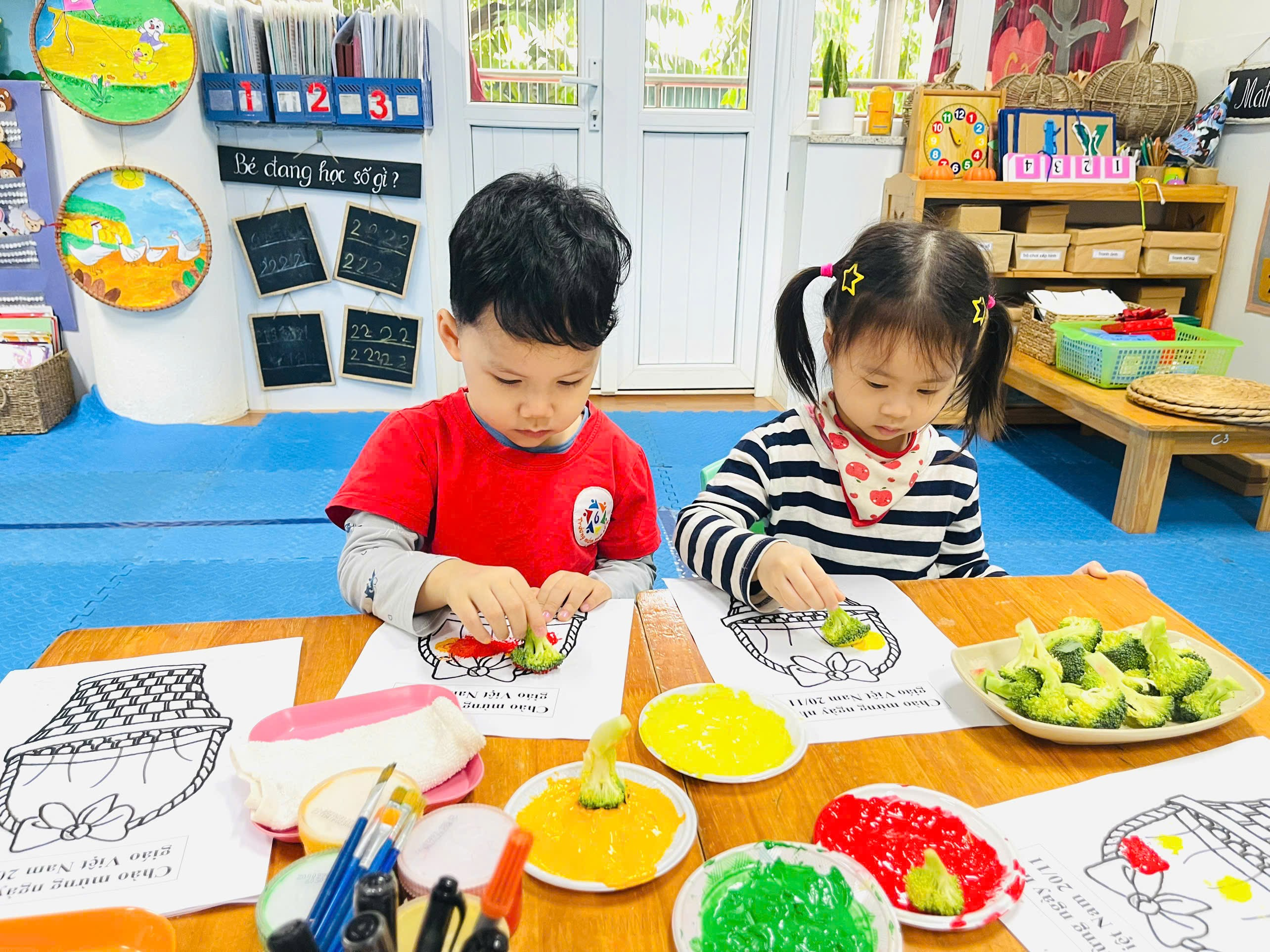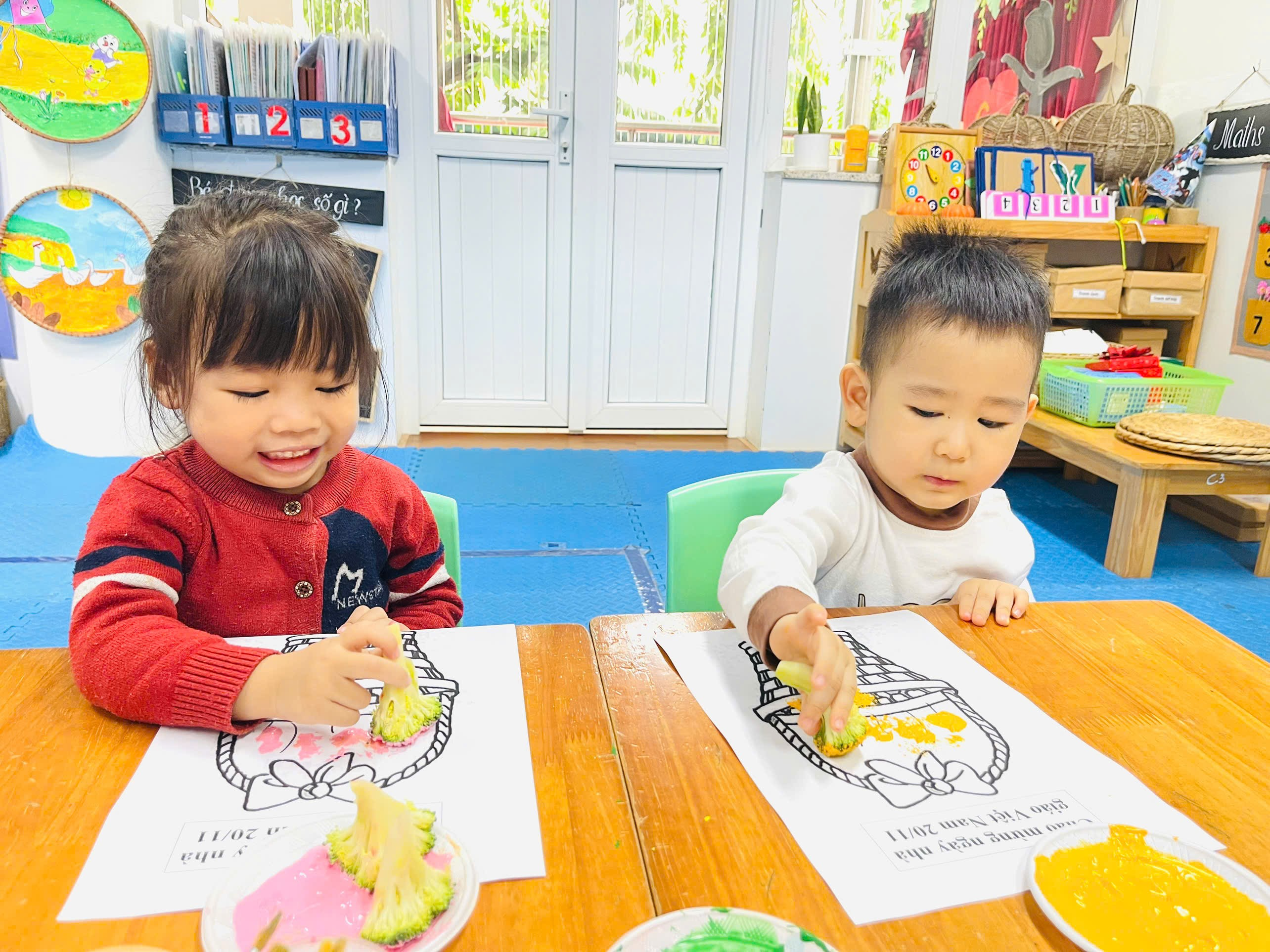 Hôm nay các bạn nhỏ lớp C3 đã được các cô hướng dẫn tạo hình lẵng hoa từ cây súp lơ chấm màu nước rất sáng tạo tặng các cô giáo nhân ngày 20/11. Các bé đã được tìm hiểu về loại rau súp lơ và tự tay chấm màu cây súp lơ tạo thành bông hoa nhiều màu sắc rất đẹp và độc đáo.