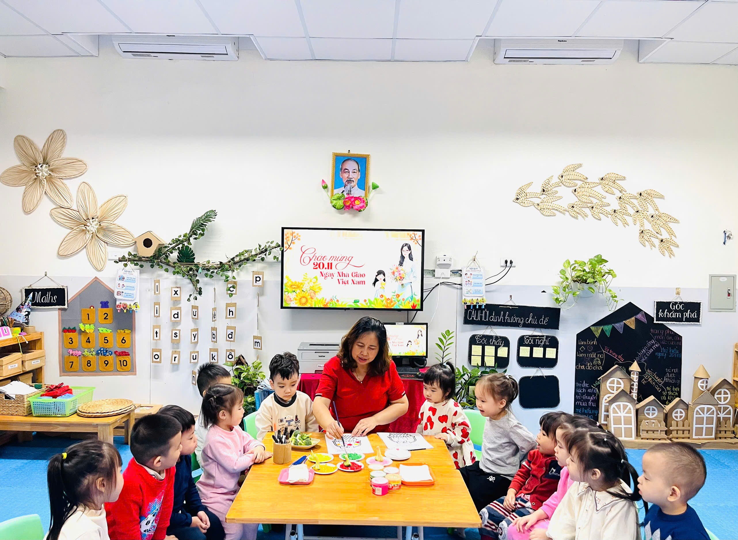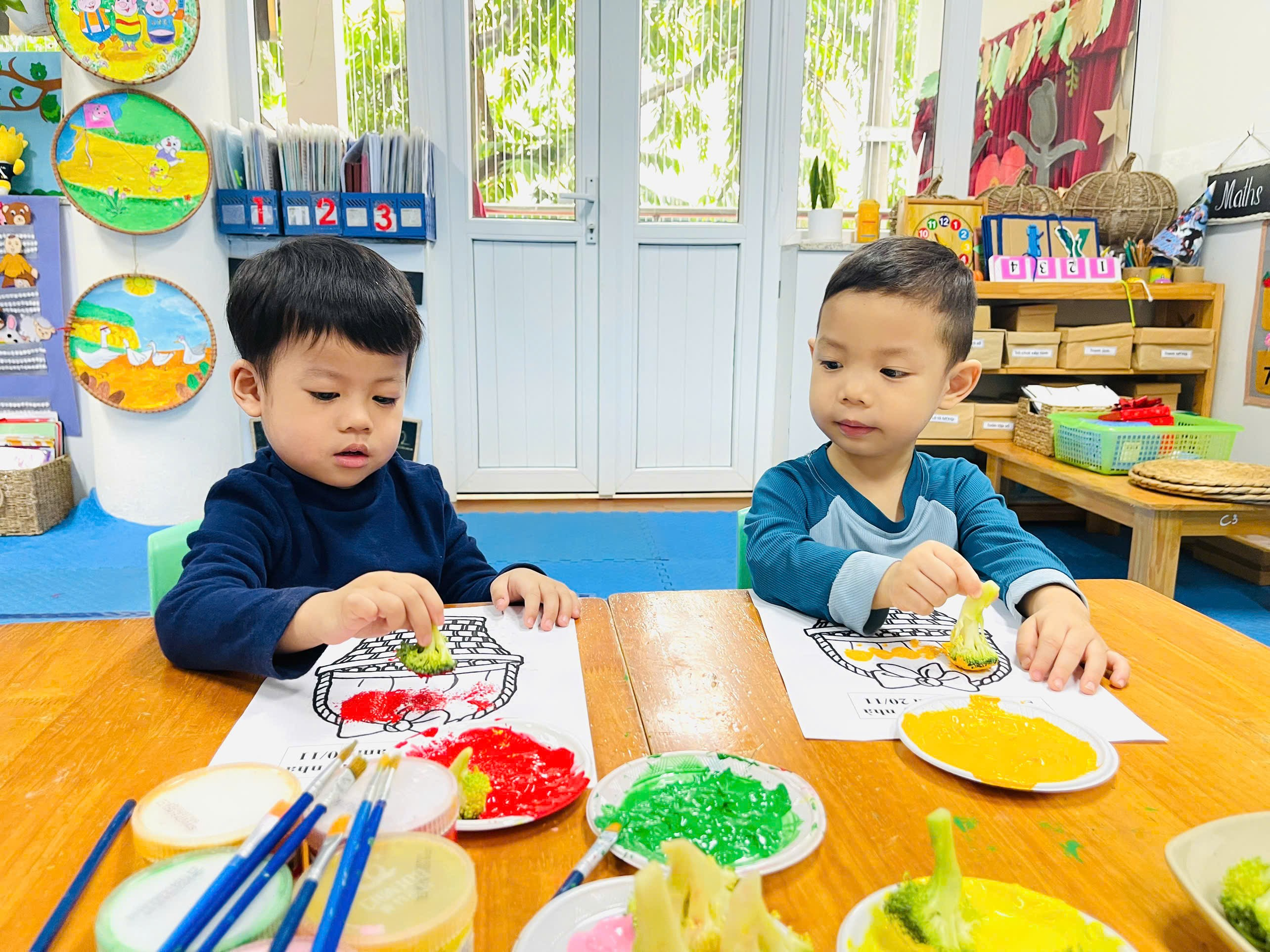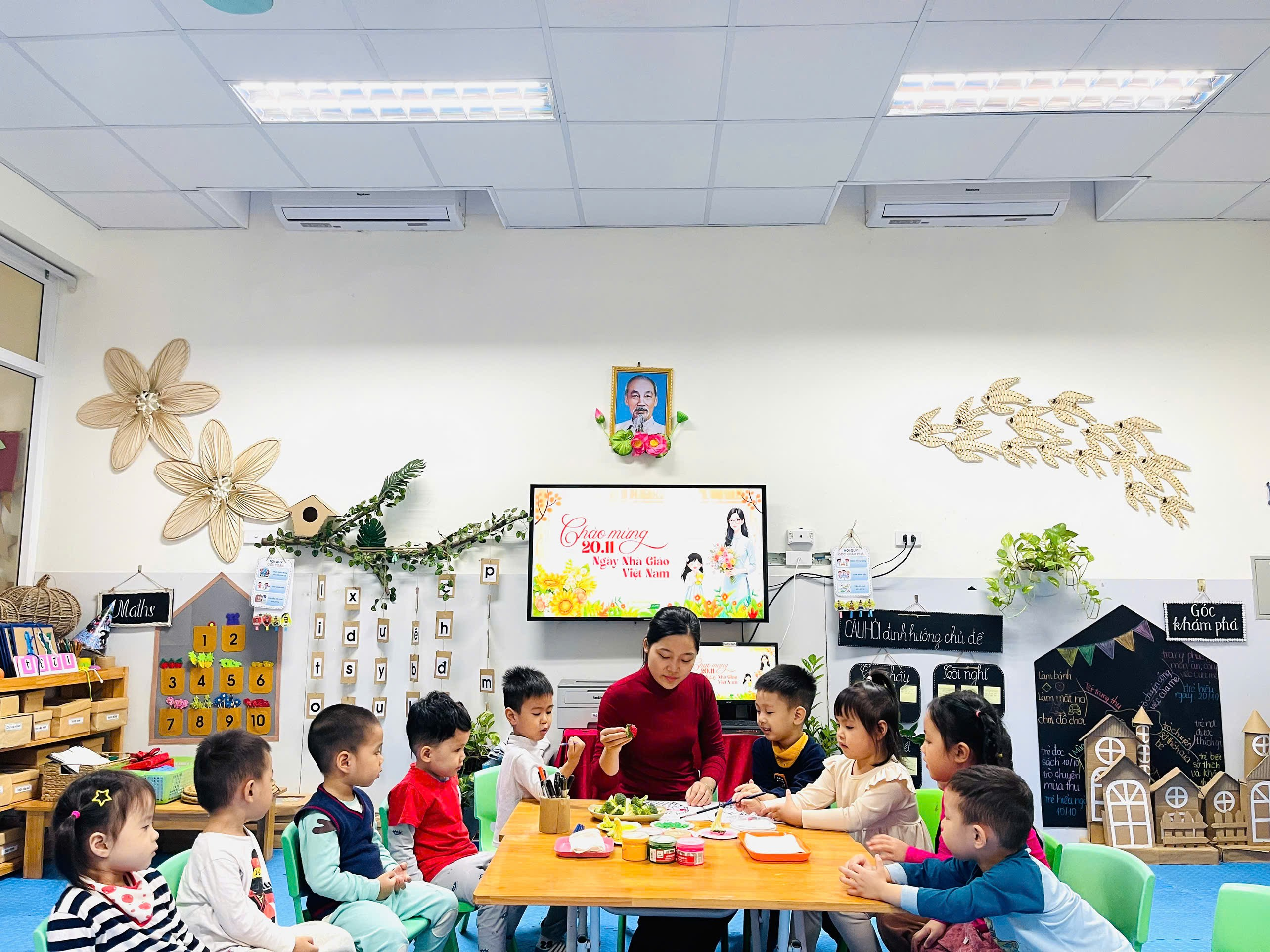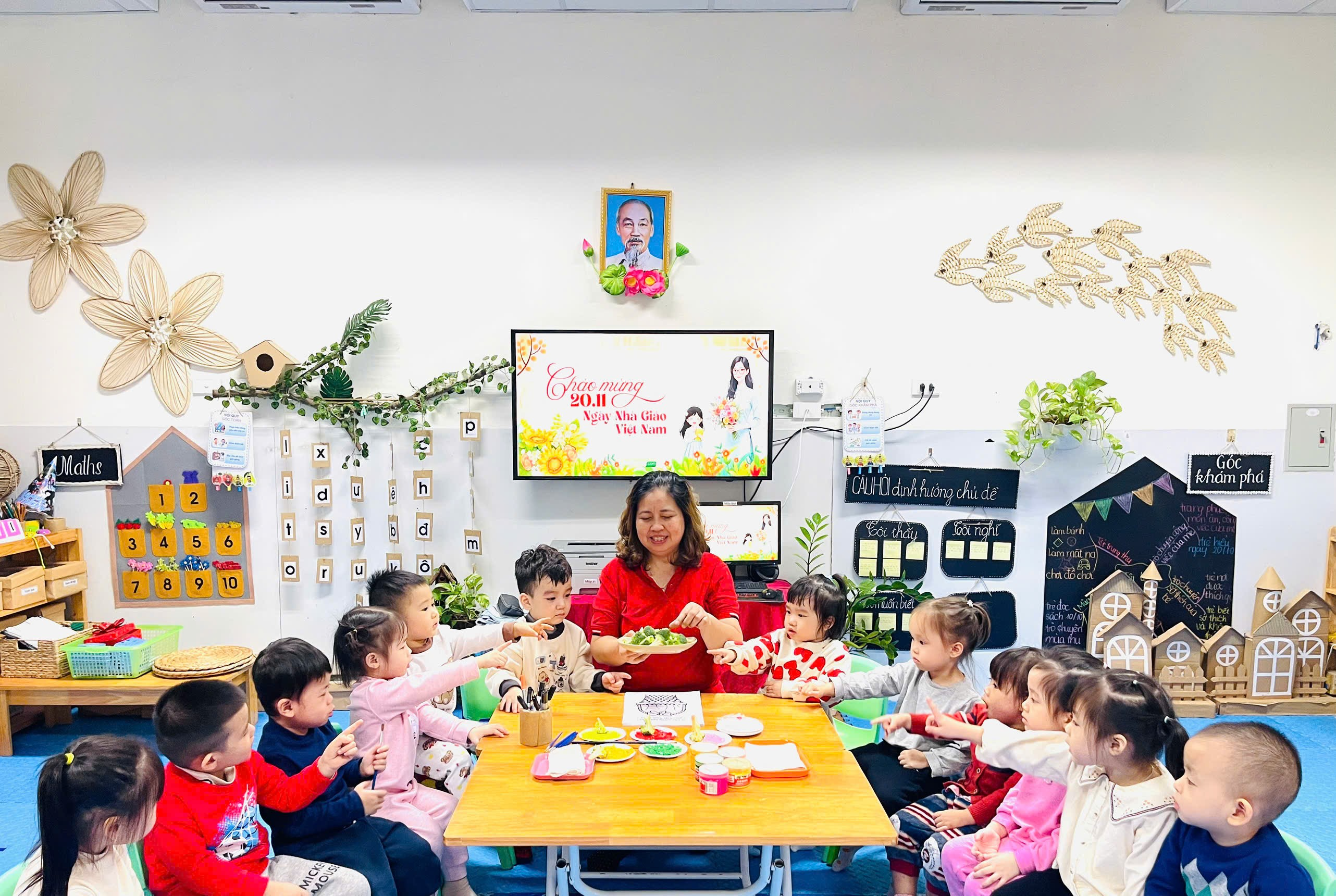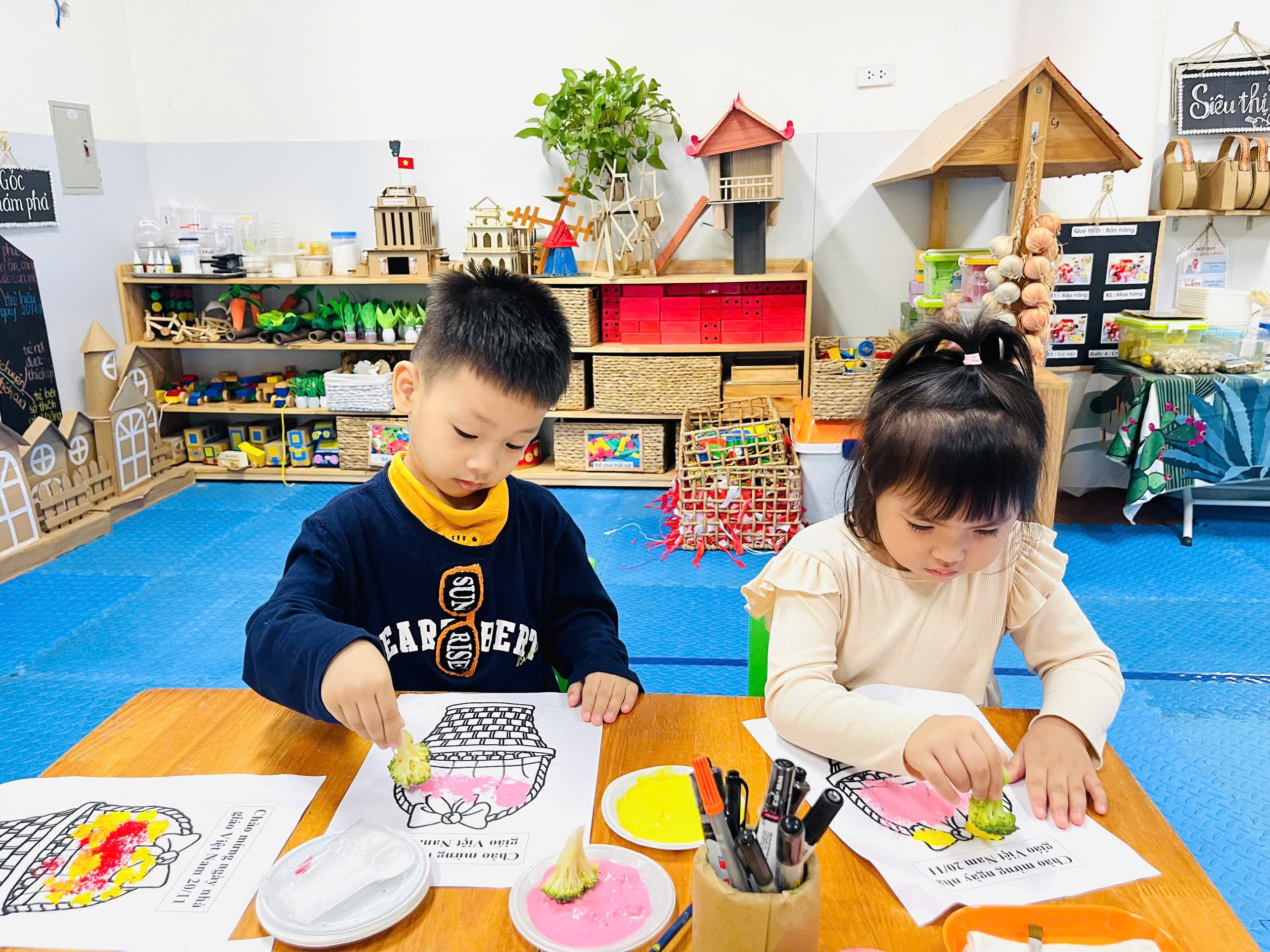 Hôm nay các bạn nhỏ lớp C3 đã được các cô hướng dẫn tạo hình lẵng hoa từ cây súp lơ chấm màu nước rất sáng tạo tặng các cô giáo nhân ngày 20/11. Các bé đã được tìm hiểu về loại rau súp lơ và tự tay chấm màu cây súp lơ tạo thành bông hoa nhiều màu sắc rất đẹp và độc đáo.