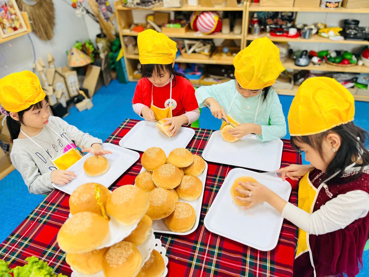 Hoạt động trải nghiệm: Bé A3 khéo tay làm bánh hamburger 🍔🌿