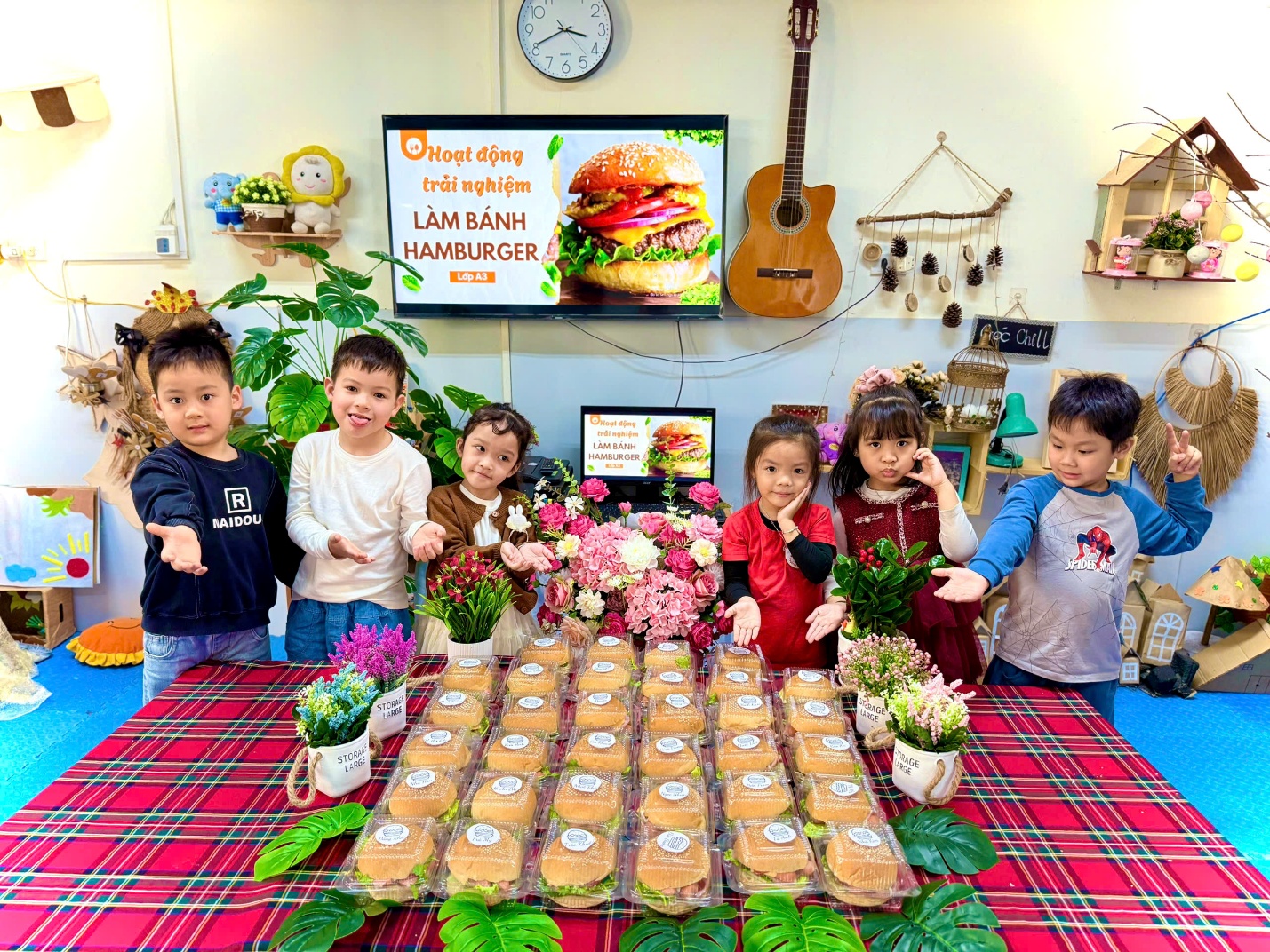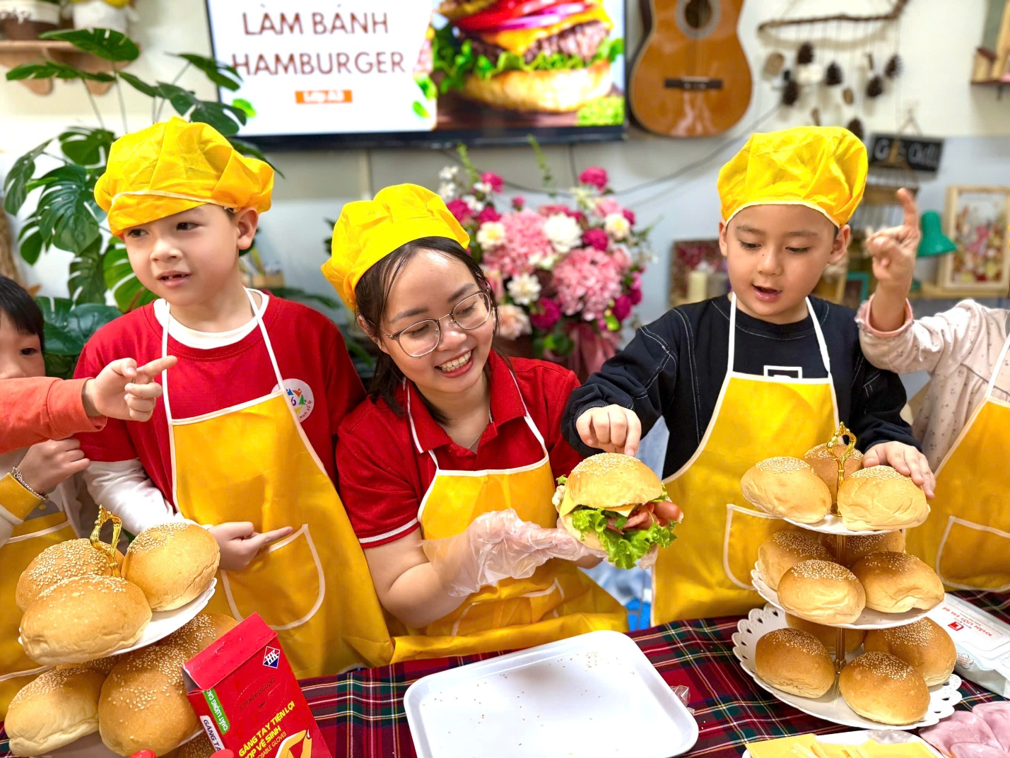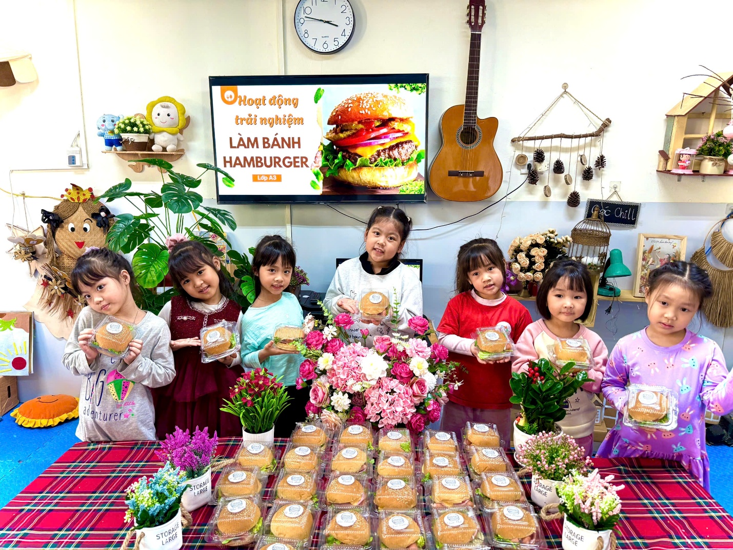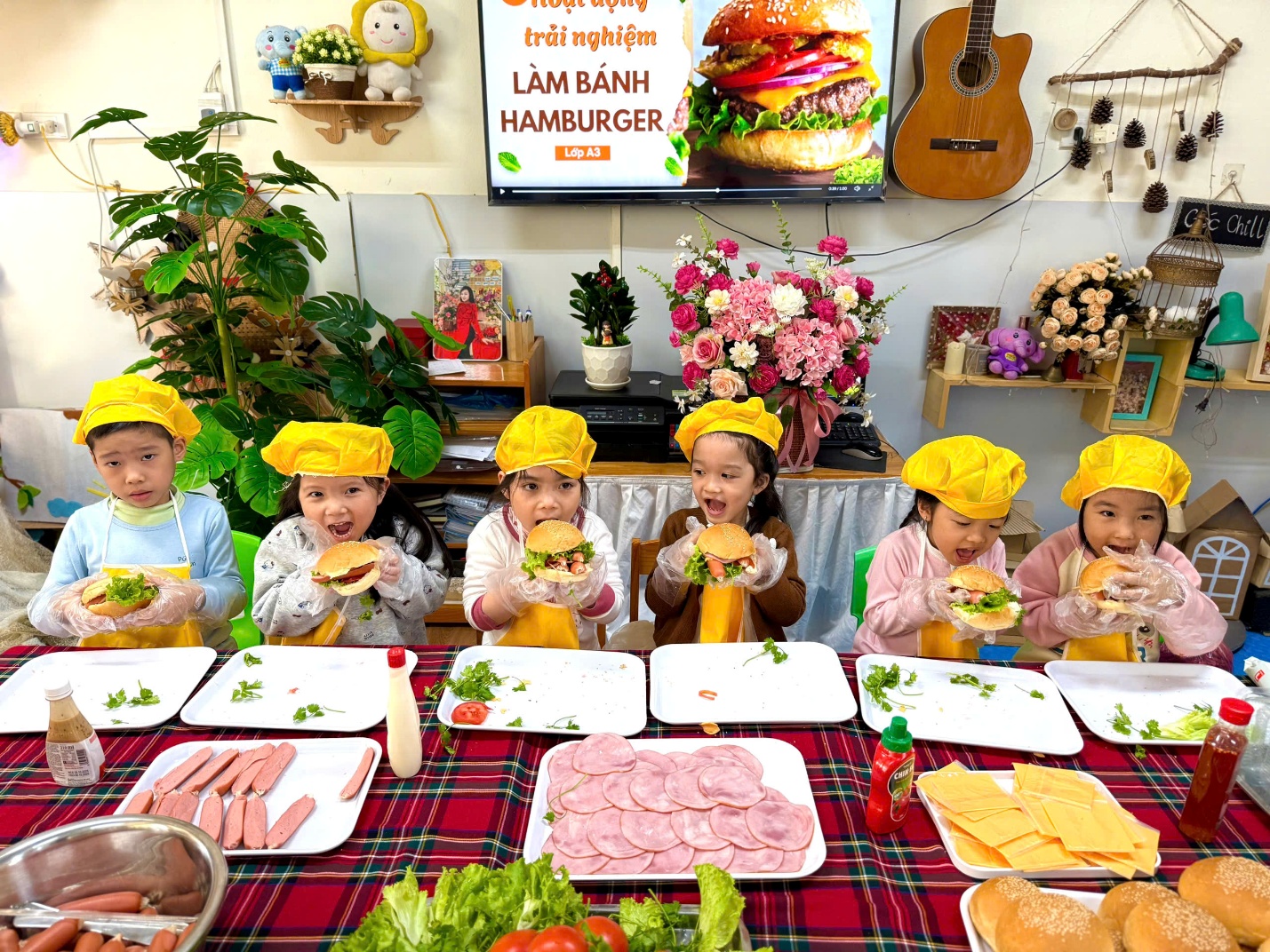 Hôm nay, không gian lớp A3 bỗng trở nên nhộn nhịp và đầy hứng khởi khi các bạn nhỏ bắt đầu hoạt động trải nghiệm “Tự tay làm bánh hamburger”. Với đôi bàn tay nhỏ xinh nhưng đầy sự tập trung và háo hức, các con đã trải qua một hành trình thú vị từ việc chuẩn bị nguyên liệu đến hoàn thiện chiếc bánh của riêng mình. Hoạt động không chỉ giúp trẻ rèn sự khéo léo, kỹ năng tự phục vụ mà còn nuôi dưỡng tinh thần trách nhiệm, khả năng phối hợp nhóm và thói quen giữ gìn vệ sinh trong khi làm việc. Mỗi bước, mỗi thao tác đều là một trải nghiệm mới, giúp trẻ hiểu rằng để tạo nên một sản phẩm ngon mắt, ngon miệng cần rất nhiều sự cẩn thận và tỉ mỉ.