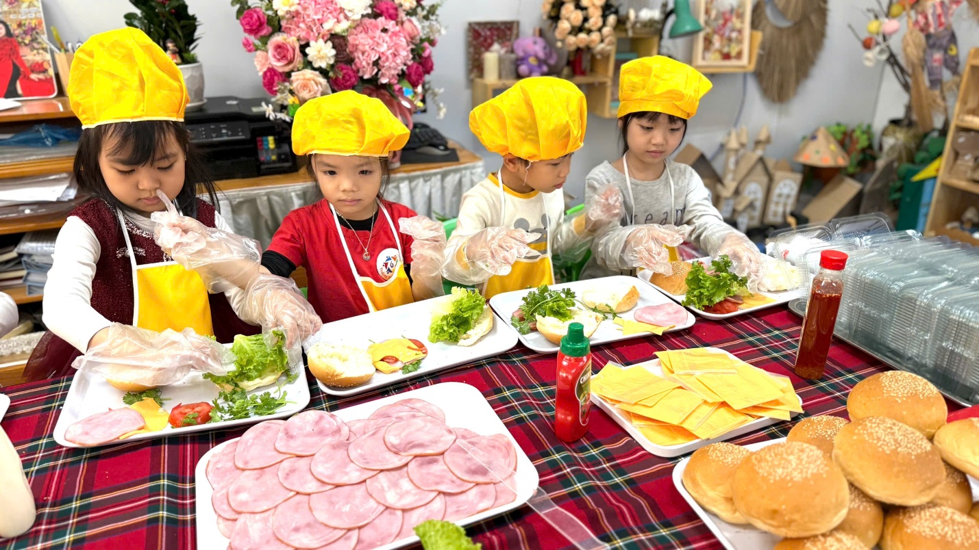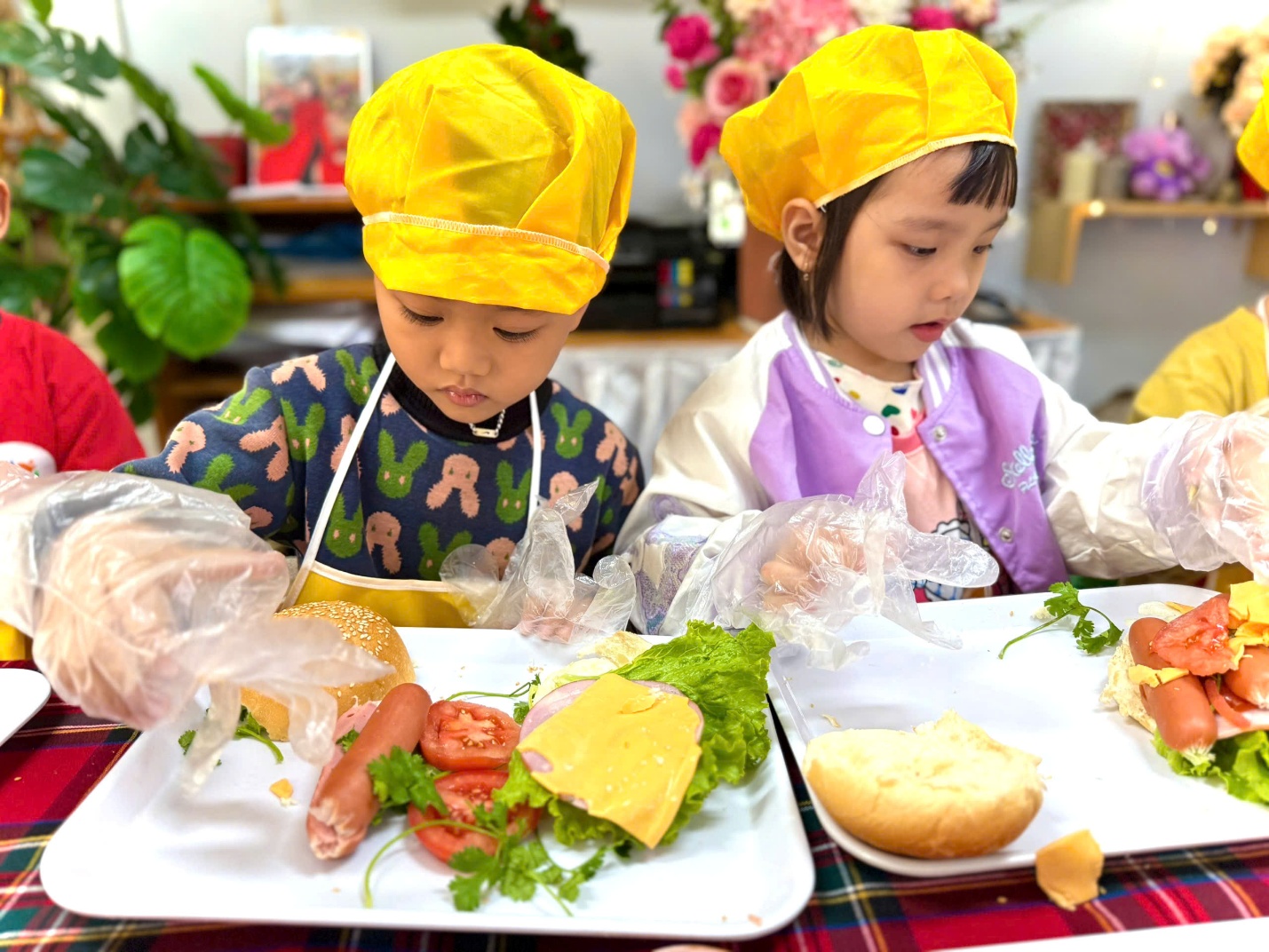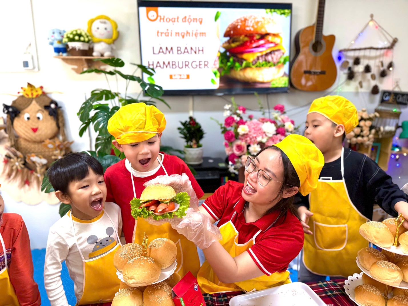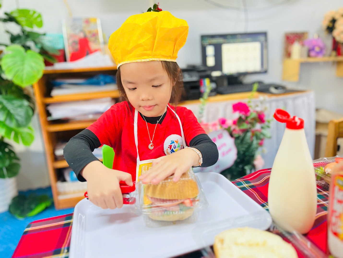 Hôm nay, không gian lớp A3 bỗng trở nên nhộn nhịp và đầy hứng khởi khi các bạn nhỏ bắt đầu hoạt động trải nghiệm “Tự tay làm bánh hamburger”. Với đôi bàn tay nhỏ xinh nhưng đầy sự tập trung và háo hức, các con đã trải qua một hành trình thú vị từ việc chuẩn bị nguyên liệu đến hoàn thiện chiếc bánh của riêng mình. Hoạt động không chỉ giúp trẻ rèn sự khéo léo, kỹ năng tự phục vụ mà còn nuôi dưỡng tinh thần trách nhiệm, khả năng phối hợp nhóm và thói quen giữ gìn vệ sinh trong khi làm việc. Mỗi bước, mỗi thao tác đều là một trải nghiệm mới, giúp trẻ hiểu rằng để tạo nên một sản phẩm ngon mắt, ngon miệng cần rất nhiều sự cẩn thận và tỉ mỉ.