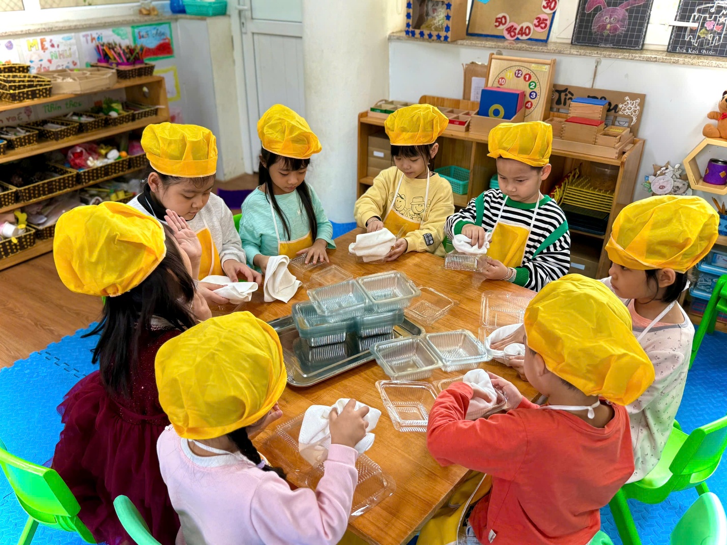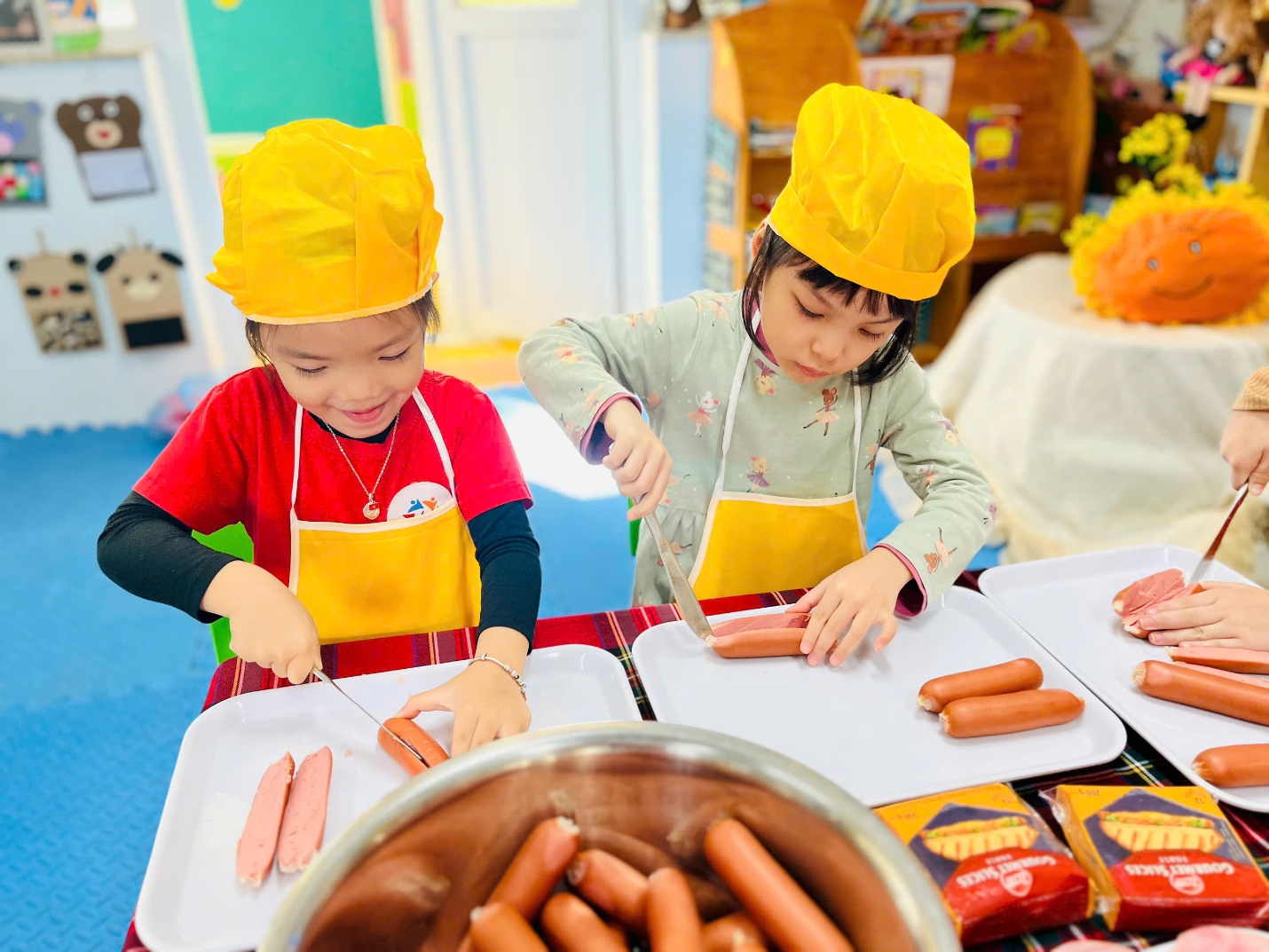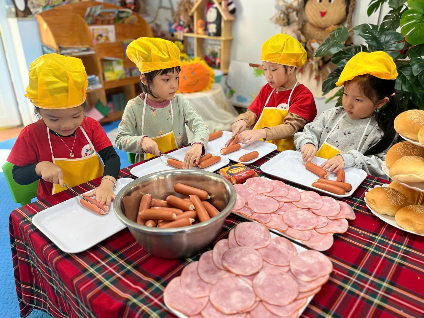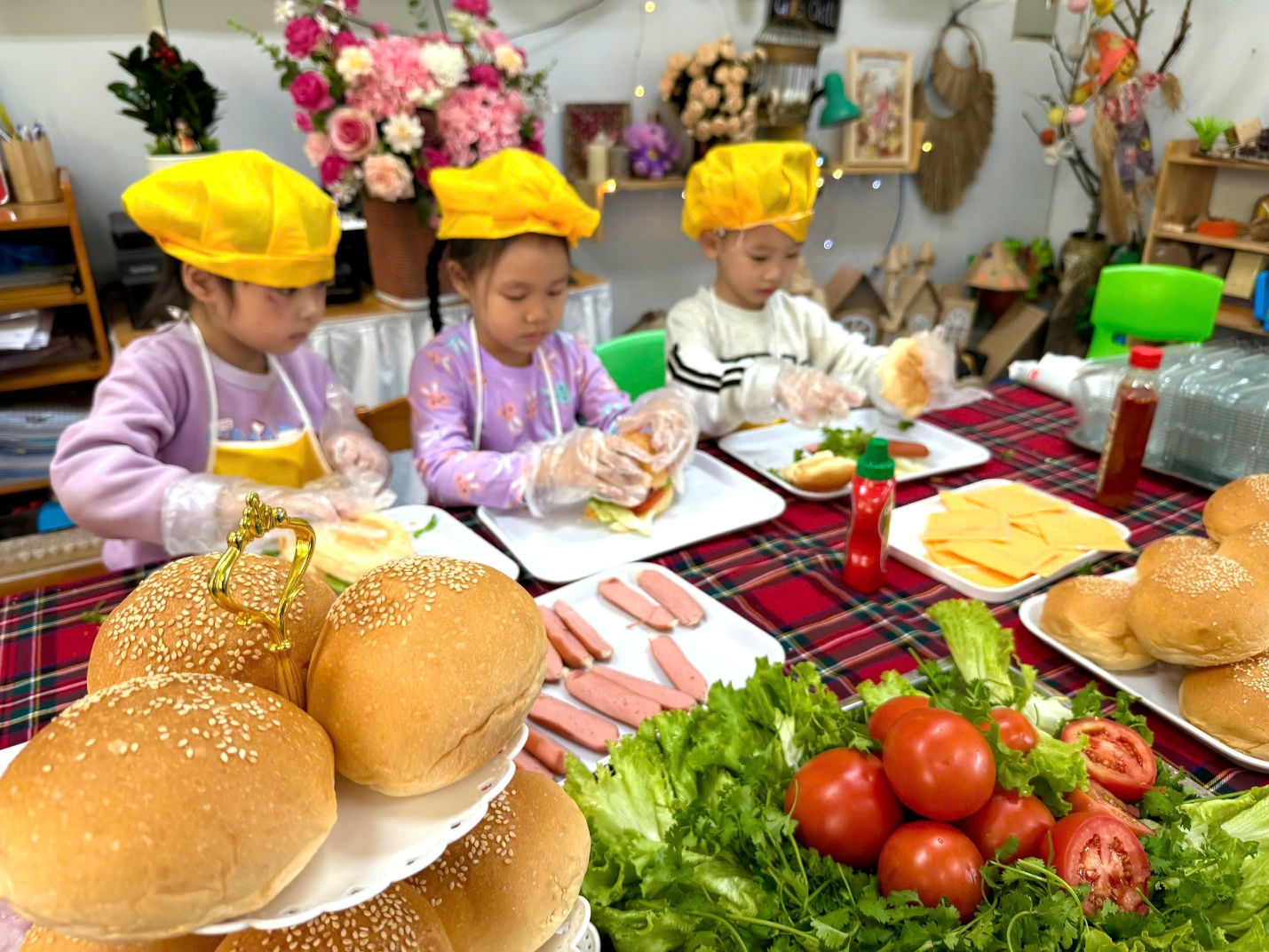Hôm nay, không gian lớp A3 bỗng trở nên nhộn nhịp và đầy hứng khởi khi các bạn nhỏ bắt đầu hoạt động trải nghiệm “Tự tay làm bánh hamburger”. Với đôi bàn tay nhỏ xinh nhưng đầy sự tập trung và háo hức, các con đã trải qua một hành trình thú vị từ việc chuẩn bị nguyên liệu đến hoàn thiện chiếc bánh của riêng mình. Hoạt động không chỉ giúp trẻ rèn sự khéo léo, kỹ năng tự phục vụ mà còn nuôi dưỡng tinh thần trách nhiệm, khả năng phối hợp nhóm và thói quen giữ gìn vệ sinh trong khi làm việc. Mỗi bước, mỗi thao tác đều là một trải nghiệm mới, giúp trẻ hiểu rằng để tạo nên một sản phẩm ngon mắt, ngon miệng cần rất nhiều sự cẩn thận và tỉ mỉ.