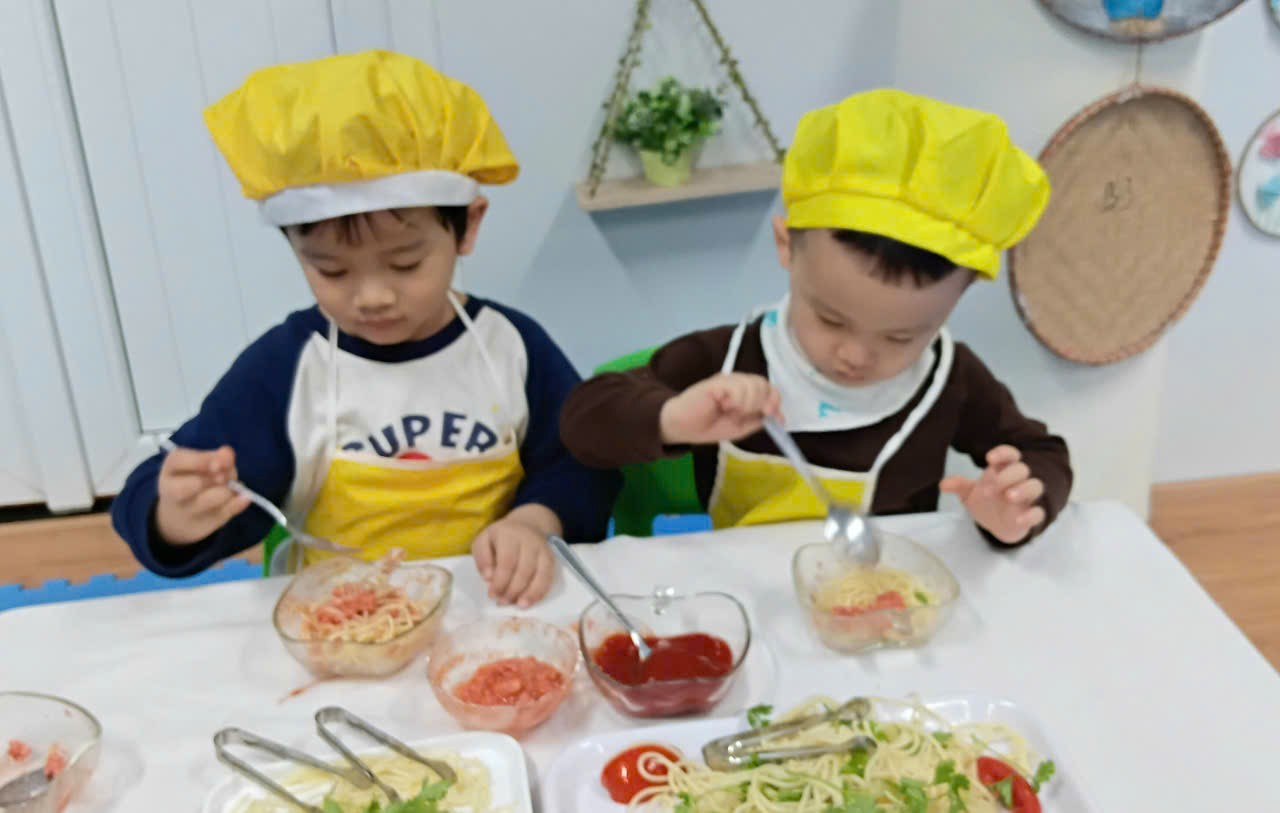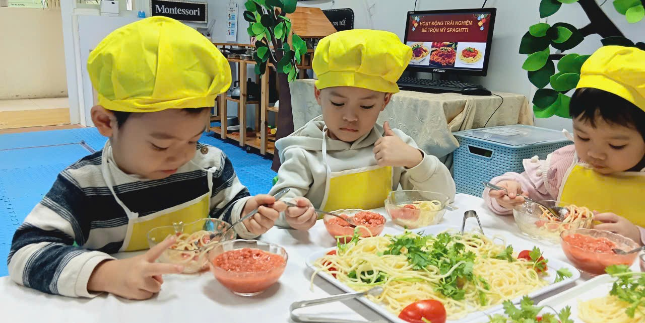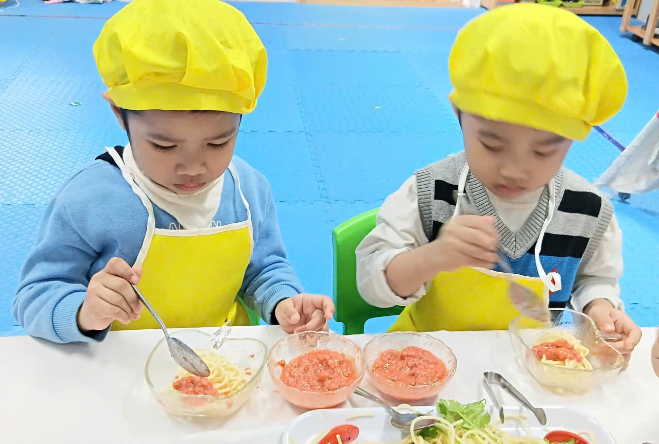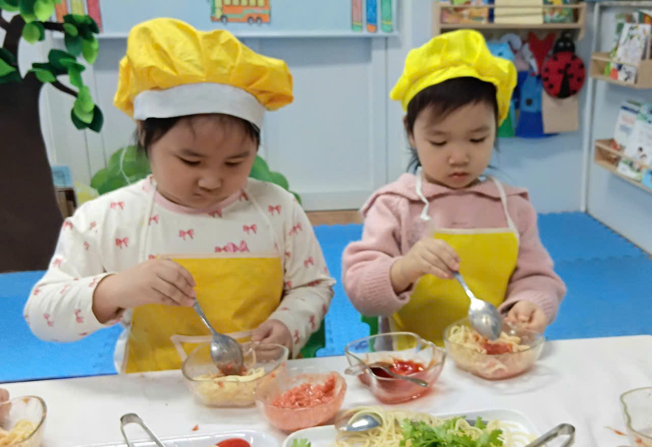 Các bé lớp C1 đã có một buổi trải nghiệm thật vui và bổ ích với hoạt động Bé trộn mì spaghetti.