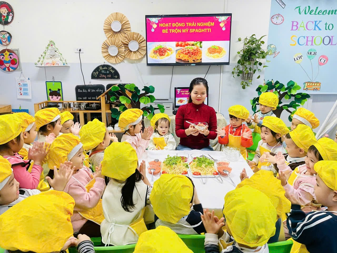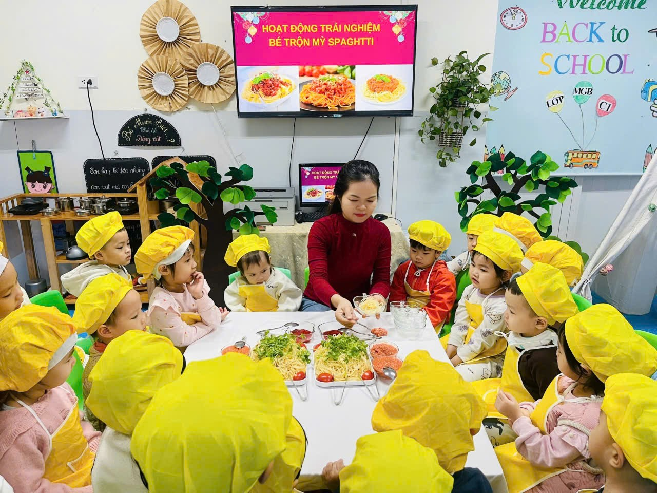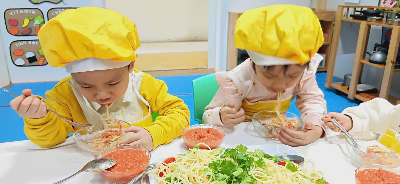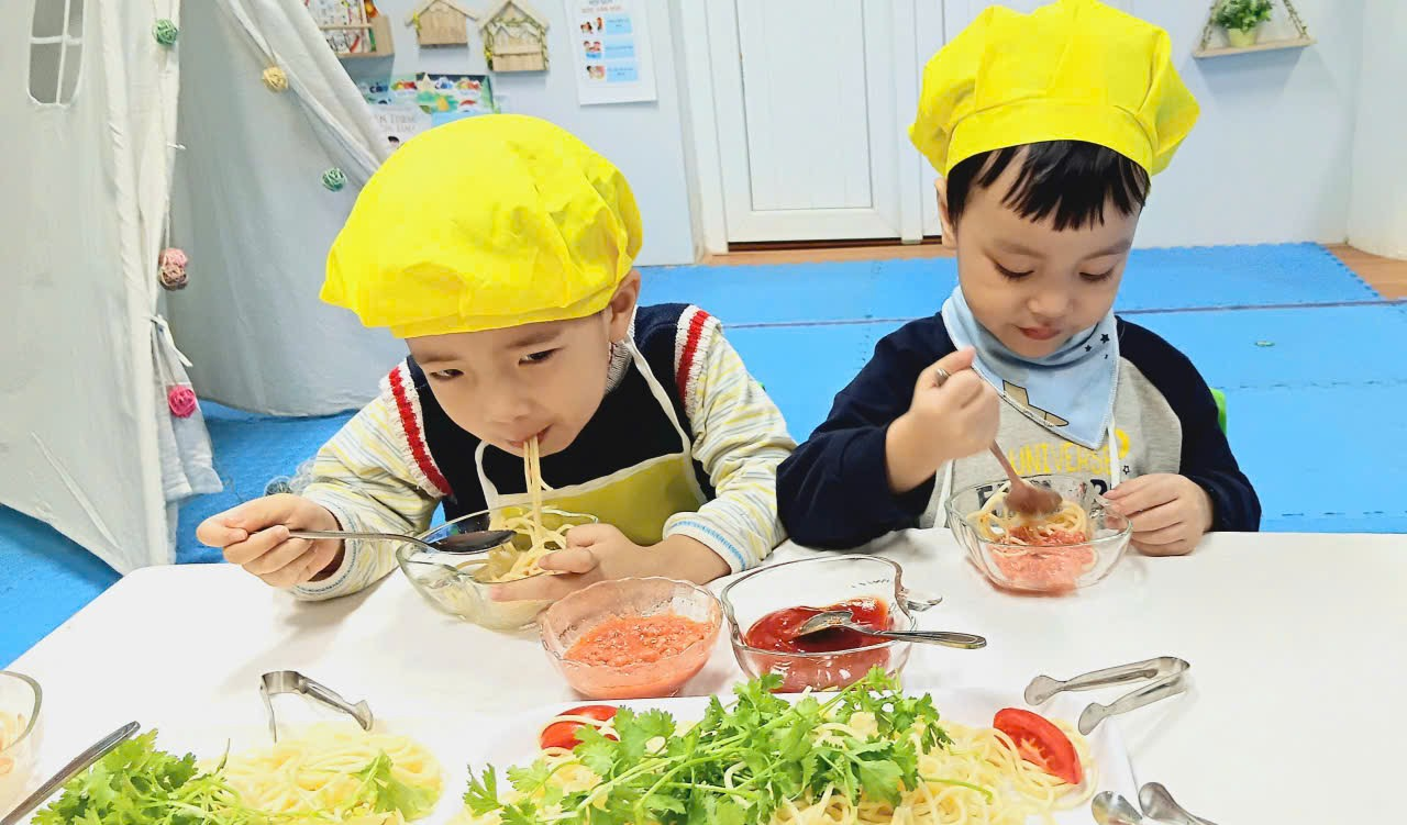 Các bé lớp C1 đã có một buổi trải nghiệm thật vui và bổ ích với hoạt động Bé trộn mì spaghetti.