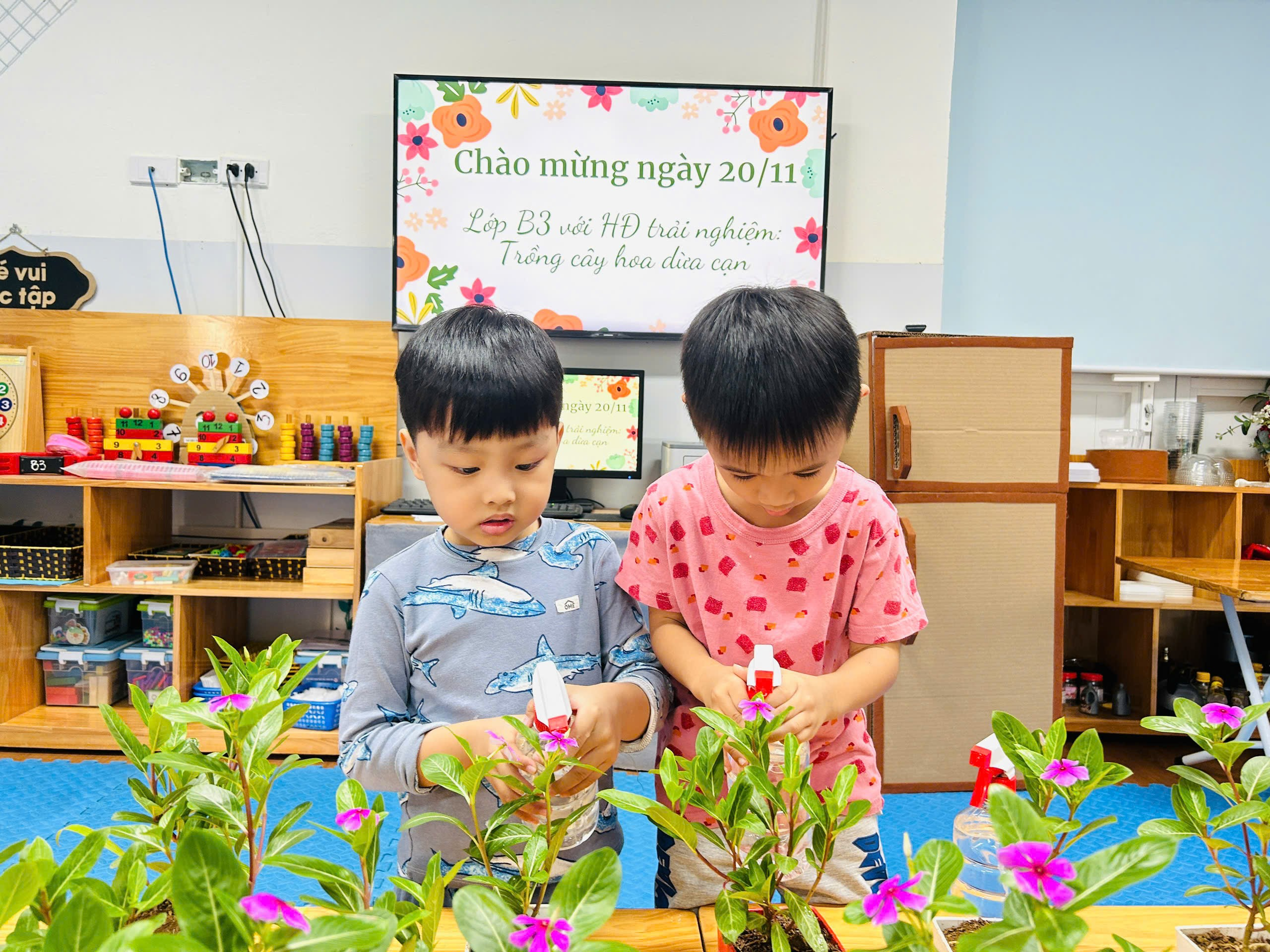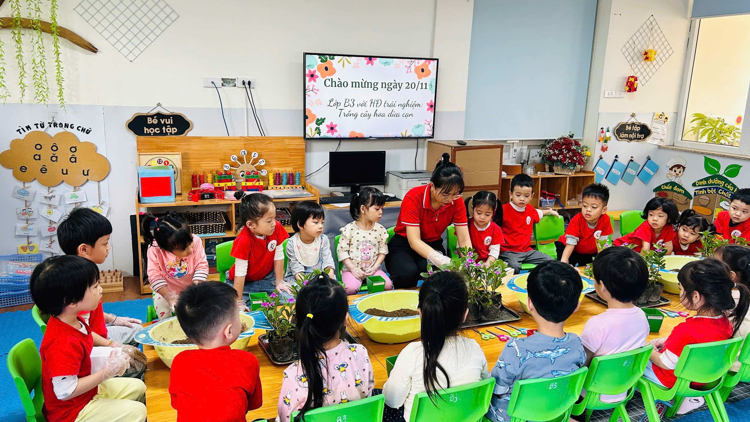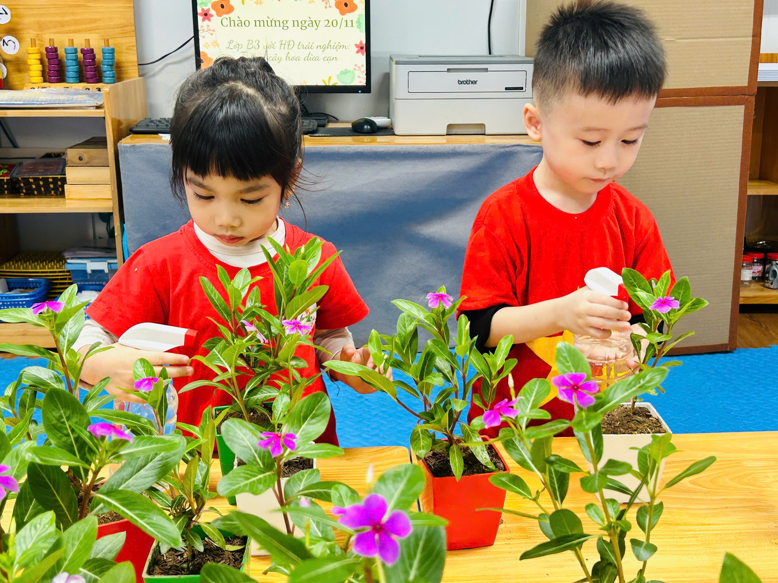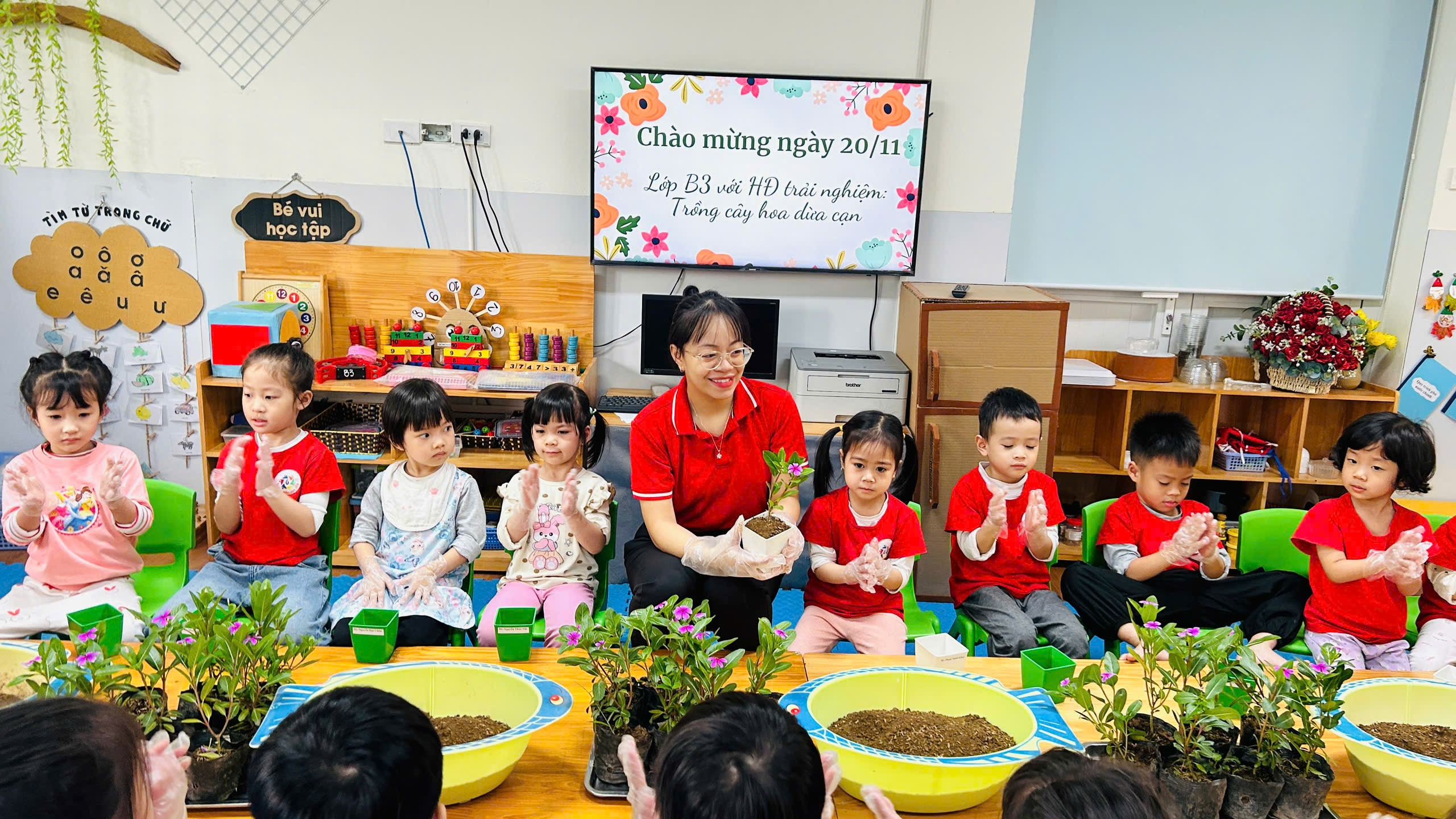 Hòa trong không khí rộn ràng hướng tới Ngày Nhà giáo Việt Nam 20/11, tập thể lớp B3 đã tổ chức hoạt động trải nghiệm vô cùng ý nghĩa: “Trồng cây hoa dừa cạn”. Đây không chỉ là món quà nhỏ nhưng đầy yêu thương mà các bé muốn gửi tặng cô giáo, mà còn là cơ hội để trẻ được tìm hiểu, khám phá và rèn luyện nhiều kỹ năng thú vị.