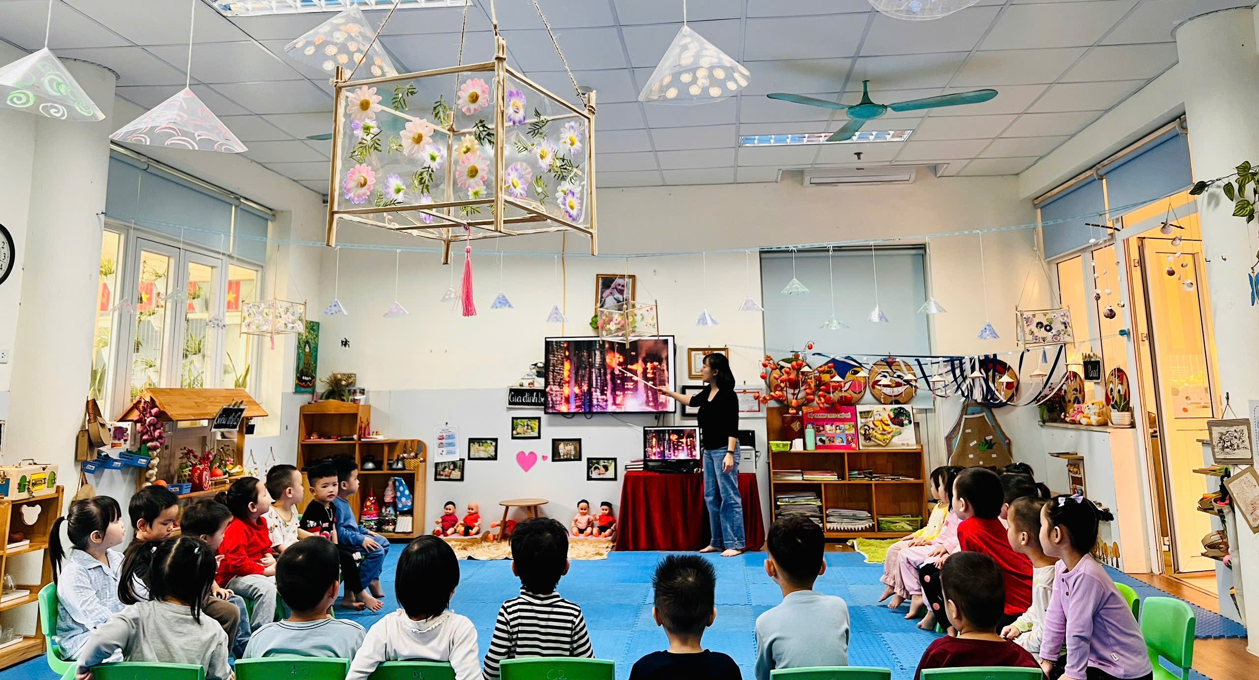 Cô trò chuyện cùng trẻ về những nguyên nhân có thể gây cháy như bật lửa, dây điện hỏng, bếp gas… Trẻ được xem hình ảnh hoặc mô phỏng khói và lửa để hiểu rằng khói rất nguy hiểm và có thể làm chúng ta ngạt thở, vì vậy cần bình tĩnh tìm cách thoát ra ngoài.