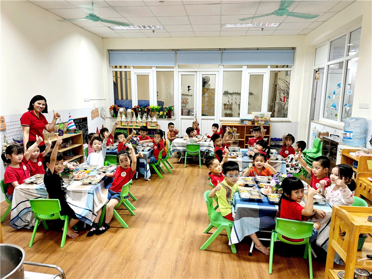 Mỗi hình thức tổ chức ăn cho trẻ không chỉ đem lại cho trẻ sự trải nghiệm lý thú cho trẻ. Nhìn các con hào hứng các cô cũng cảm thấy vui vẻ, hạnh phúc trong công việc.