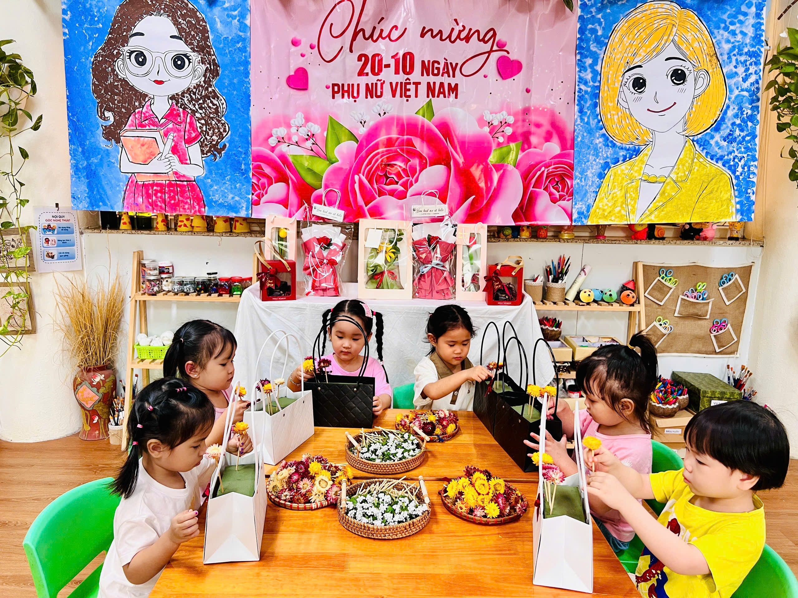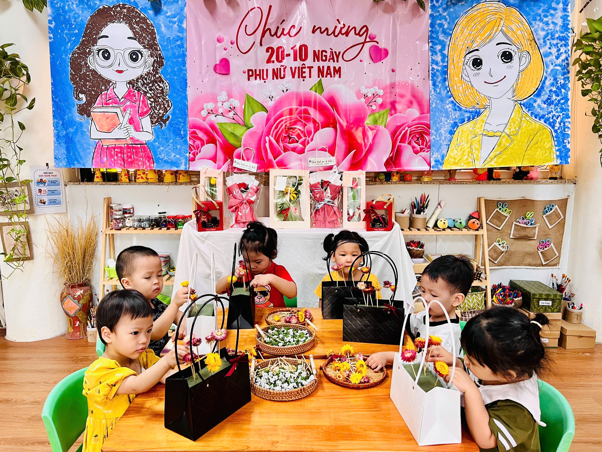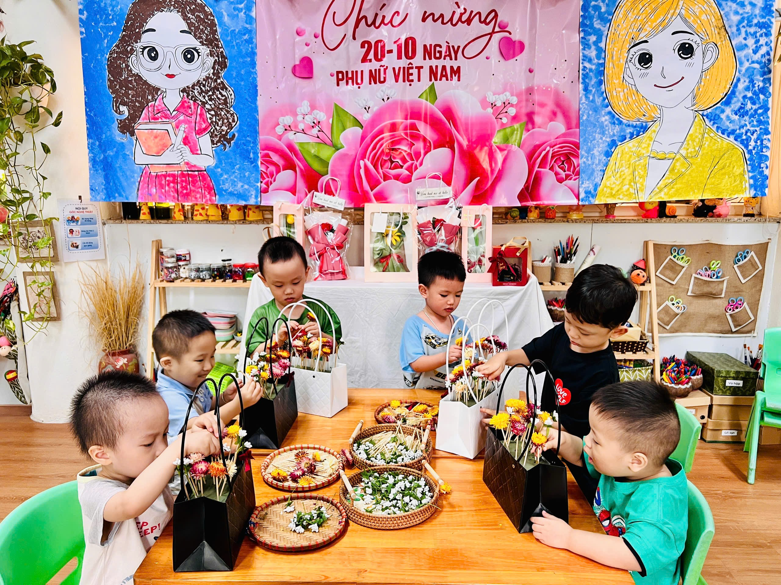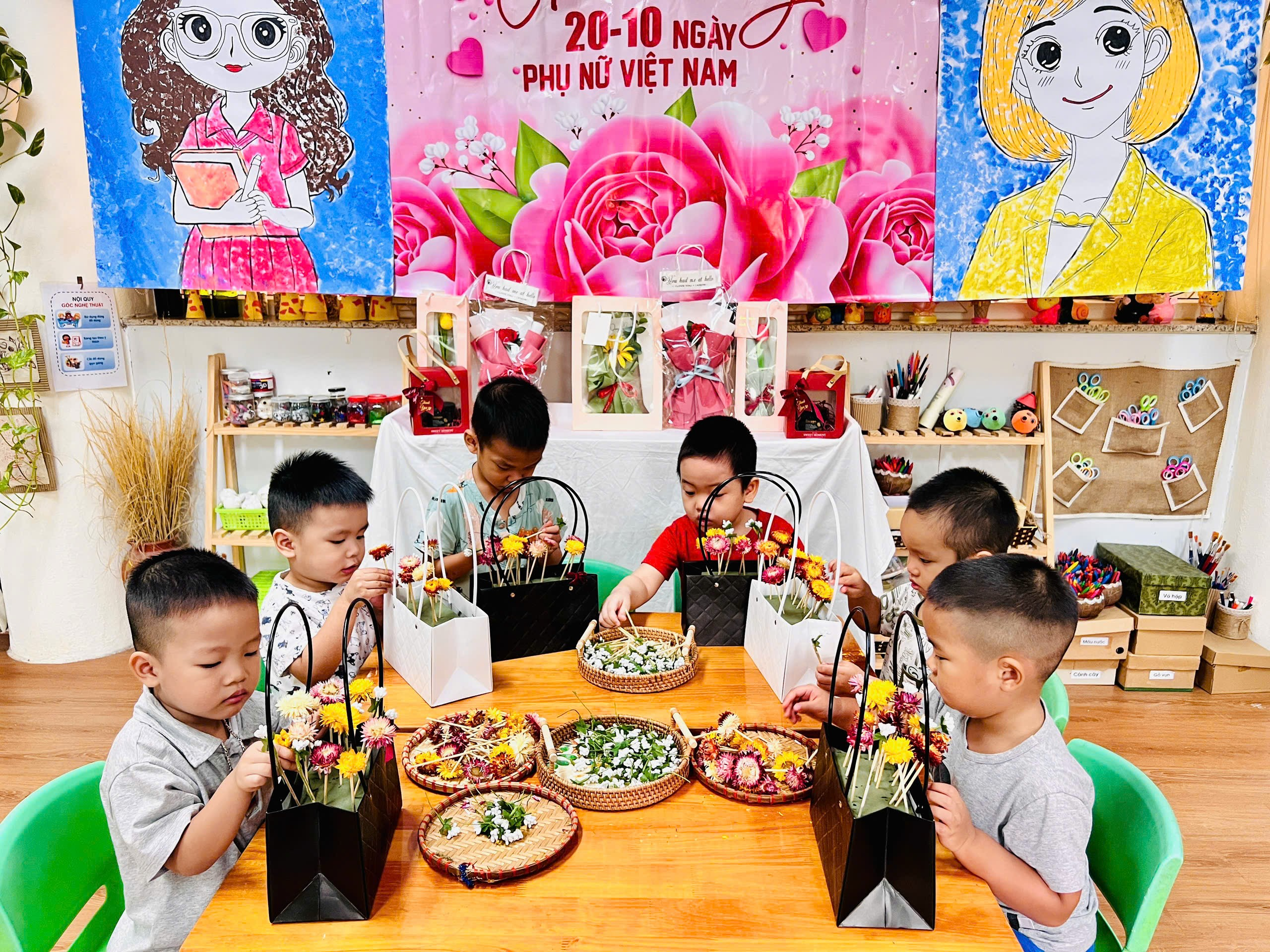 Nhân dịp Ngày Phụ nữ Việt Nam 20/10, các bạn nhỏ lớp Mẫu giáo bé C2 đã cùng nhau tham gia hoạt động cắm giỏ hoa tặng bà và mẹ yêu.